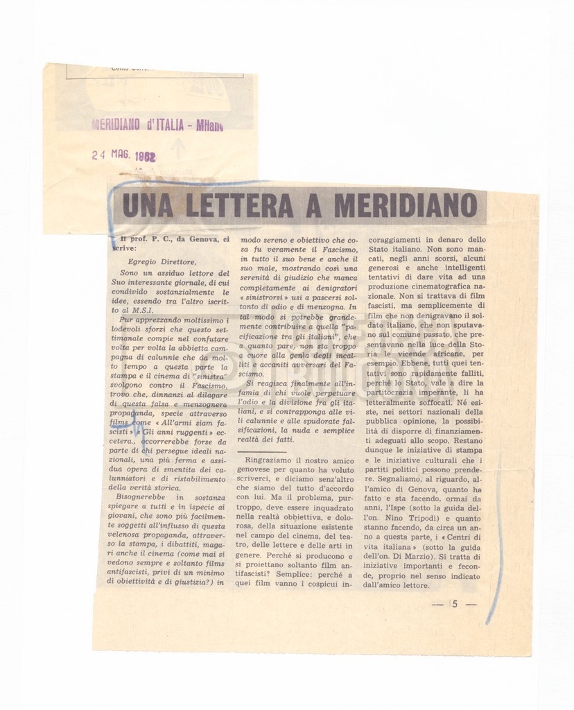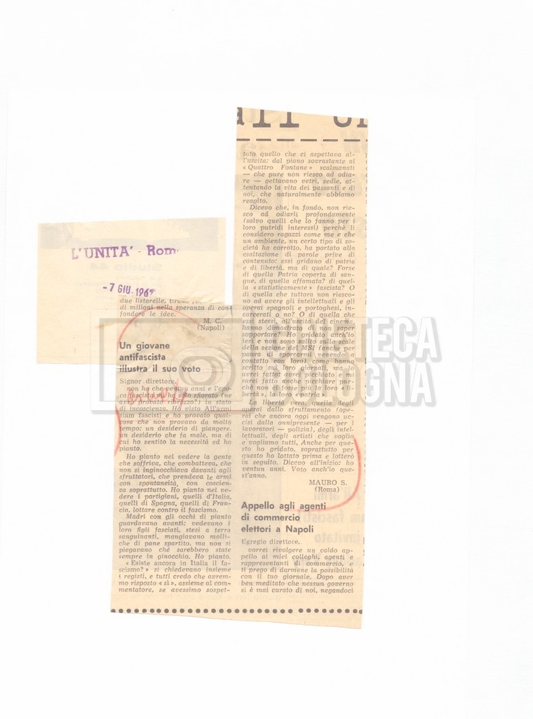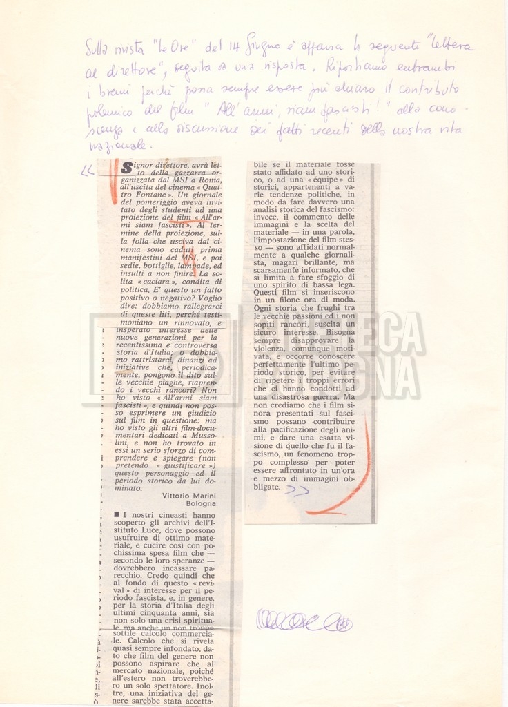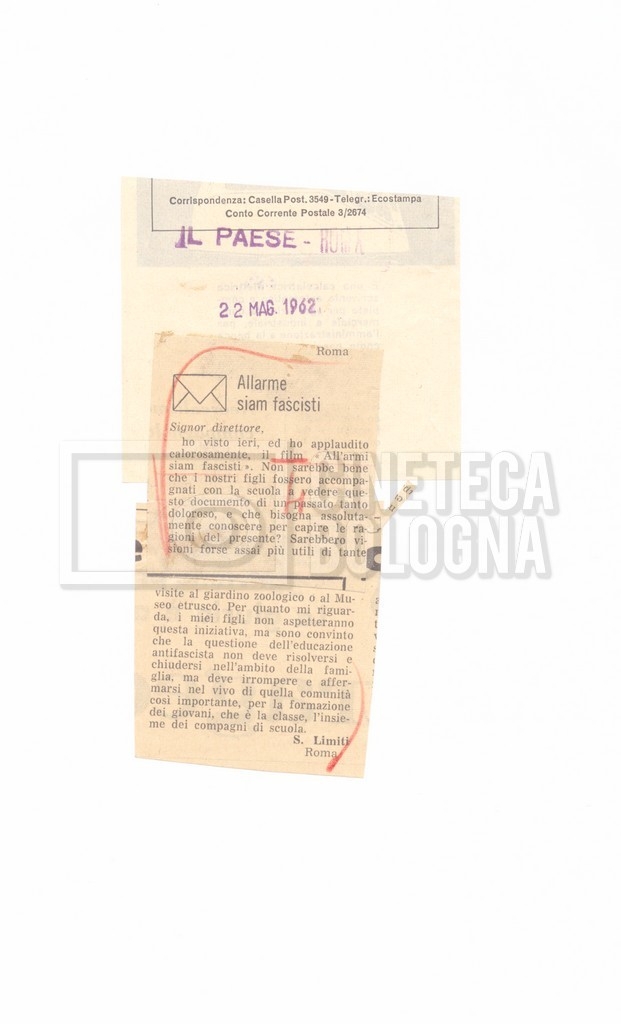 Contiene rassegna stampa a proposito delle lettere inviate ai direttori giornali.