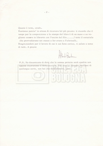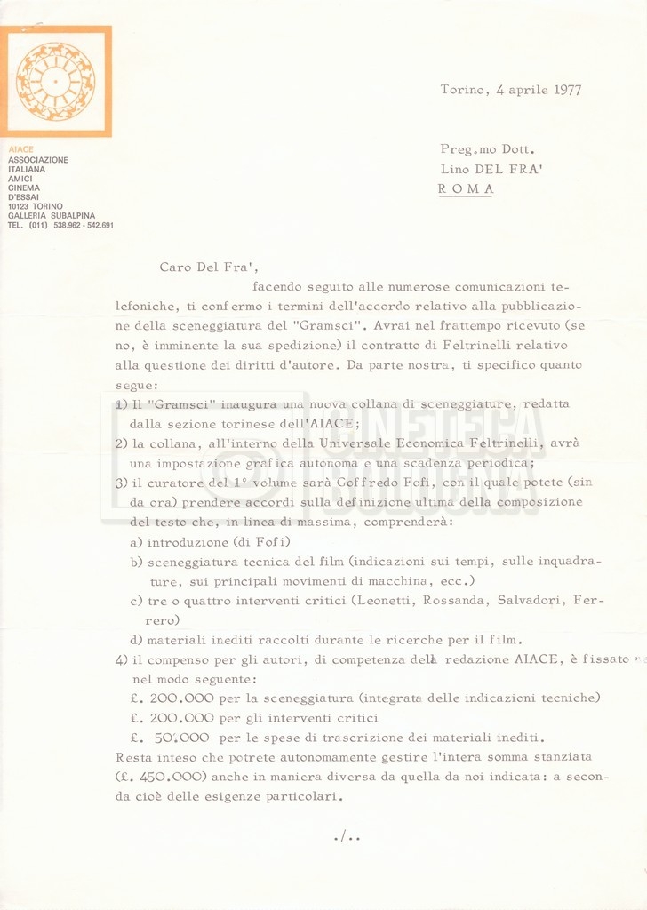 – Una lettera datt. di Alberto Barbaro sui termini dell’accordo relativo alla pubblicazione della sceneggiatura;