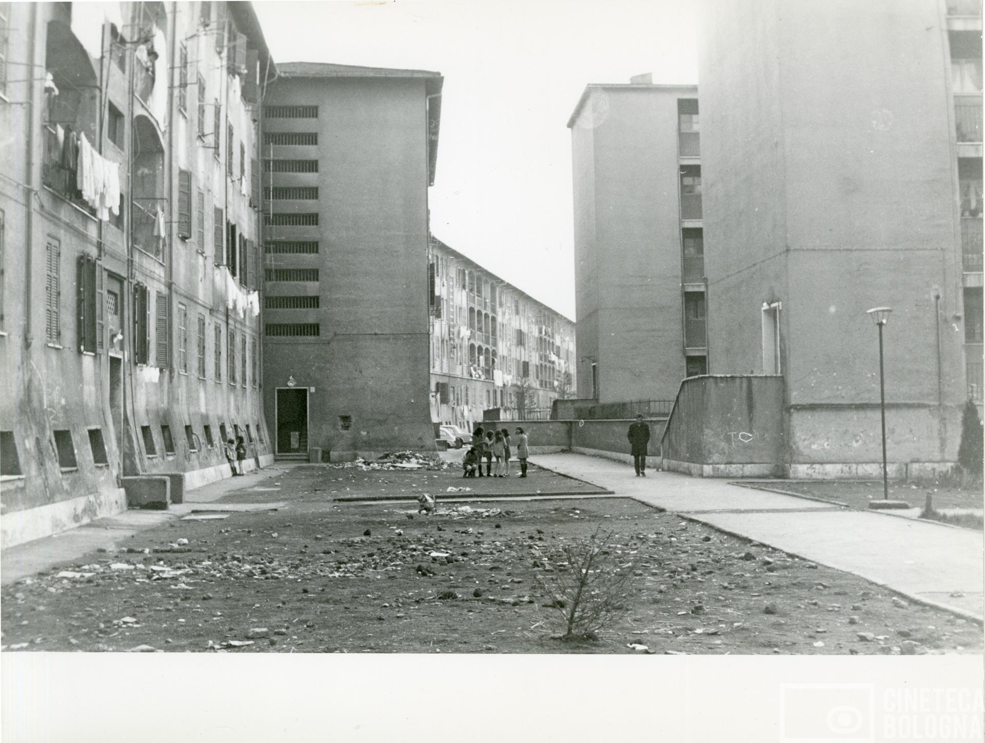 Lino Del Fra. La torta in cielo. 1969. Sopralluoghi. Cortile del Quarticciolo
