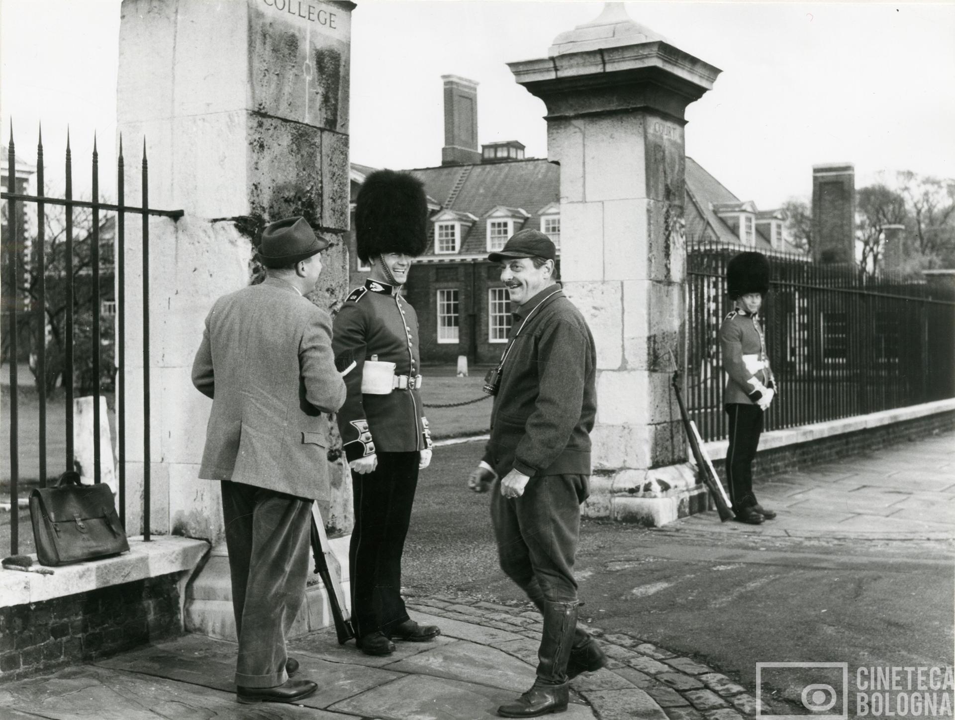 Londra. Alessandro Blasetti e un uomo non identificato alla Torre di Londra durante le riprese di Io amo, tu ami…
