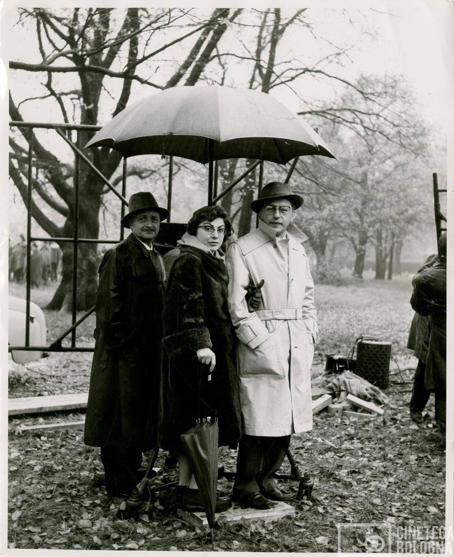 Londra. Biagio Fiorelli, Mara Blasetti e Luigi De Laurentiis durante le riprese del film Io amo, tu ami…