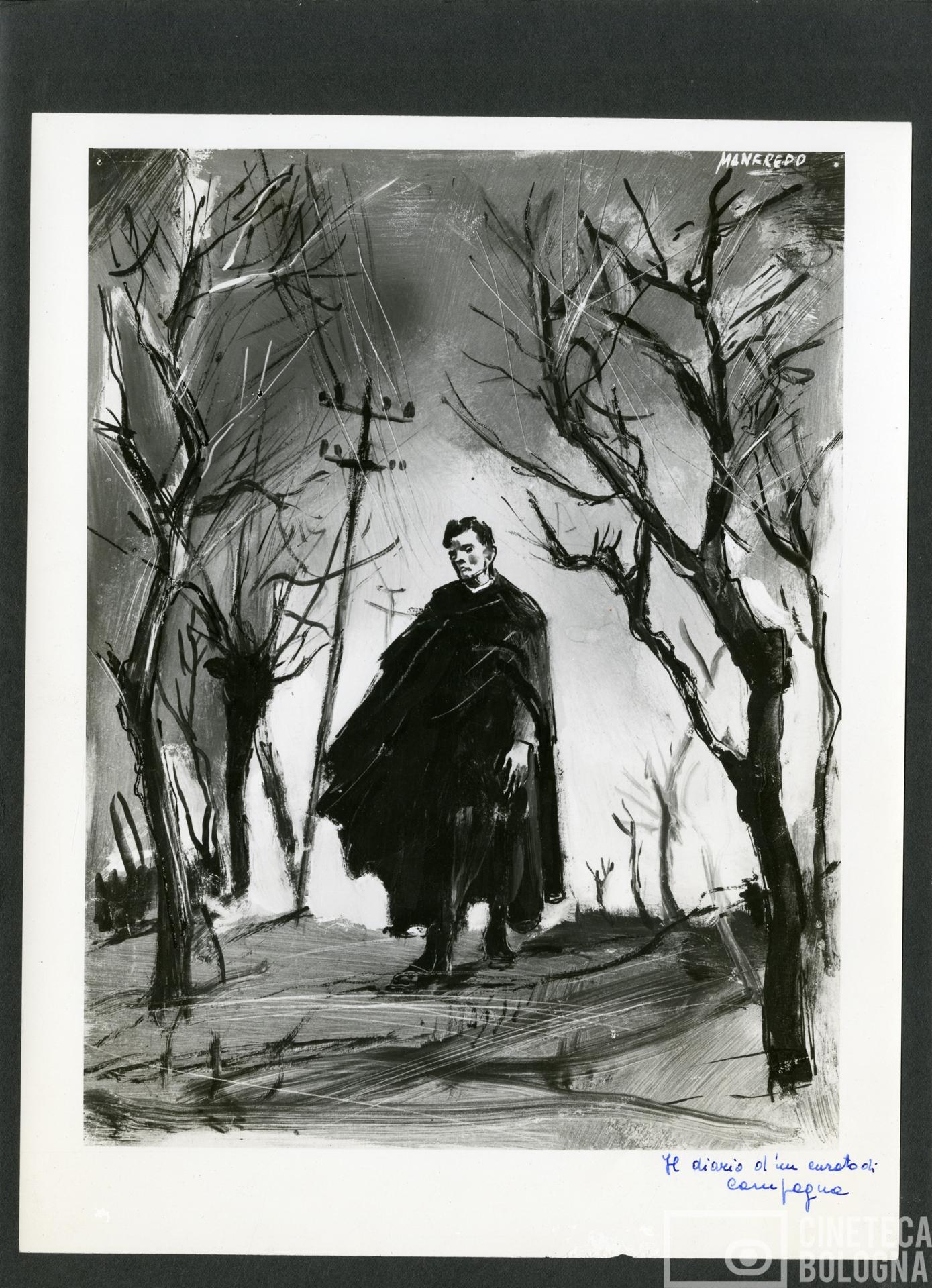 Manfredo. Bozzetto del manifesto del film Il diario di un curato di campagna di Robert Bresson. 1951