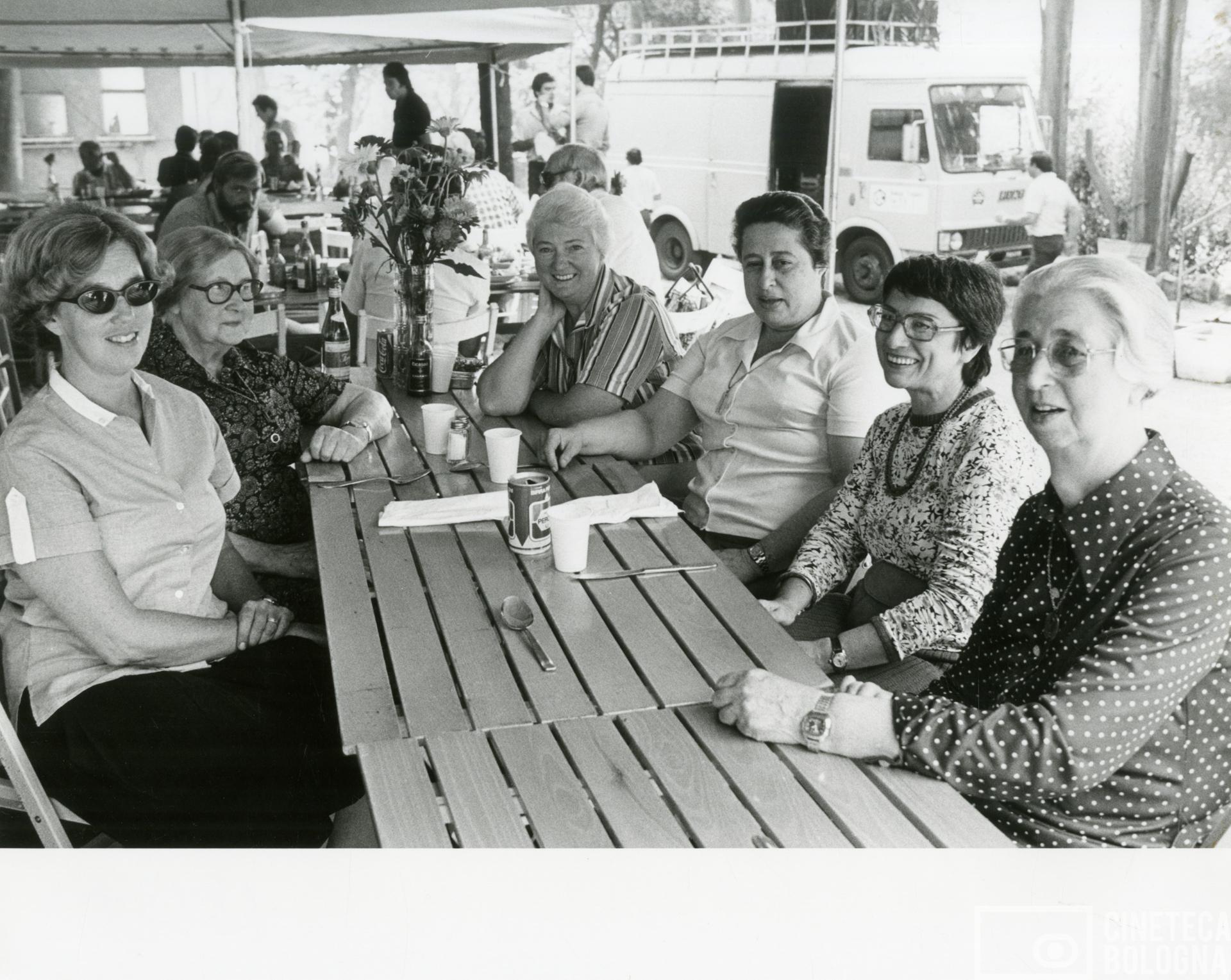 Mara Blasetti con donne non identificate durante le riprese del film The Lion of the Desert