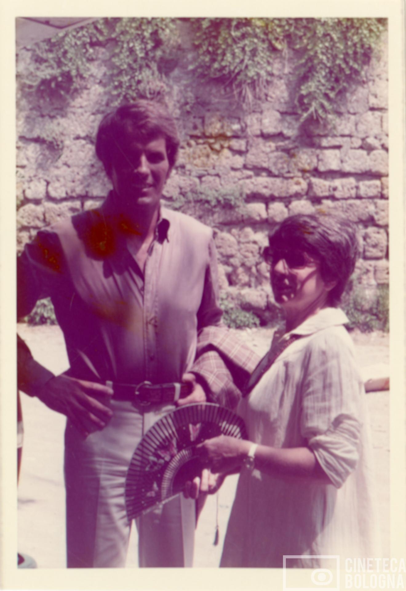DOCUMENTO FOTOGRAFICO 1972. Mara Blasetti e un uomo non identificato durante una pausa delle riprese del film Che? di Roman Polanski