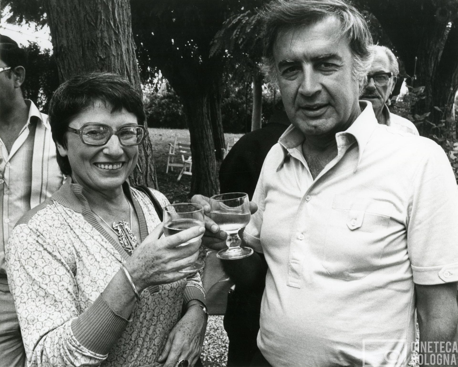DOCUMENTO FOTOGRAFICO 1972. Mara Blasetti e un uomo non identificato durante una pausa delle riprese del film Che? di Roman Polanski