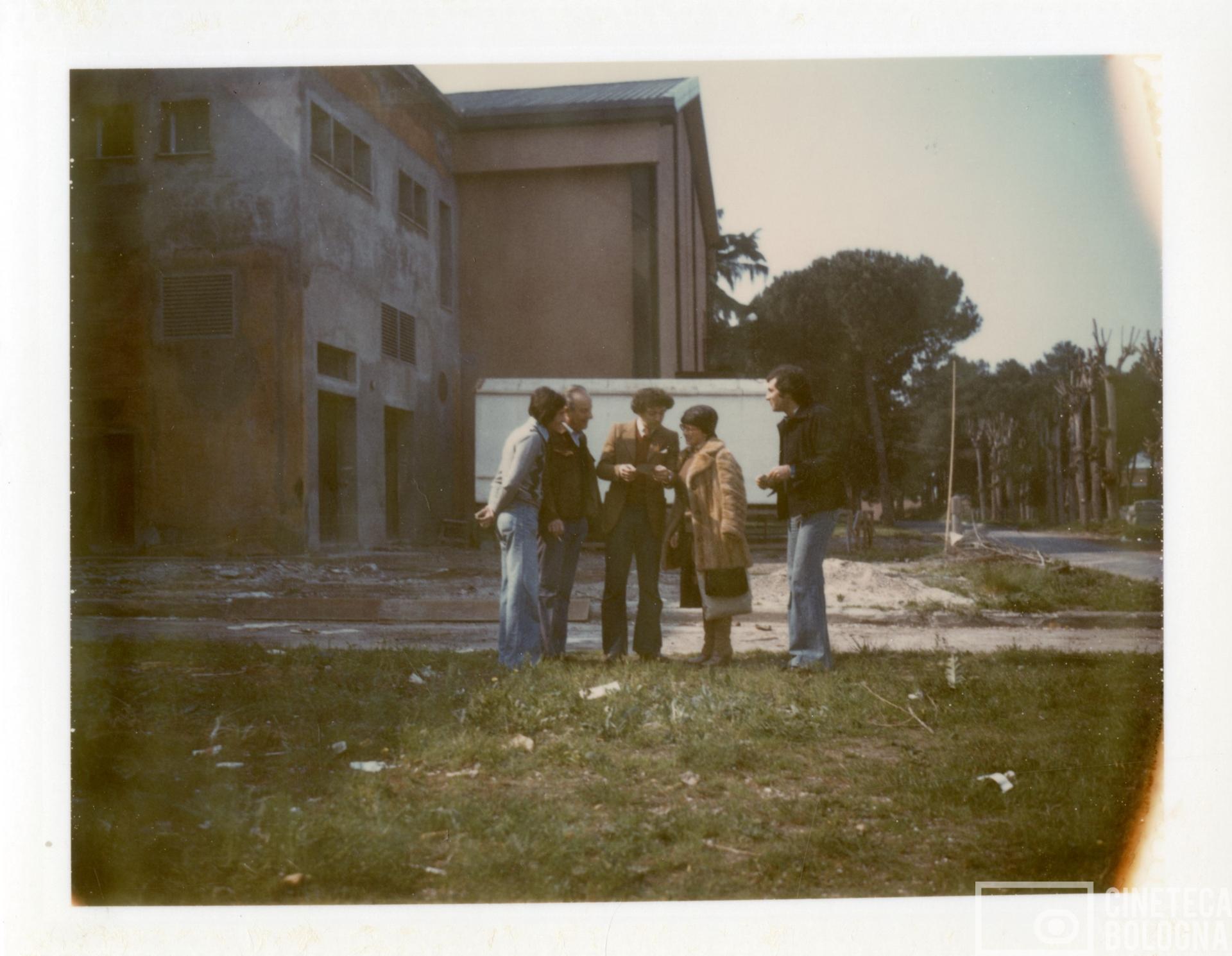 Mara Blasetti con persone non identificate durante le riprese del film Cassandra Crossing