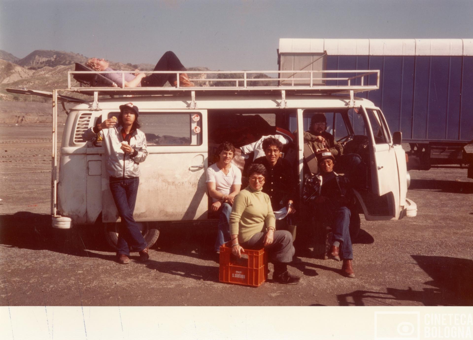 DOCUMENTO FOTOGRAFICO Amalfi. Marcello Mastroianni con la troupe durante una pausa delle riprese del film Che? di Roman Polanski