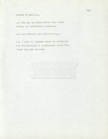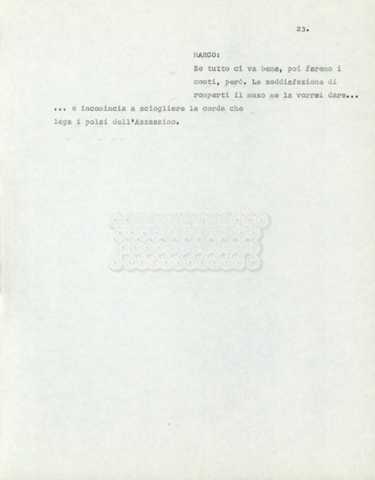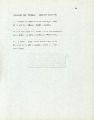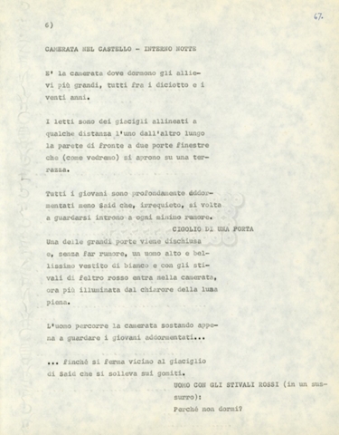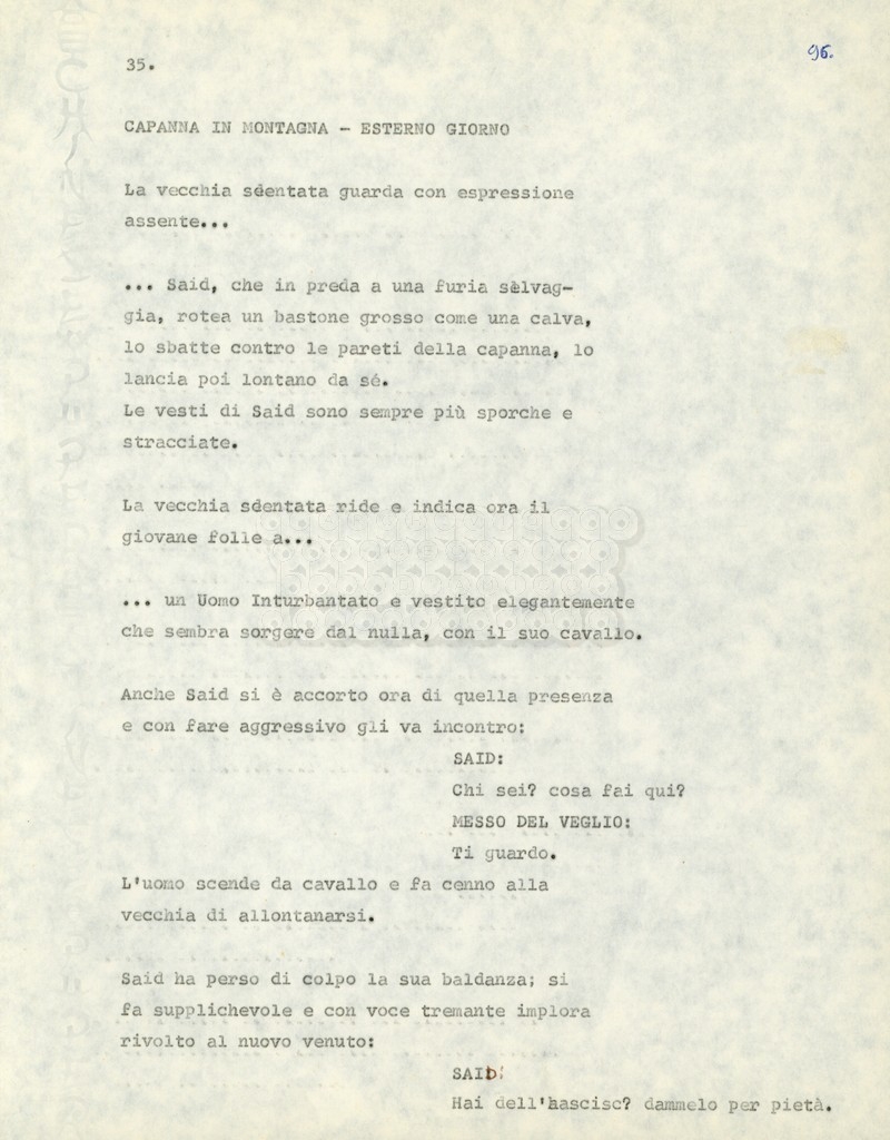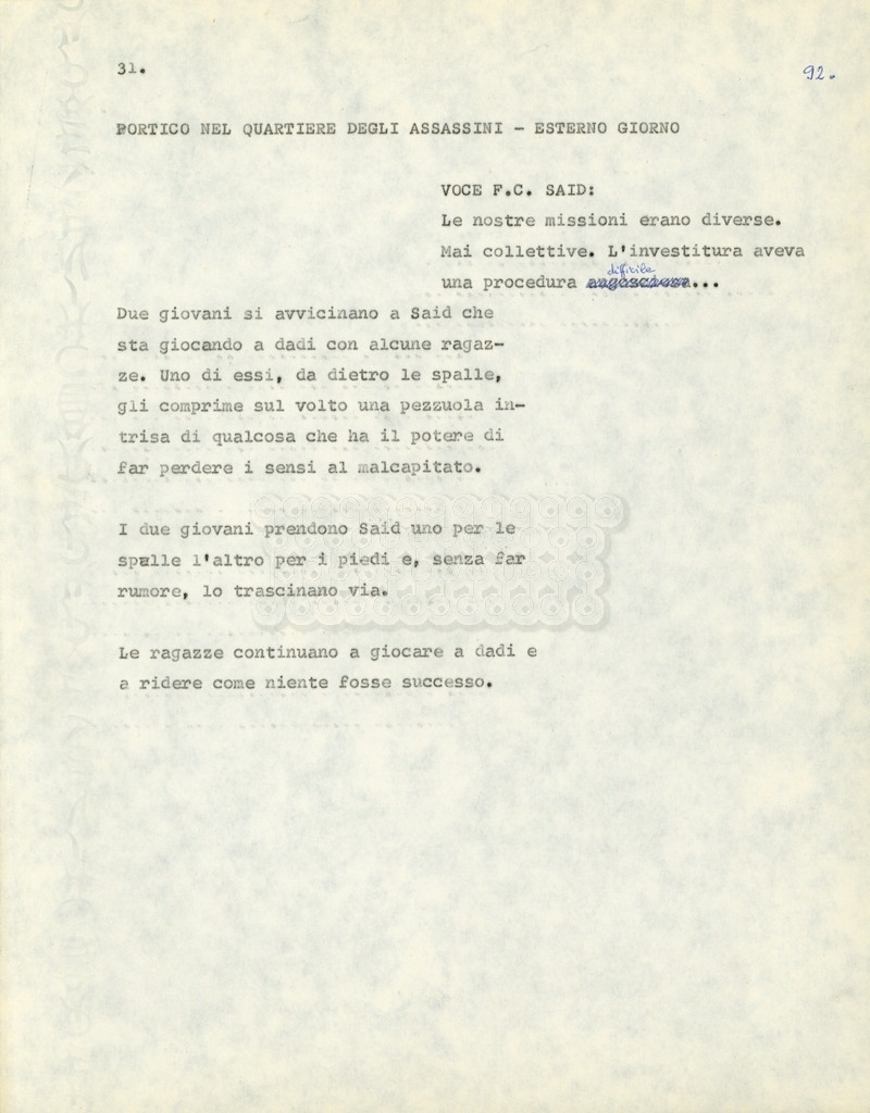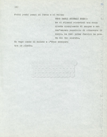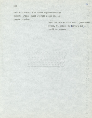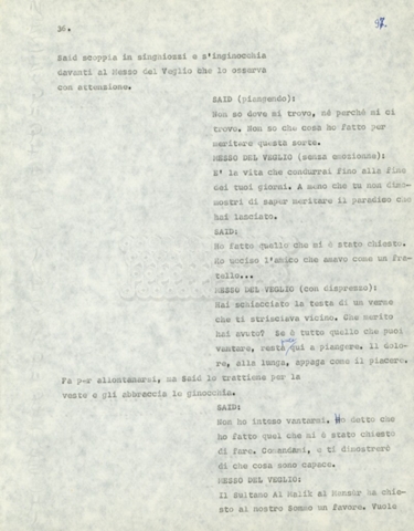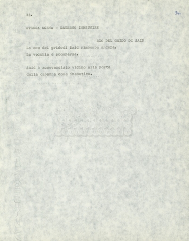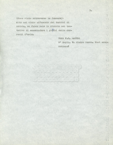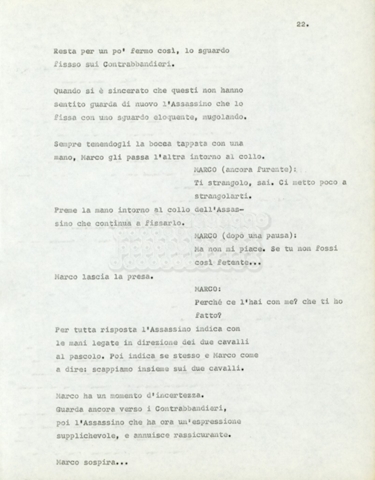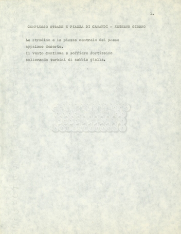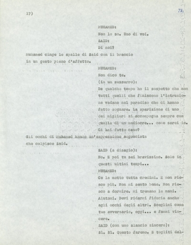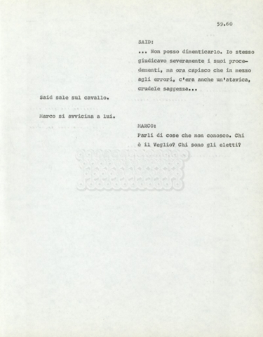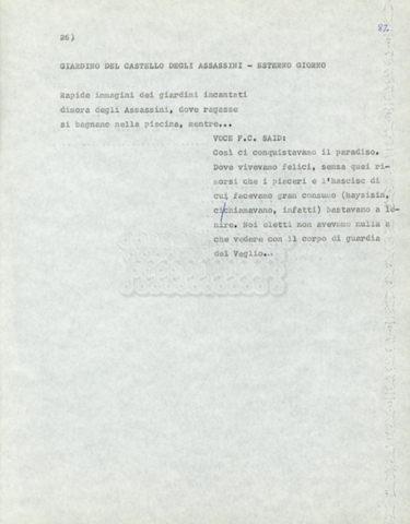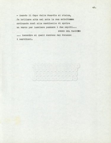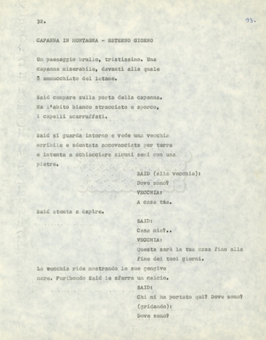 Torna alla banca dati Marco Polo – episodio 4 Documento storico Archivio Suso Cecchi d’Amico / Film e serie televisive non realizzate / Marco Polo Ambiti e contenuto Trattasi di una sceneggiatura di Suso Cecchi d’Amico. Informazioni archivistiche Cronologia: [1977 – 1978] Numero di ordinamento definitivo: 170 Numero di ordinamento provvisorio: 2.136 Descrizione fisica: volume pp. 102 Immagini digitalizzate Documenti correlati Vai alla banca dati DOCUMENTO STORICO “Marco Polo” DOCUMENTO STORICO “Episodio primo Marco Polo (prima versione)” DOCUMENTO STORICO Marco Polo – episodio 1 DOCUMENTO STORICO Marco Polo – episodio 3 DOCUMENTO STORICO Marco Polo – episodio 1 e 2