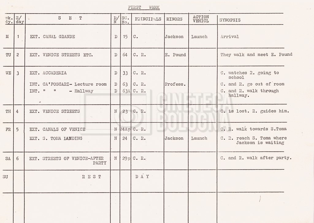 - Elenchi datt. di location per il film e del cast artistico in più copie, di cui una riporta erroneamente l'indicazione del film The Adventurers;