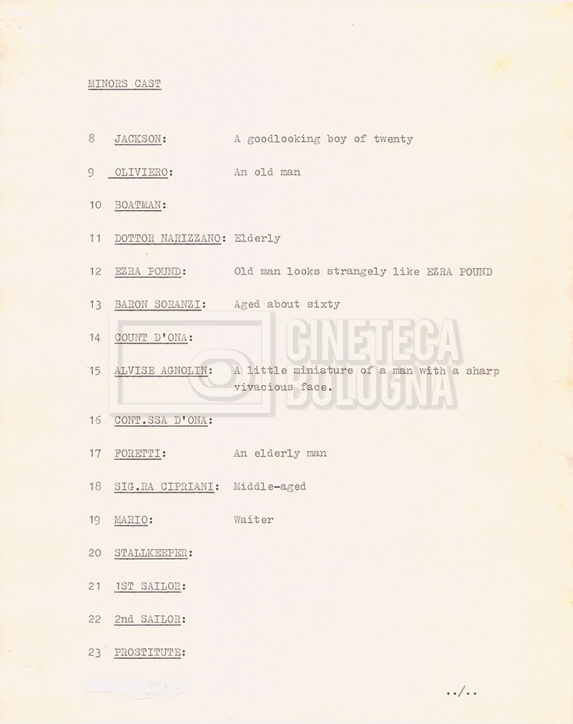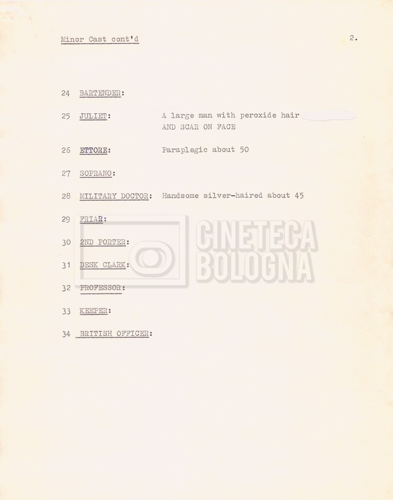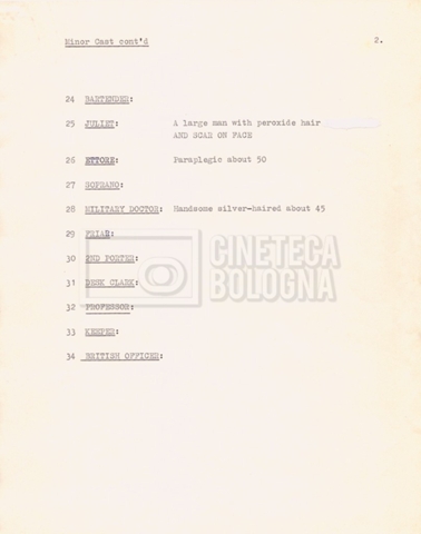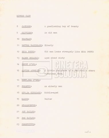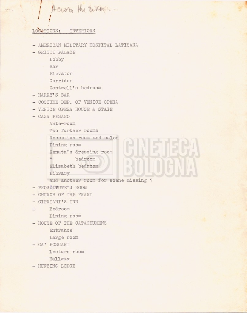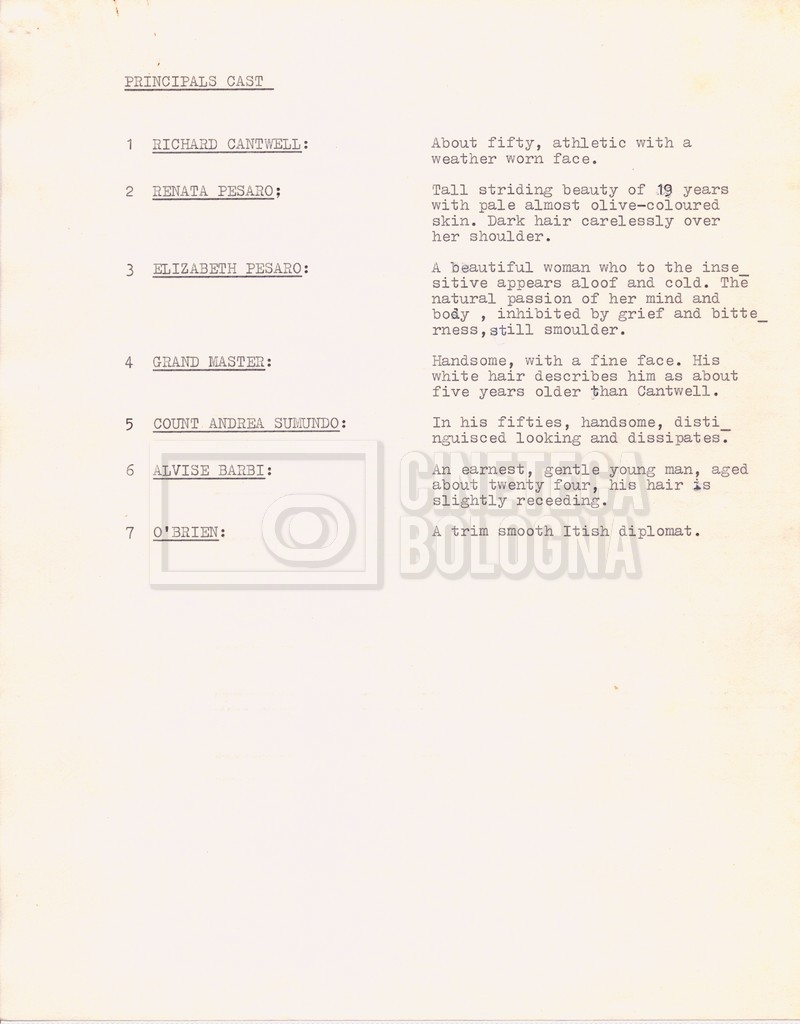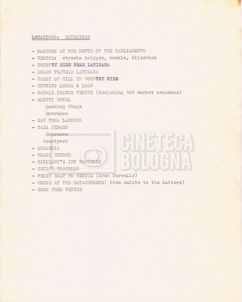 – Elenchi datt. di location per il film e del cast artistico in più copie, di cui una riporta erroneamente l’indicazione del film The Adventurers;