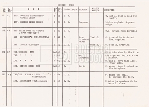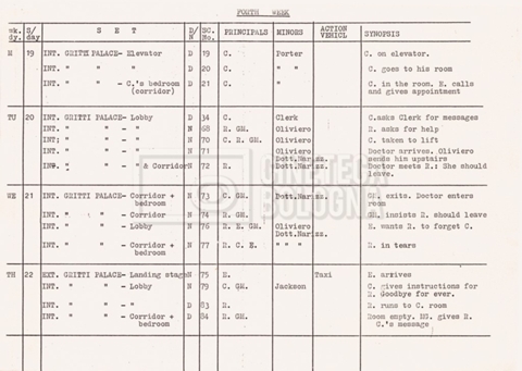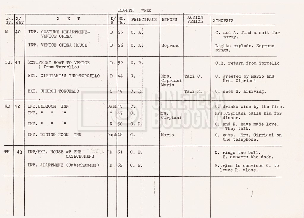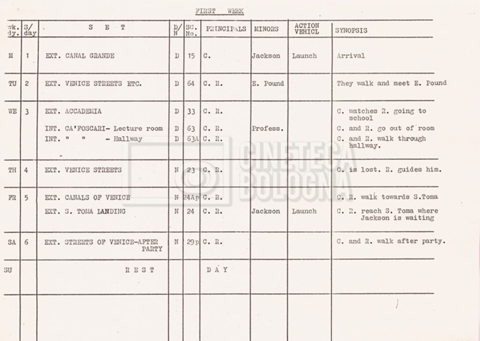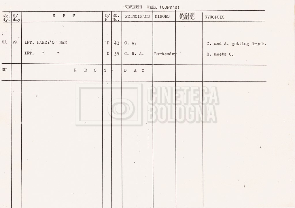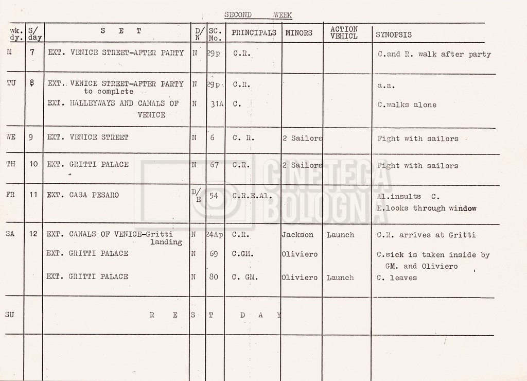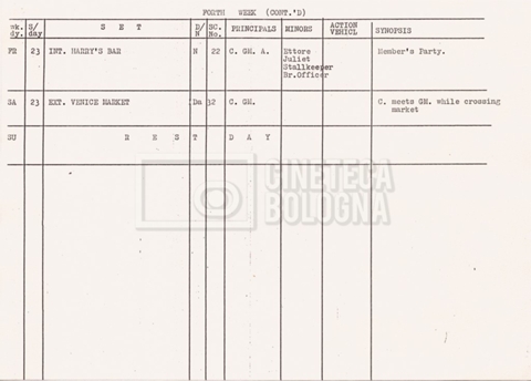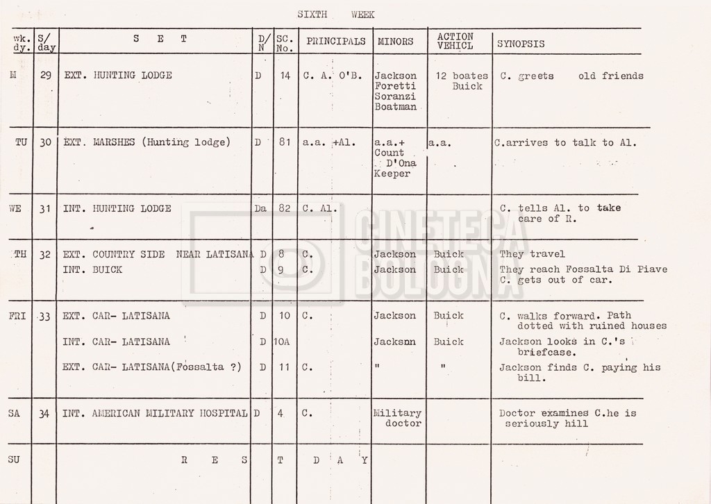 – Elenchi datt. di location per il film e del cast artistico in più copie, di cui una riporta erroneamente l’indicazione del film The Adventurers;