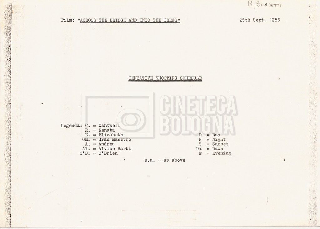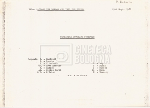 – Due preventivi di massima per la realizzazione del film (24 settembre 1986);