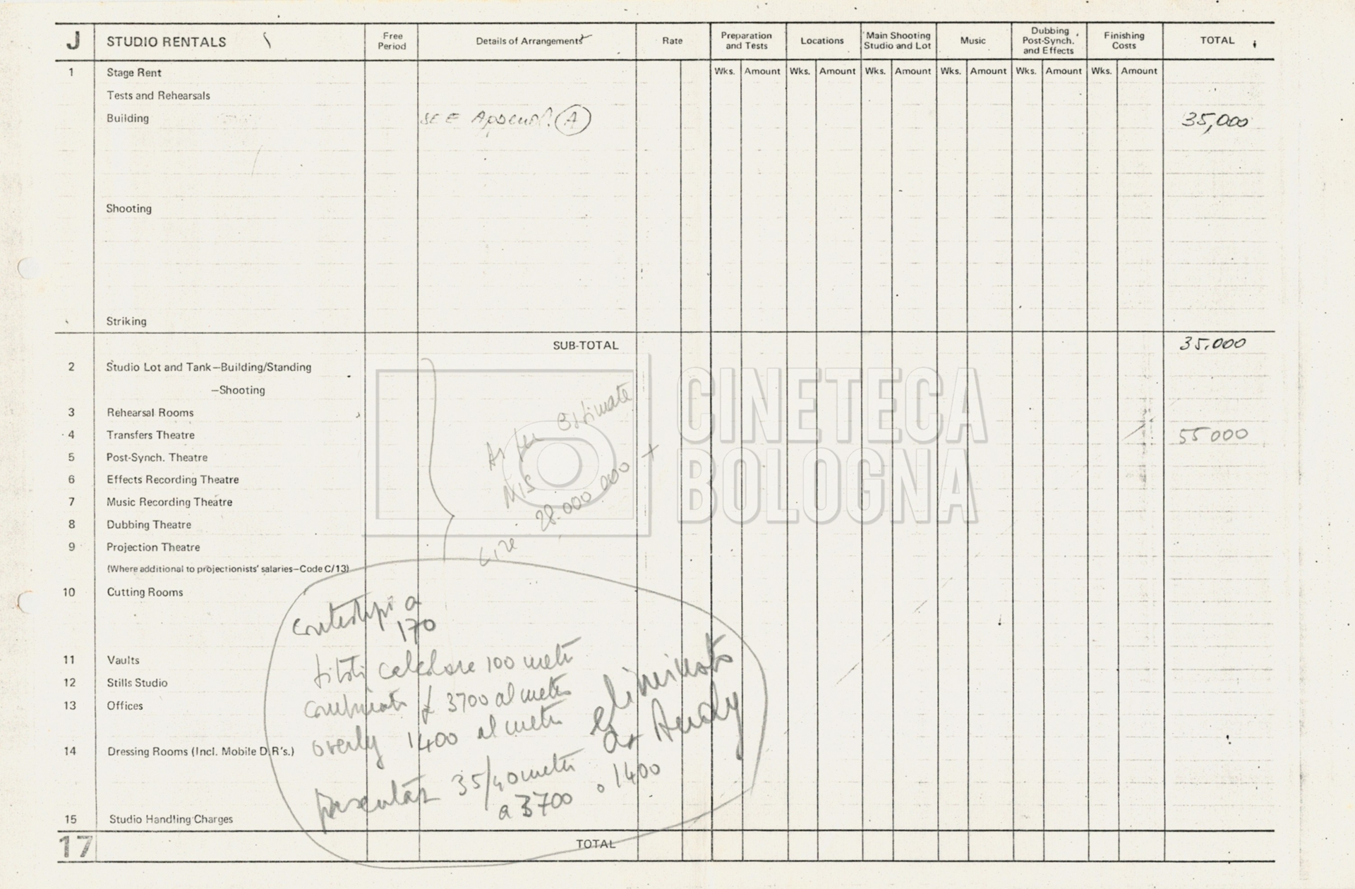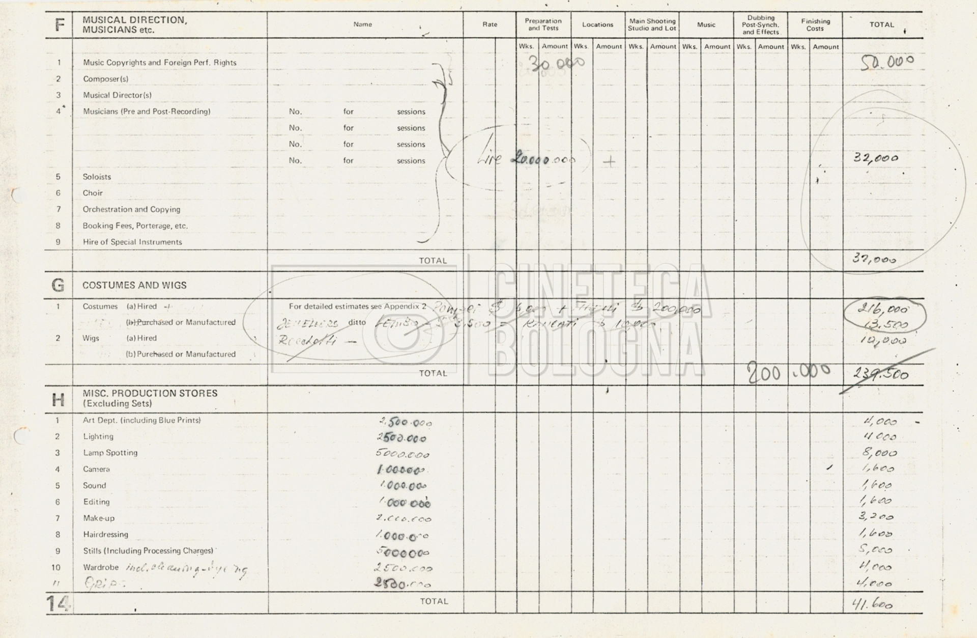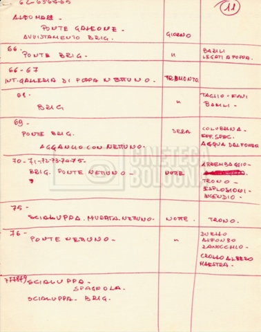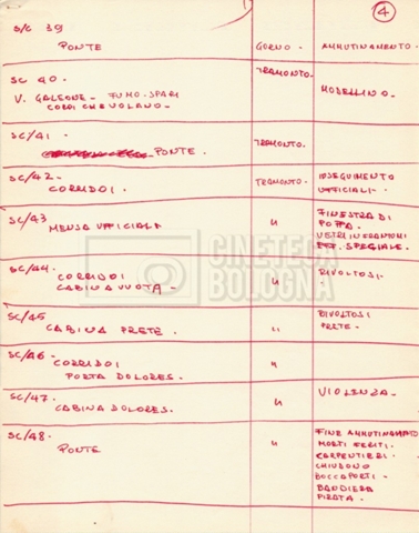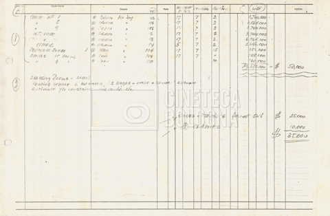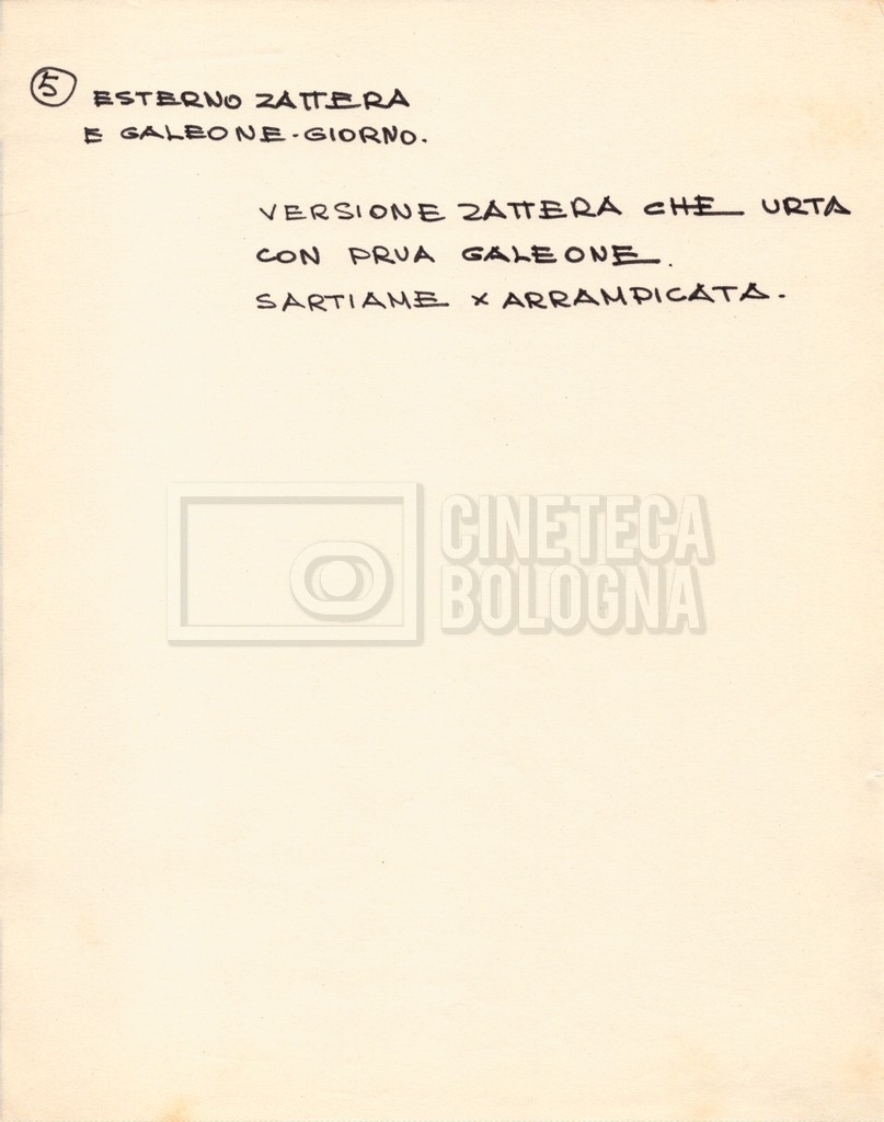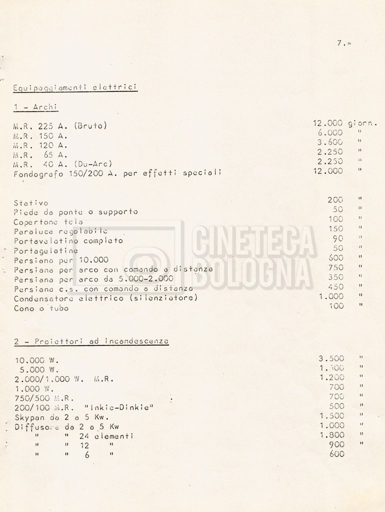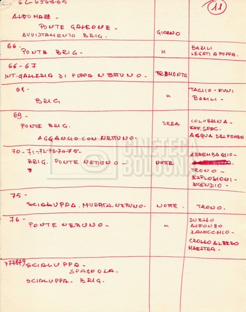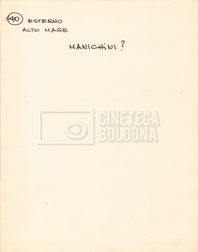– Diverse liste di ambienti interni ed esterni, costumi, oggettistica, armi e dal cast, datt. e mss.;
