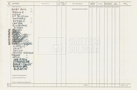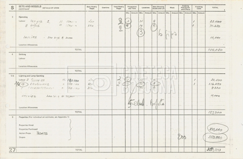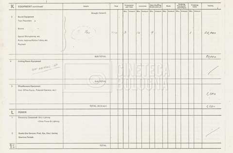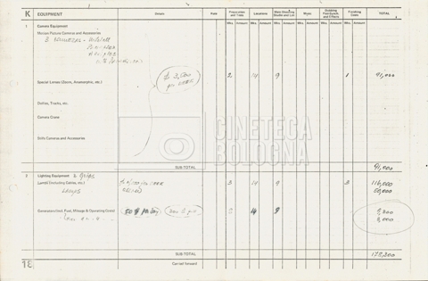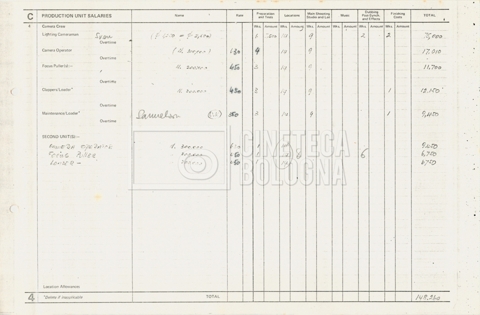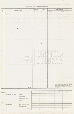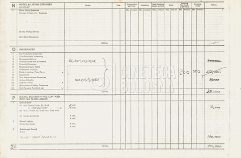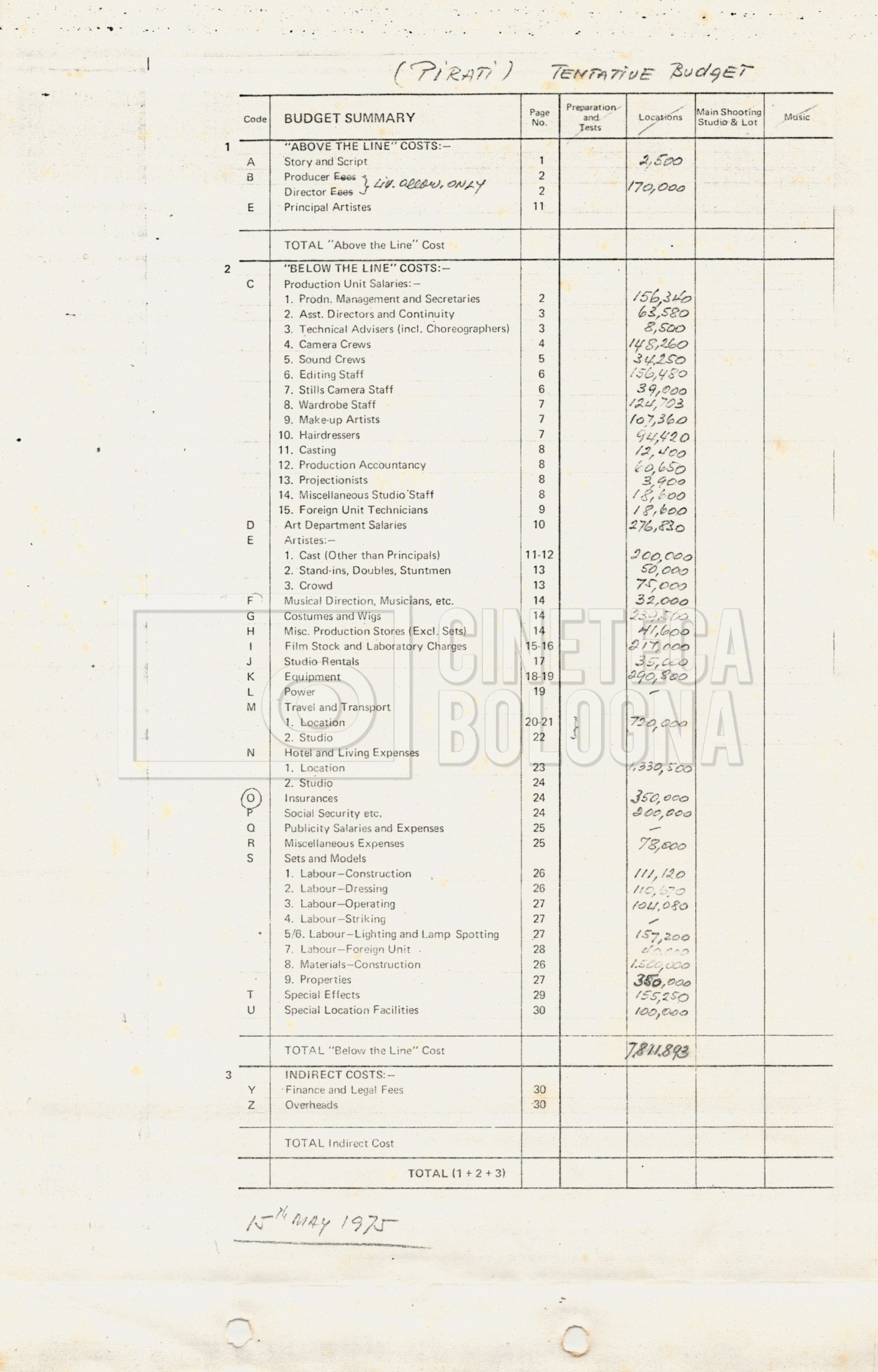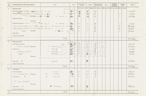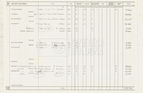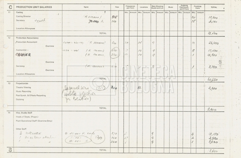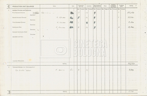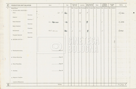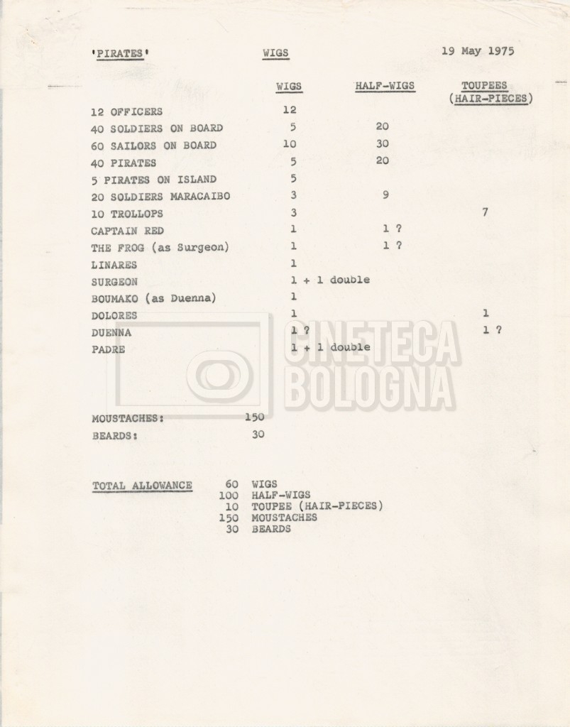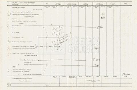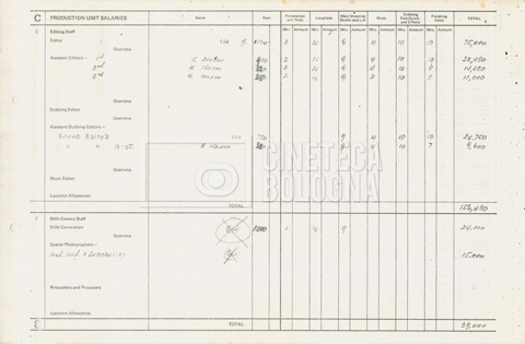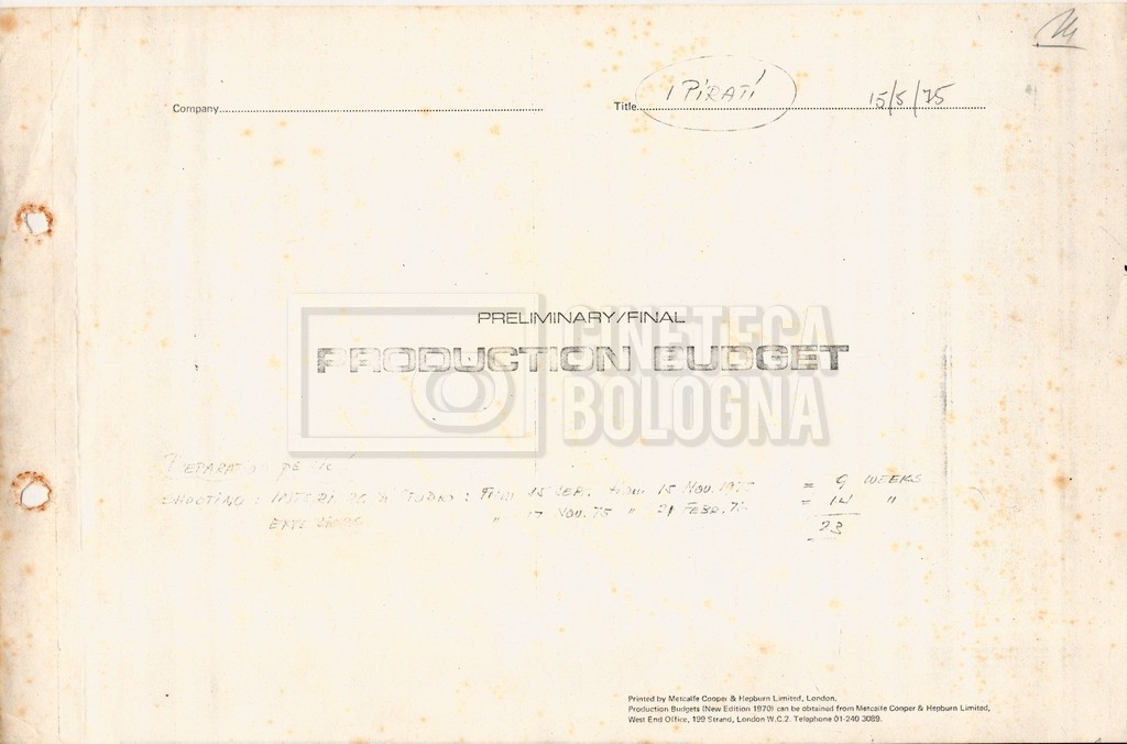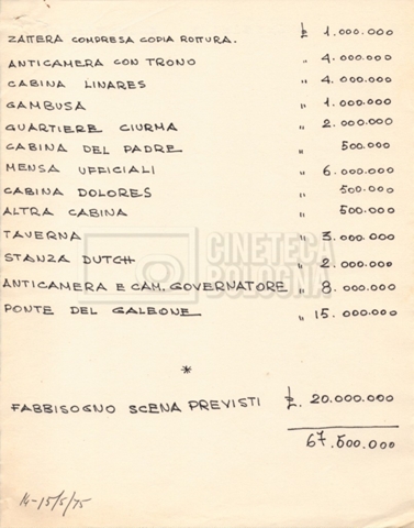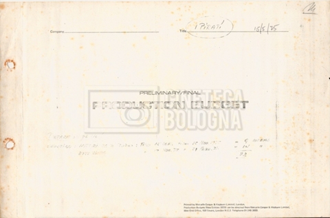 – Tre “Production budget” (15, 16 maggio e 28 luglio 1975);