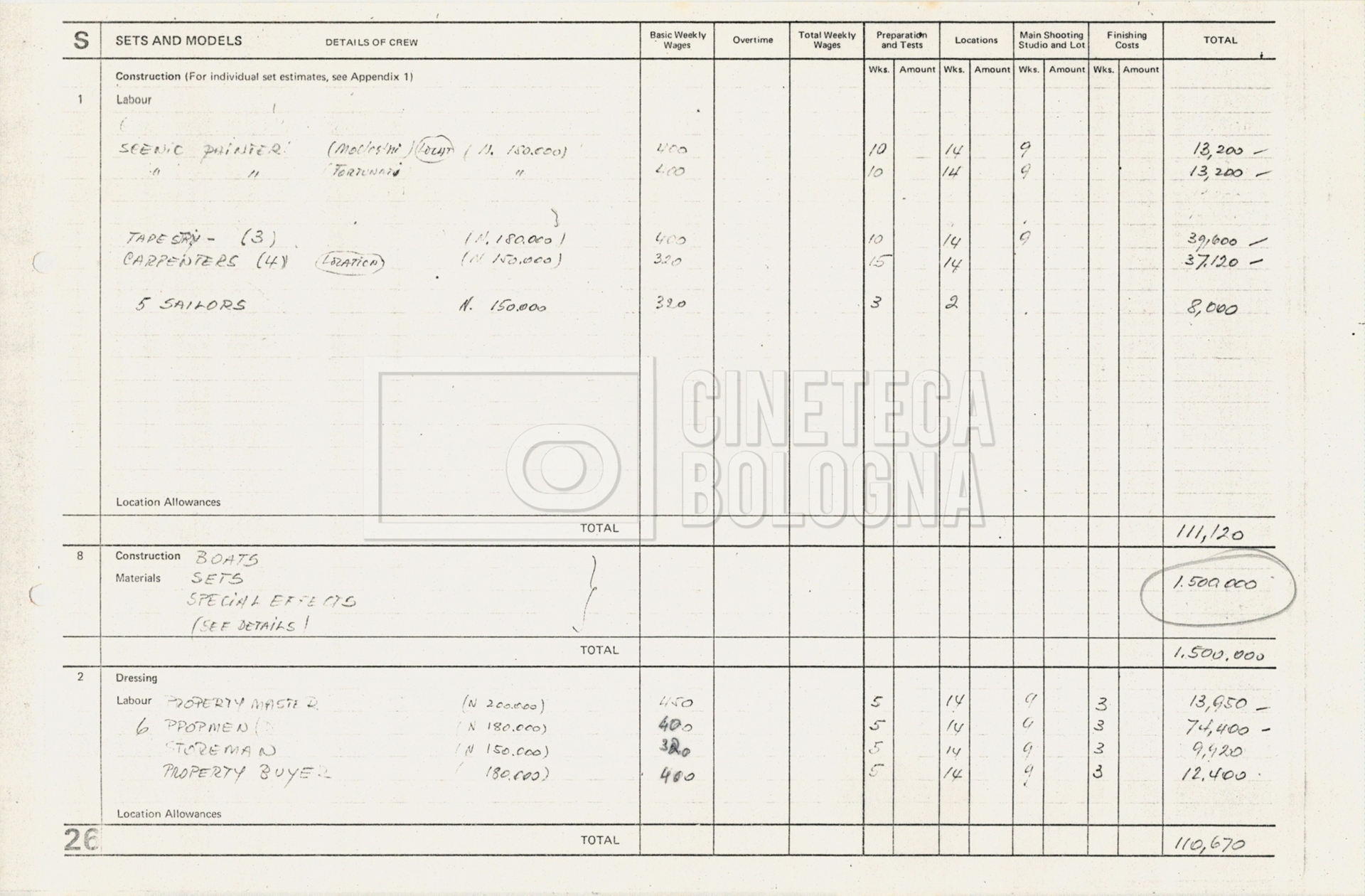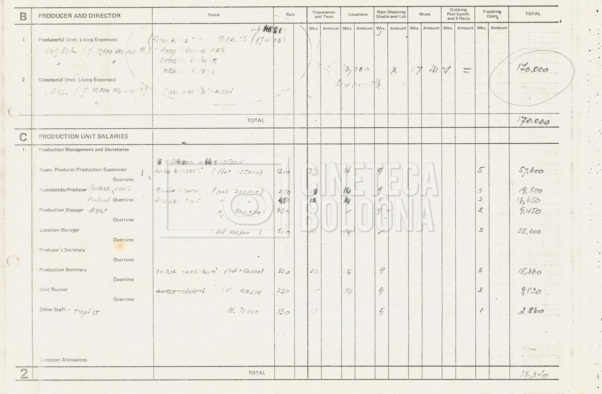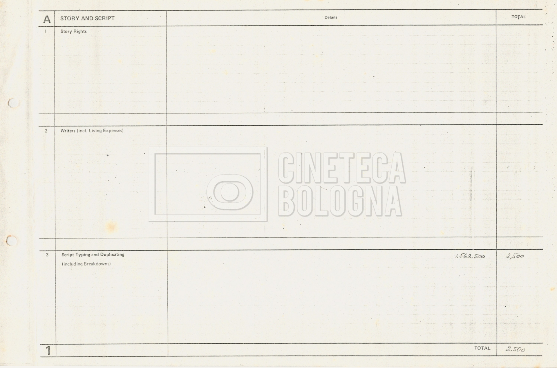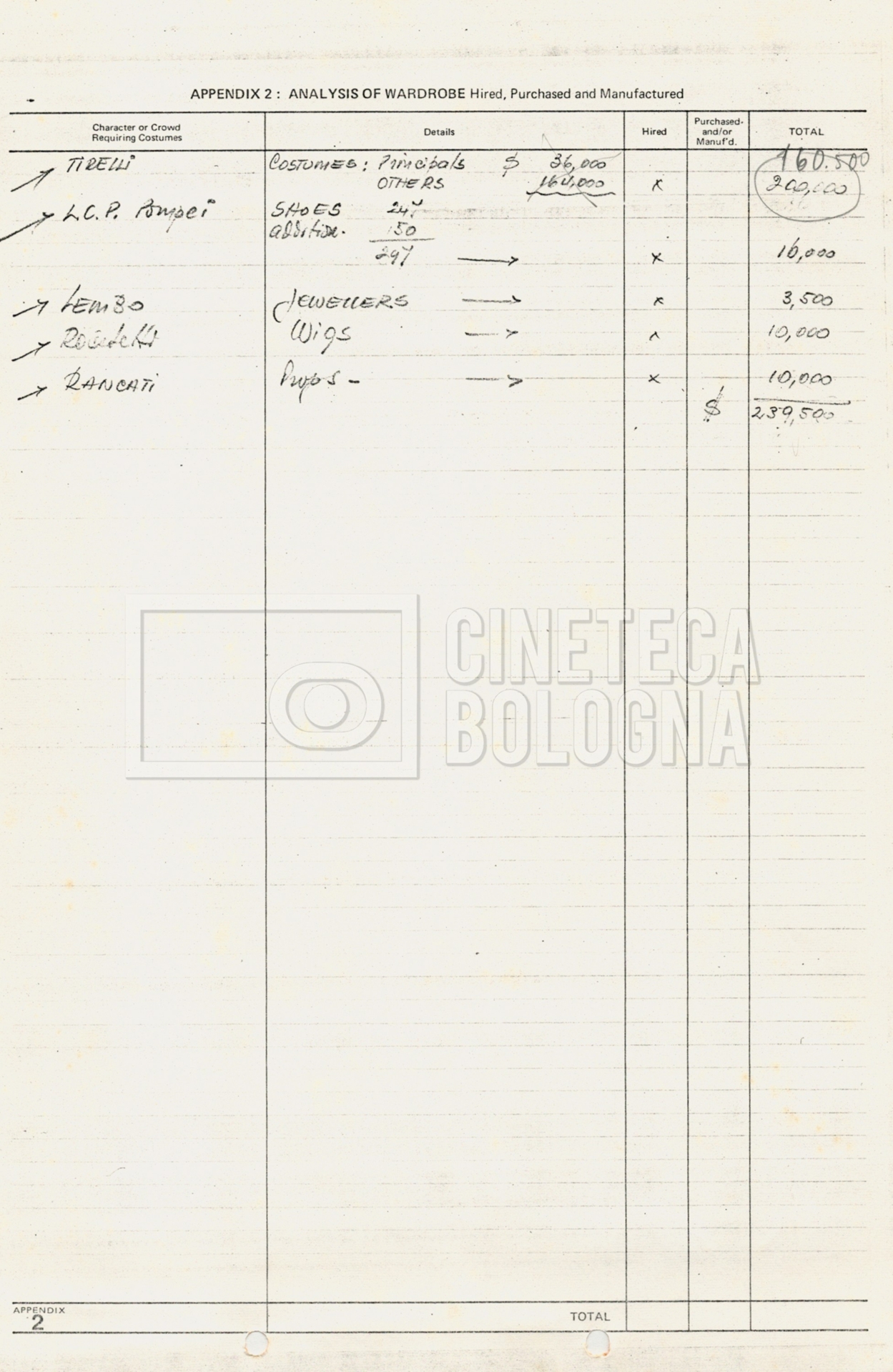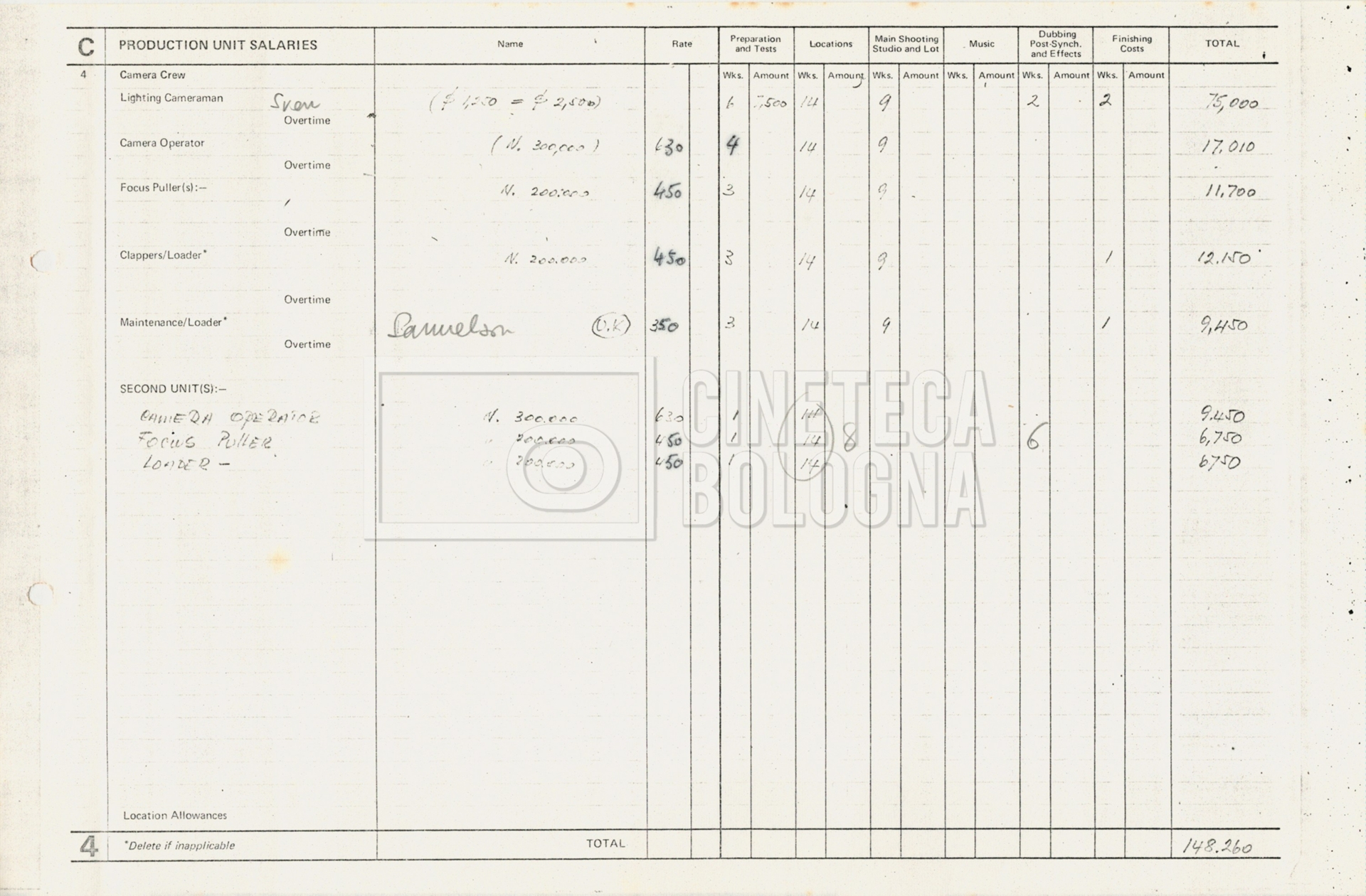 – Tre “Production budget” (15, 16 maggio e 28 luglio 1975);