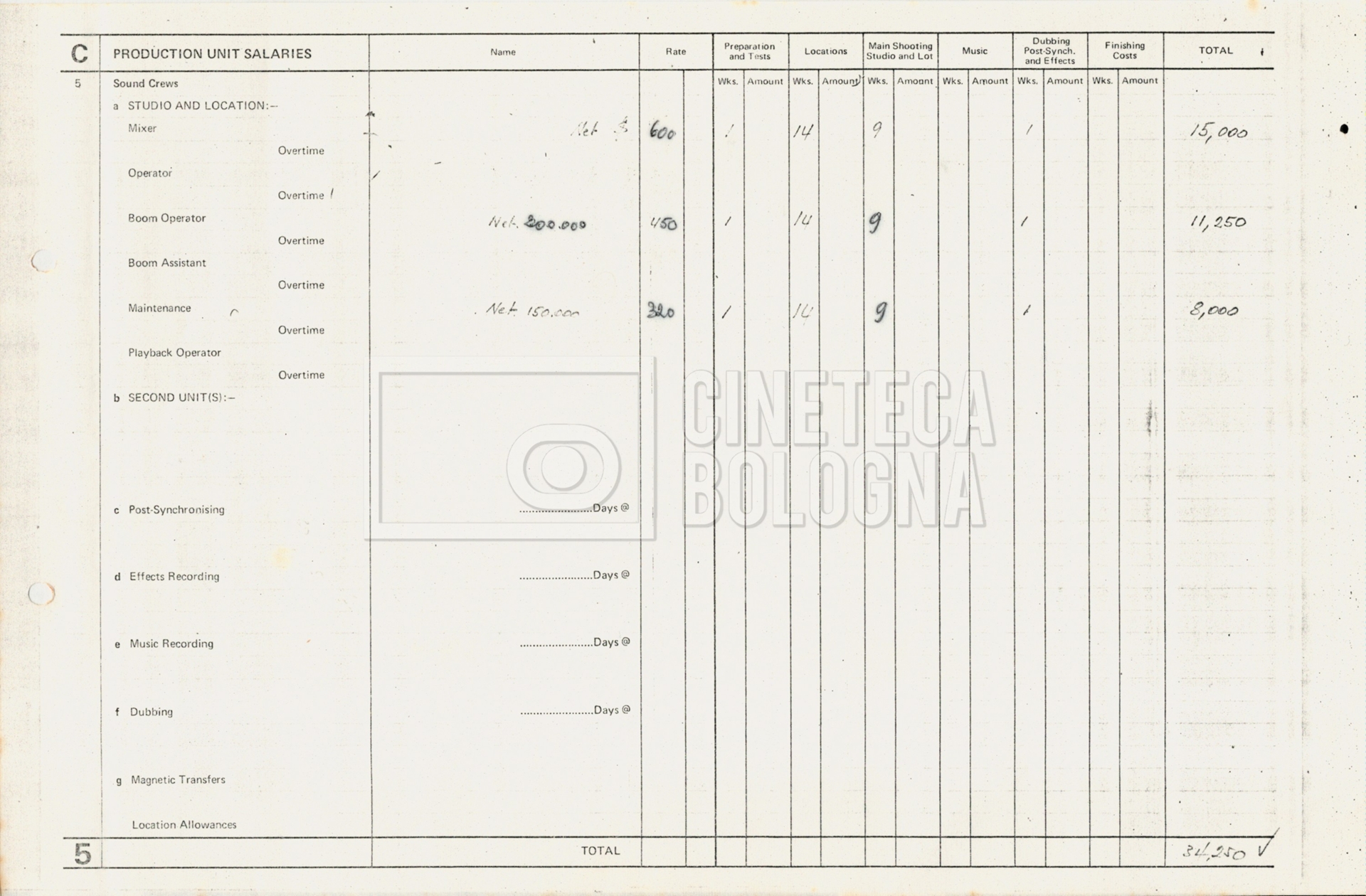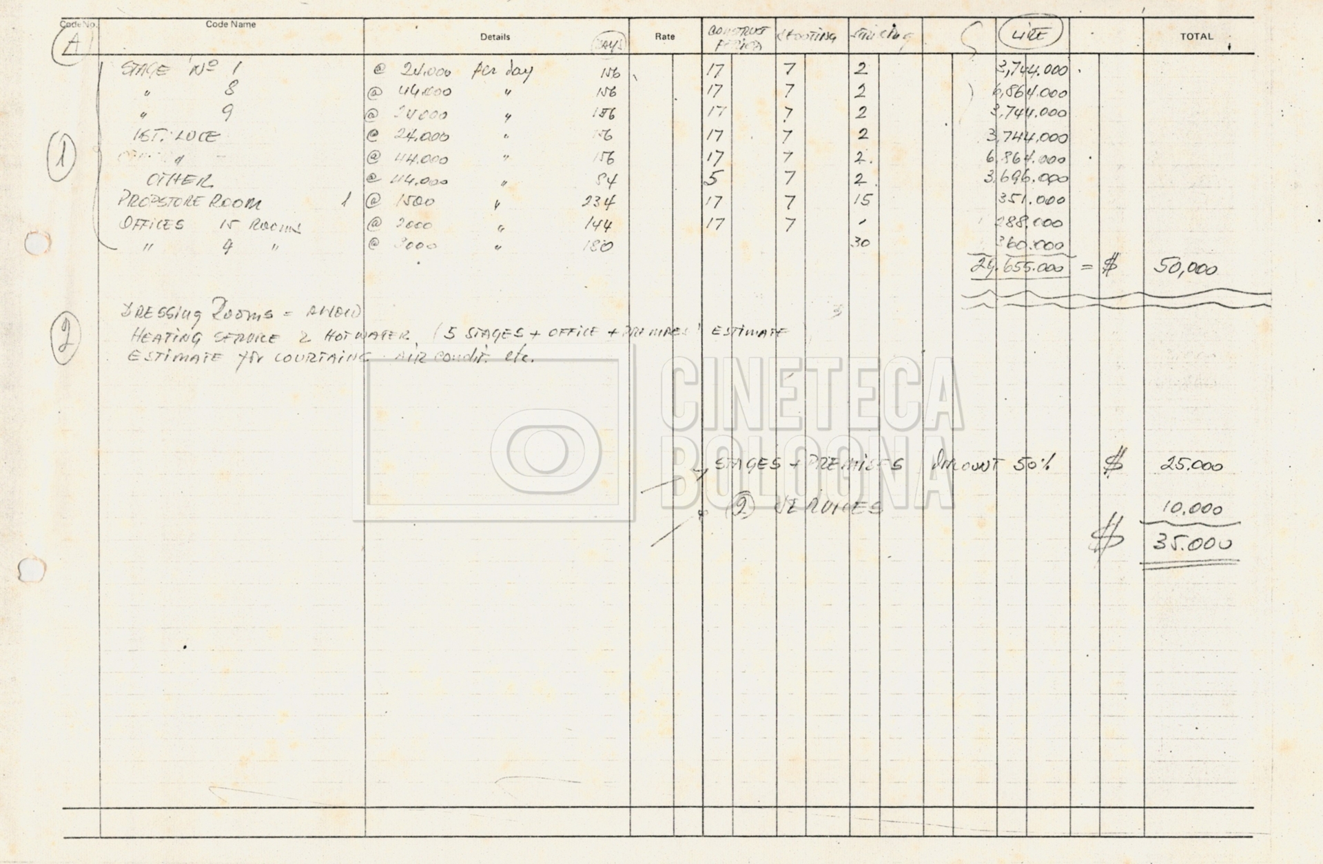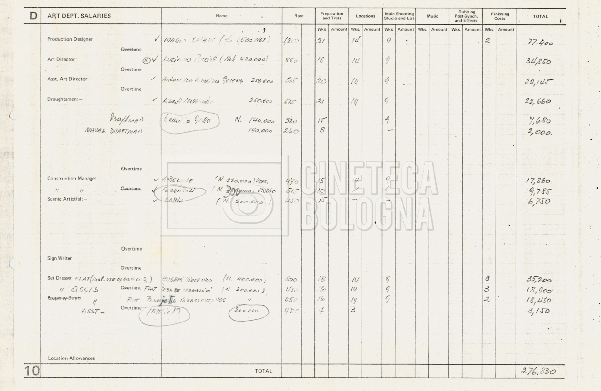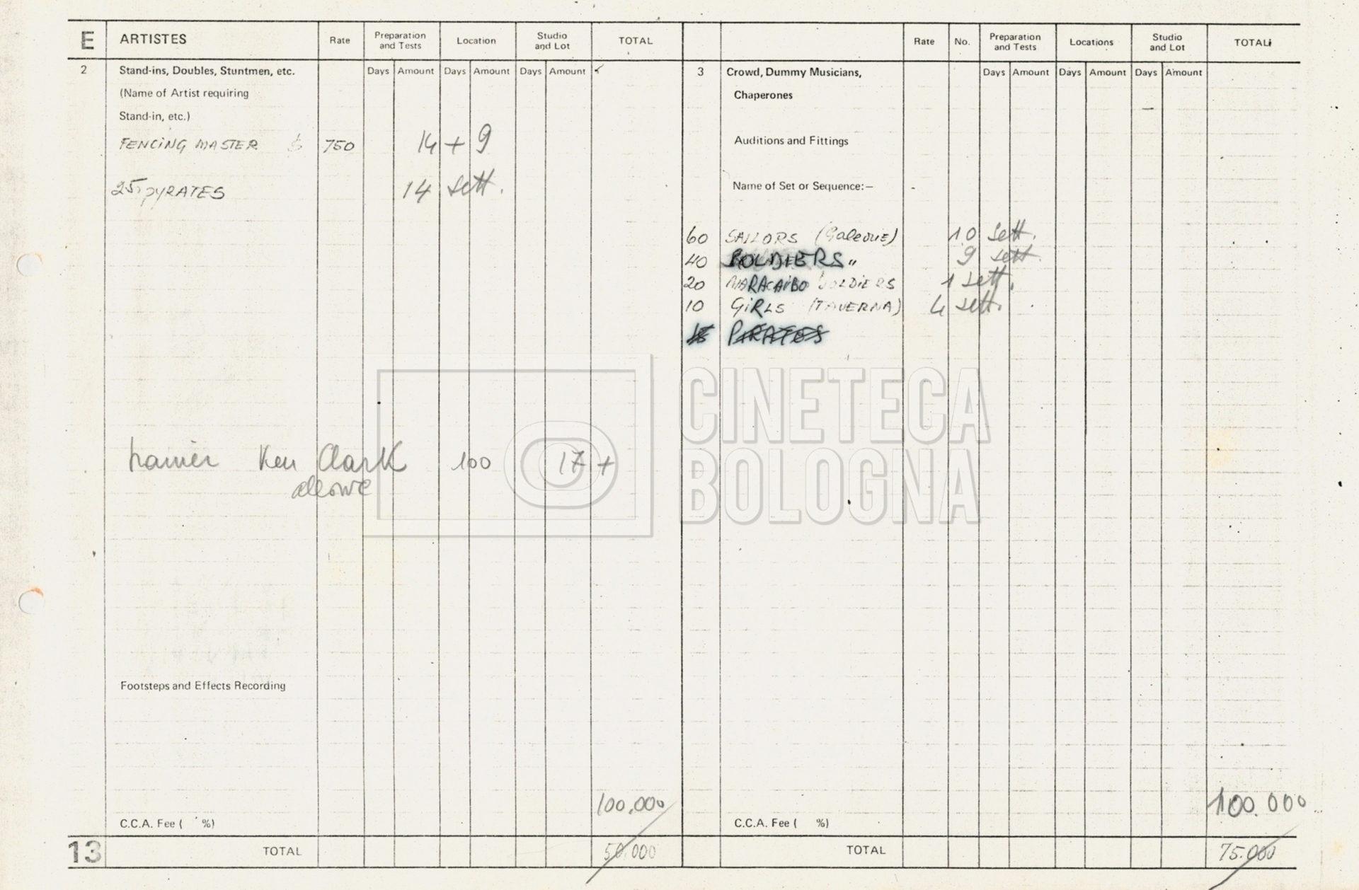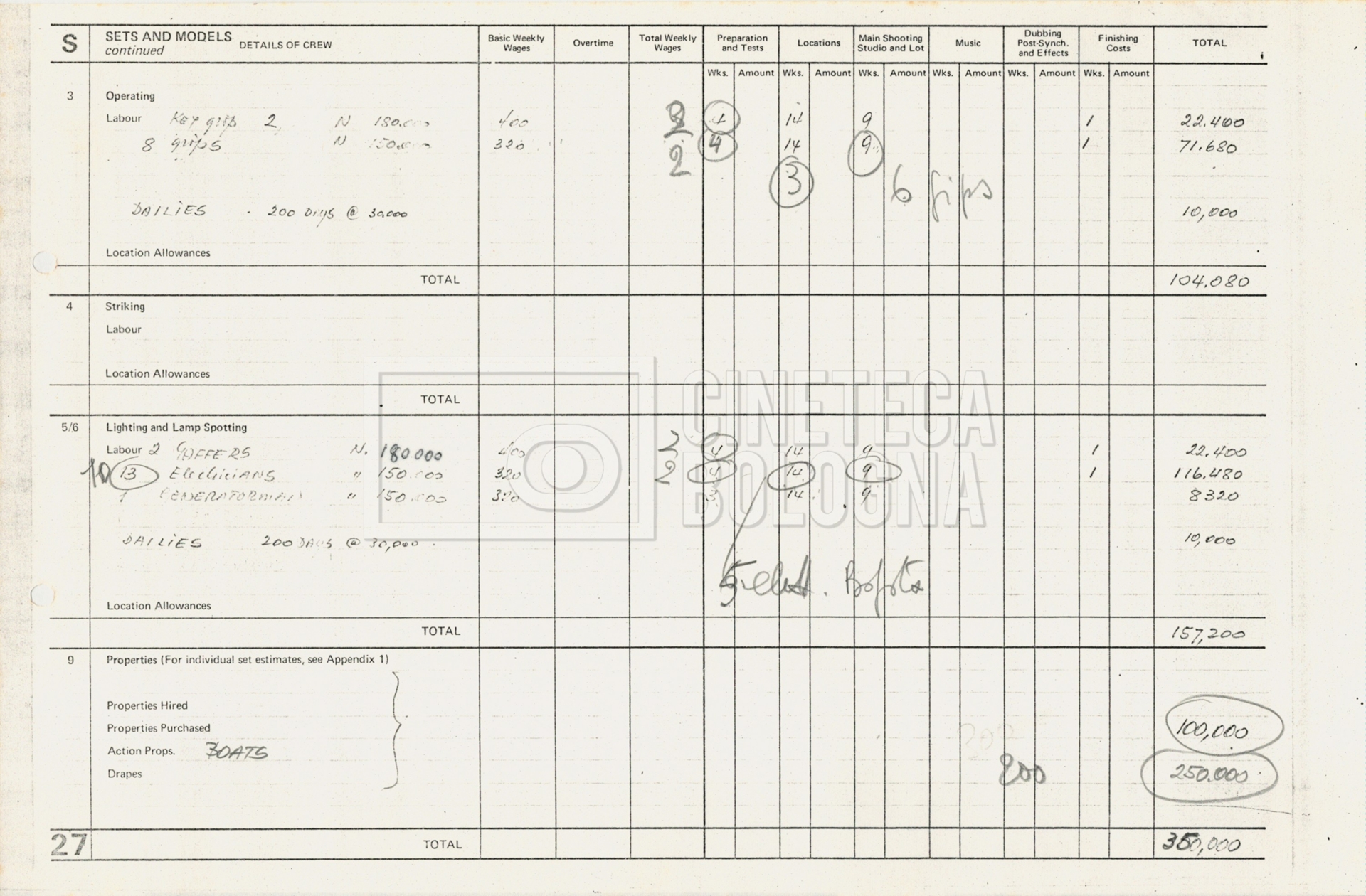 – Tre “Production budget” (15, 16 maggio e 28 luglio 1975);