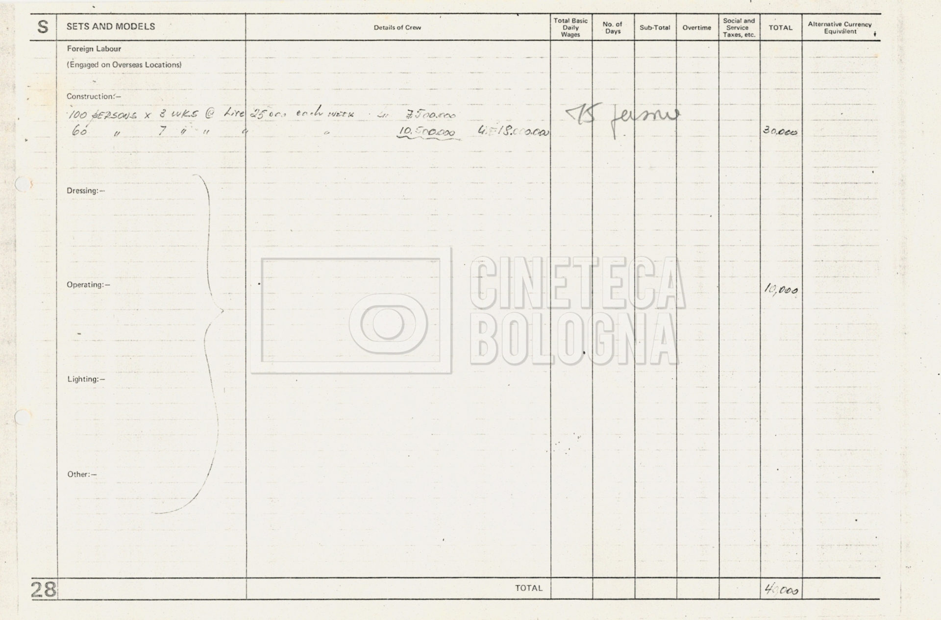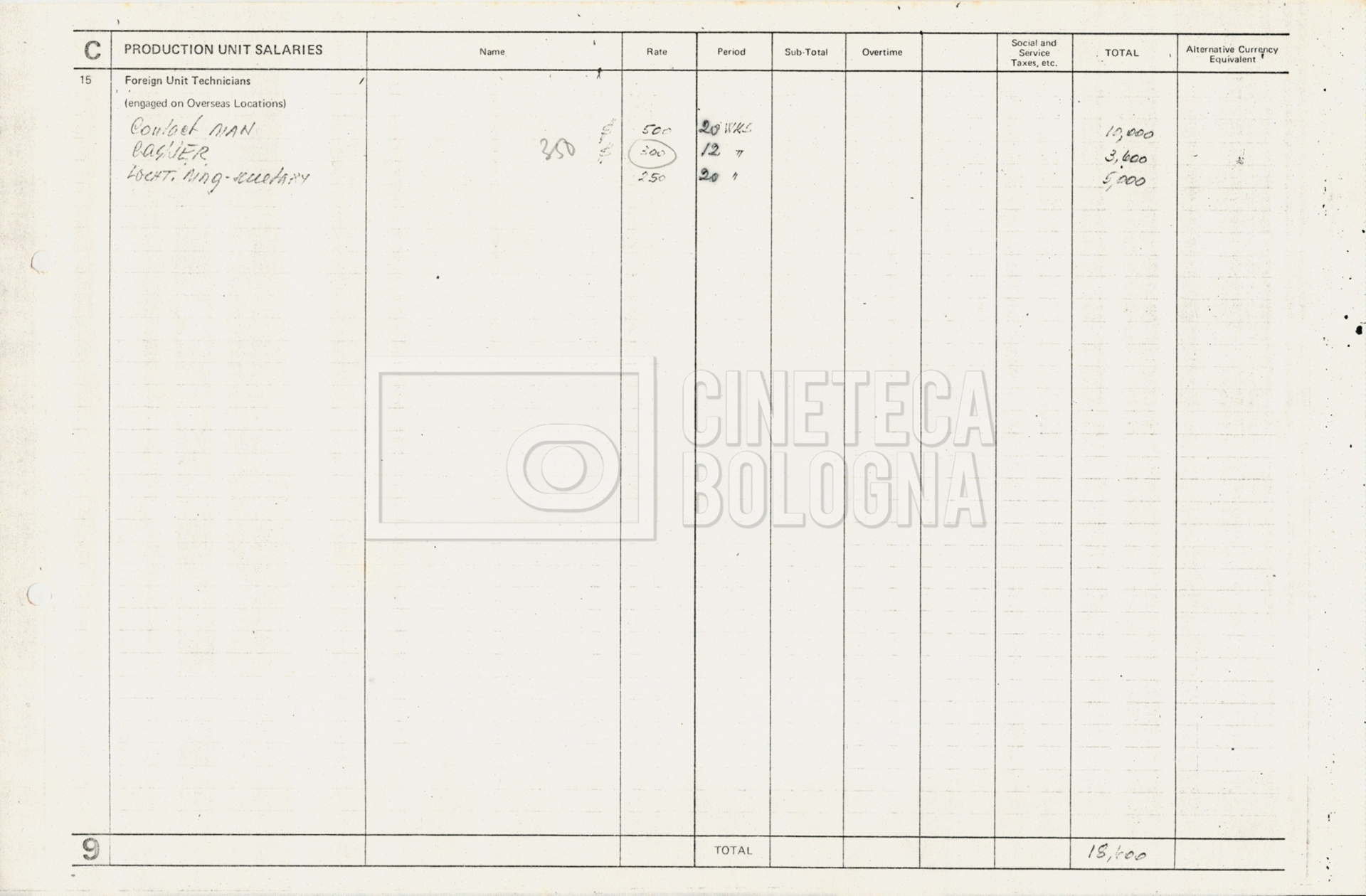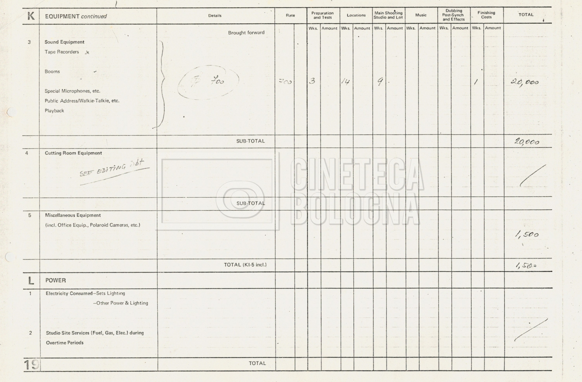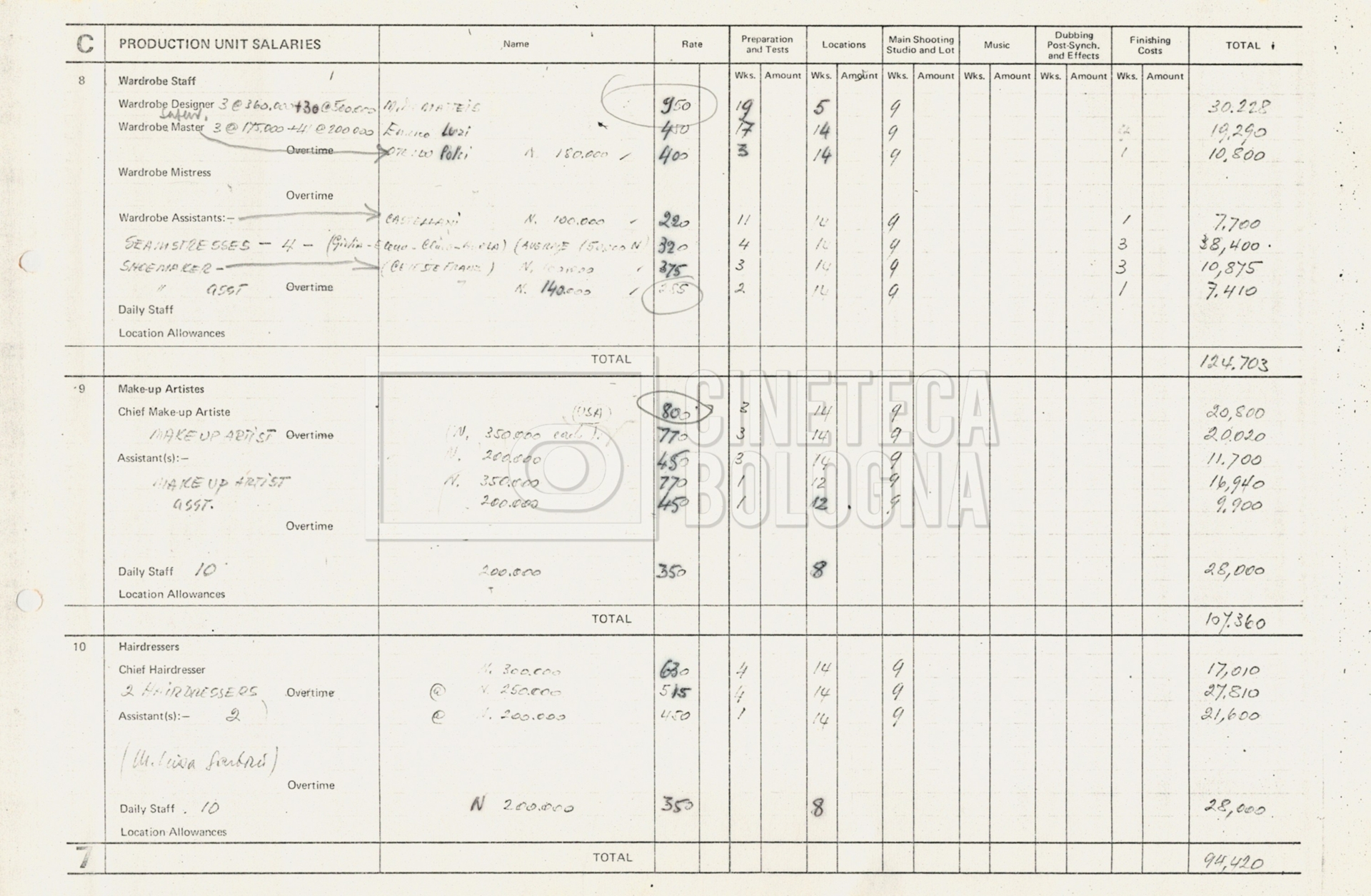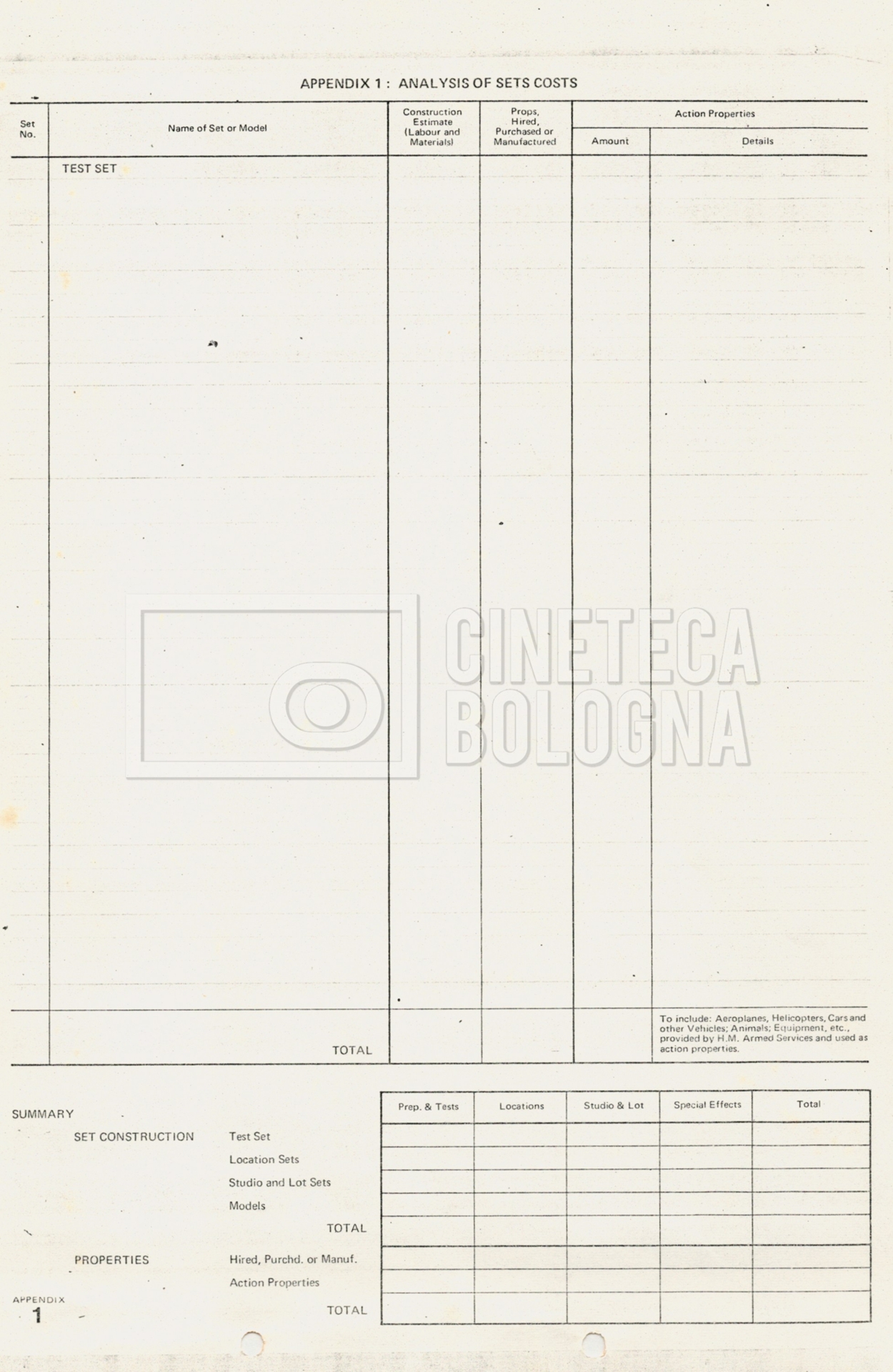 – Tre “Production budget” (15, 16 maggio e 28 luglio 1975);