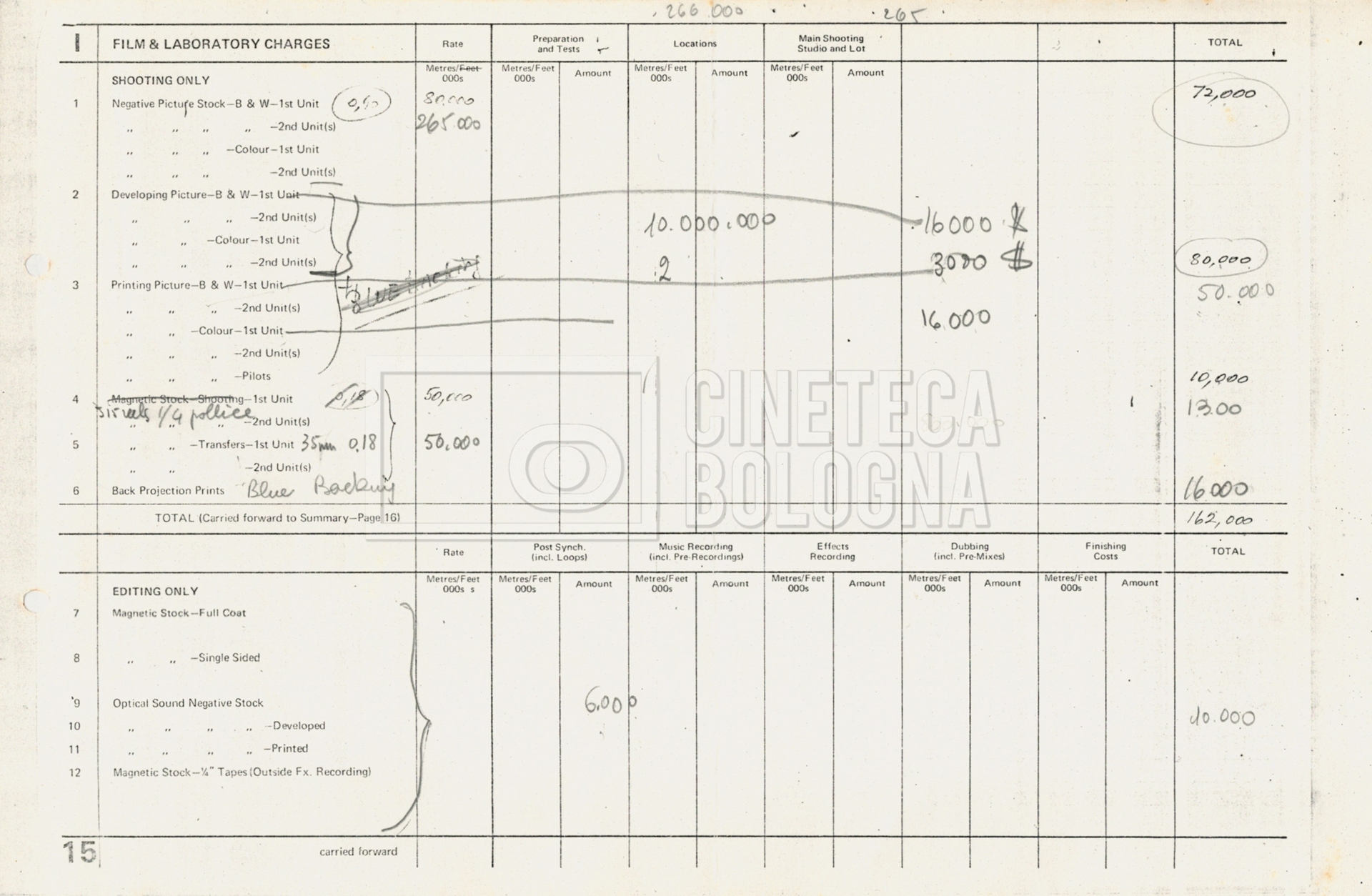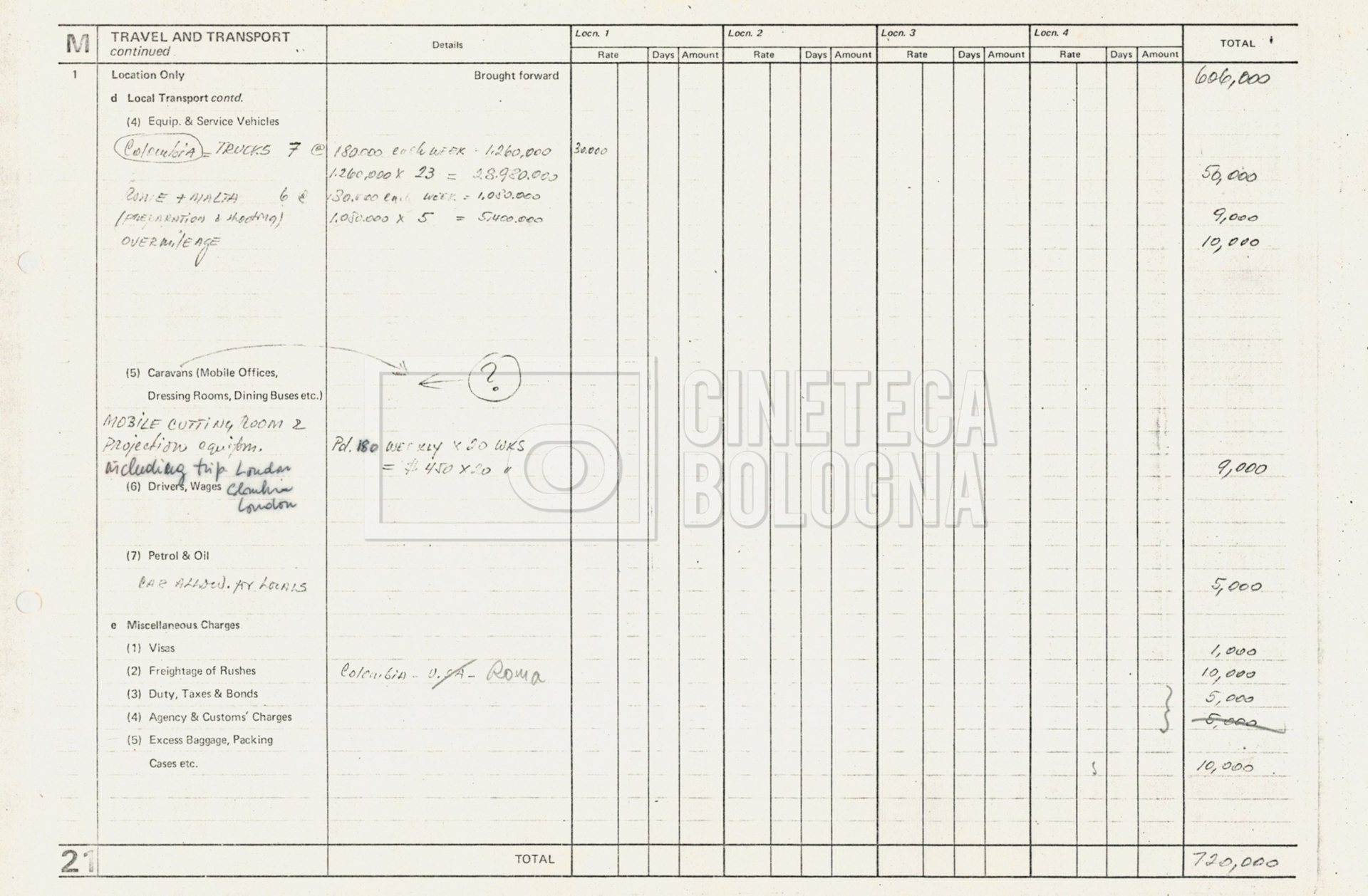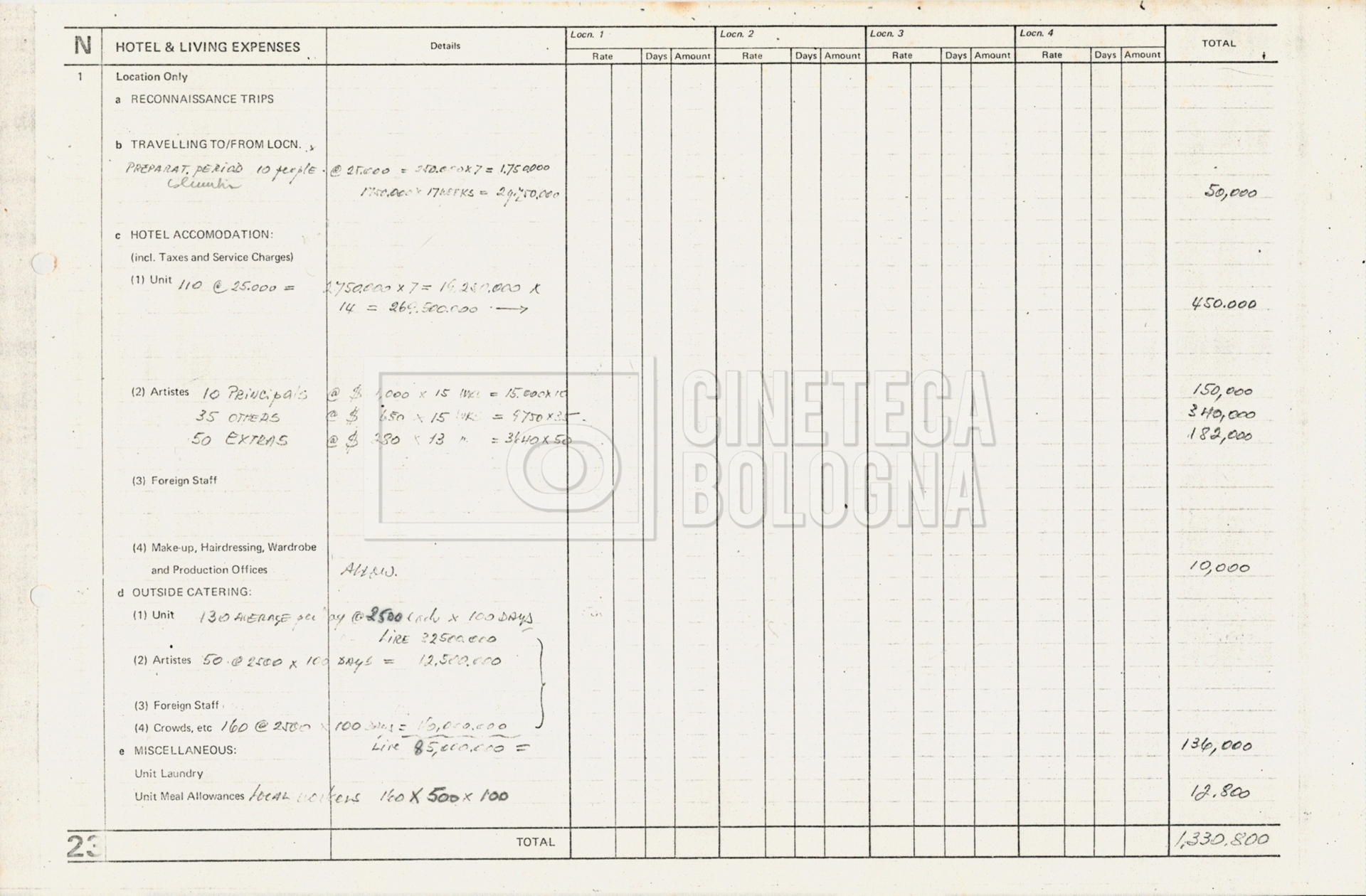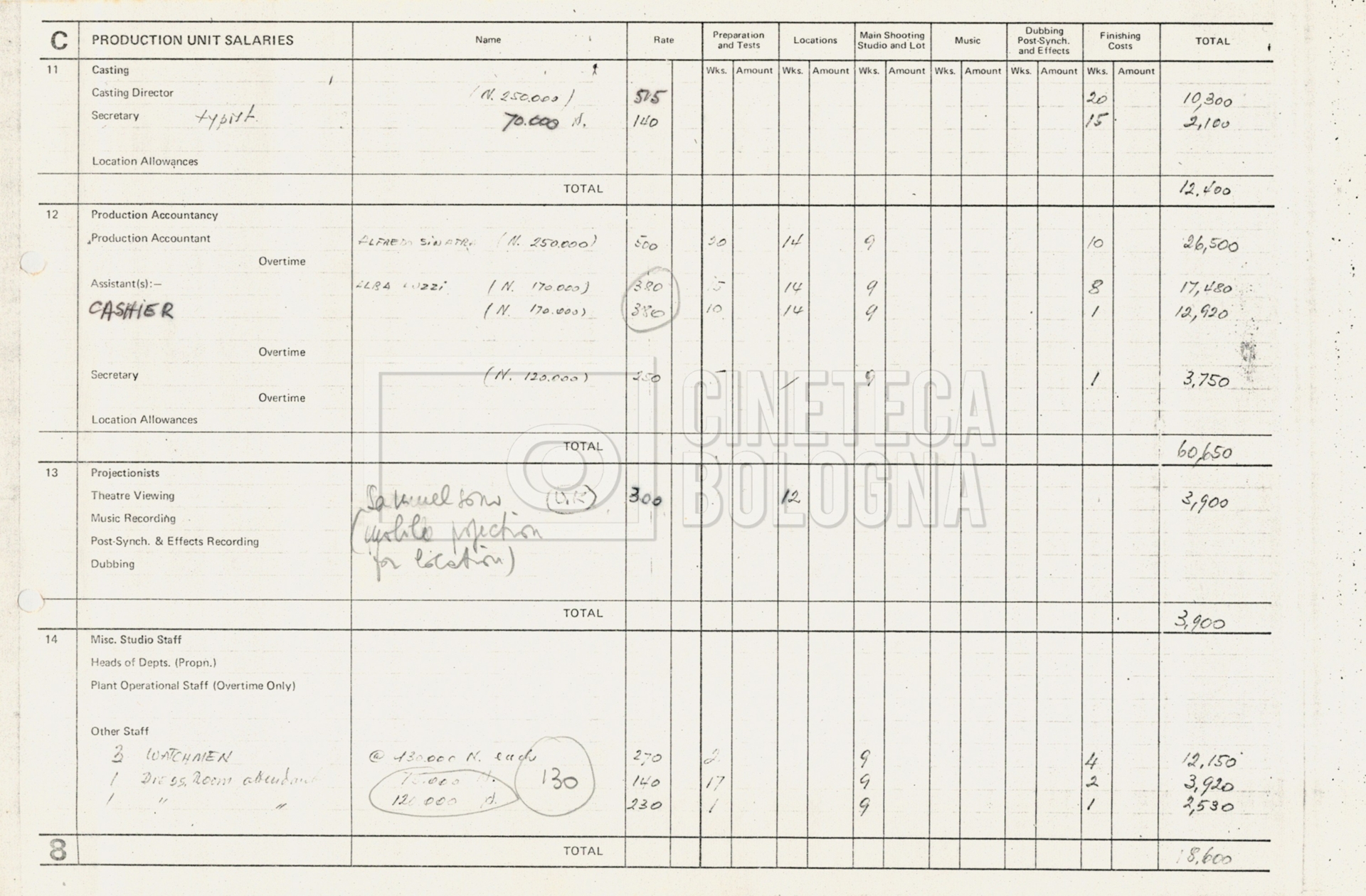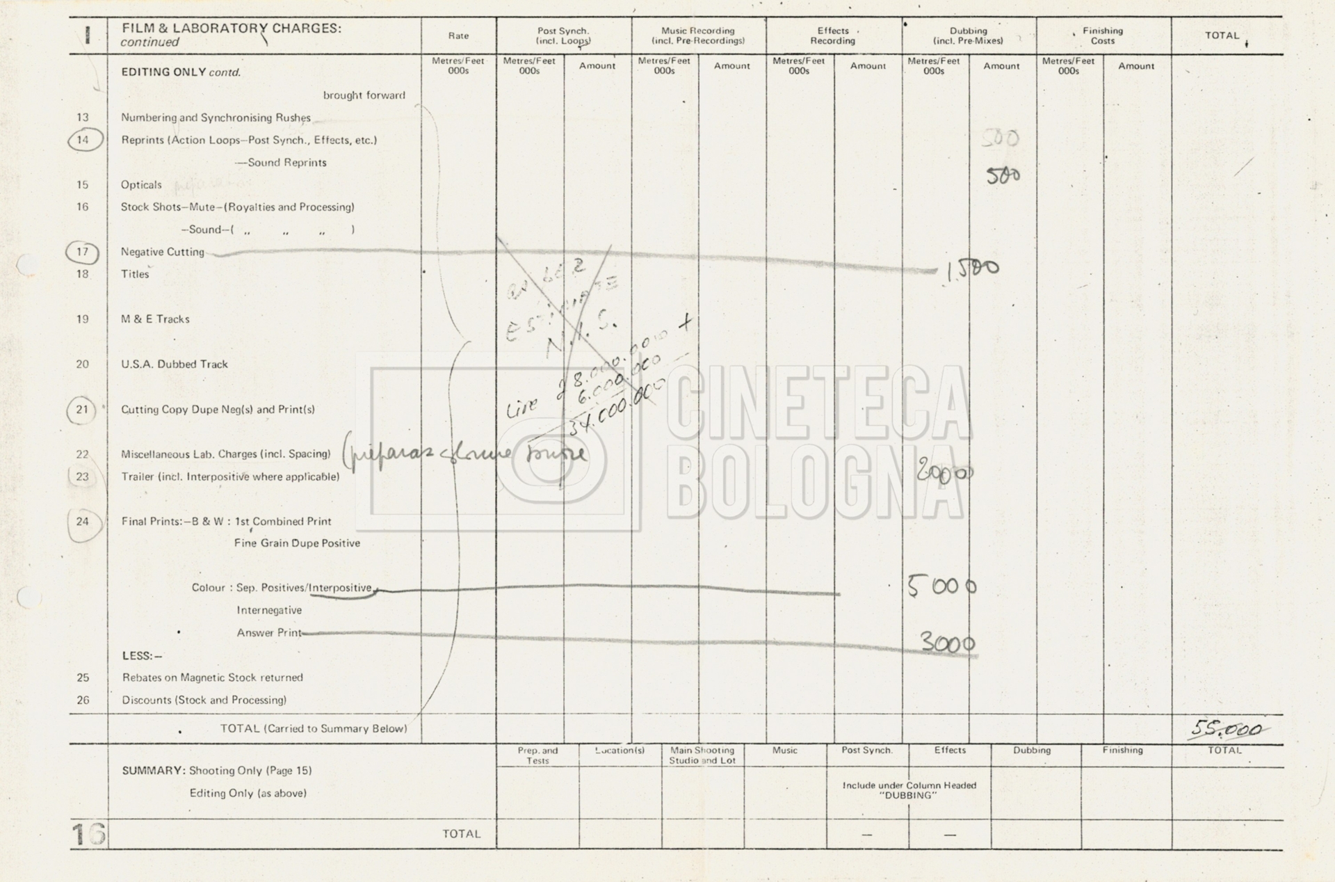– Tre “Production budget” (15, 16 maggio e 28 luglio 1975);