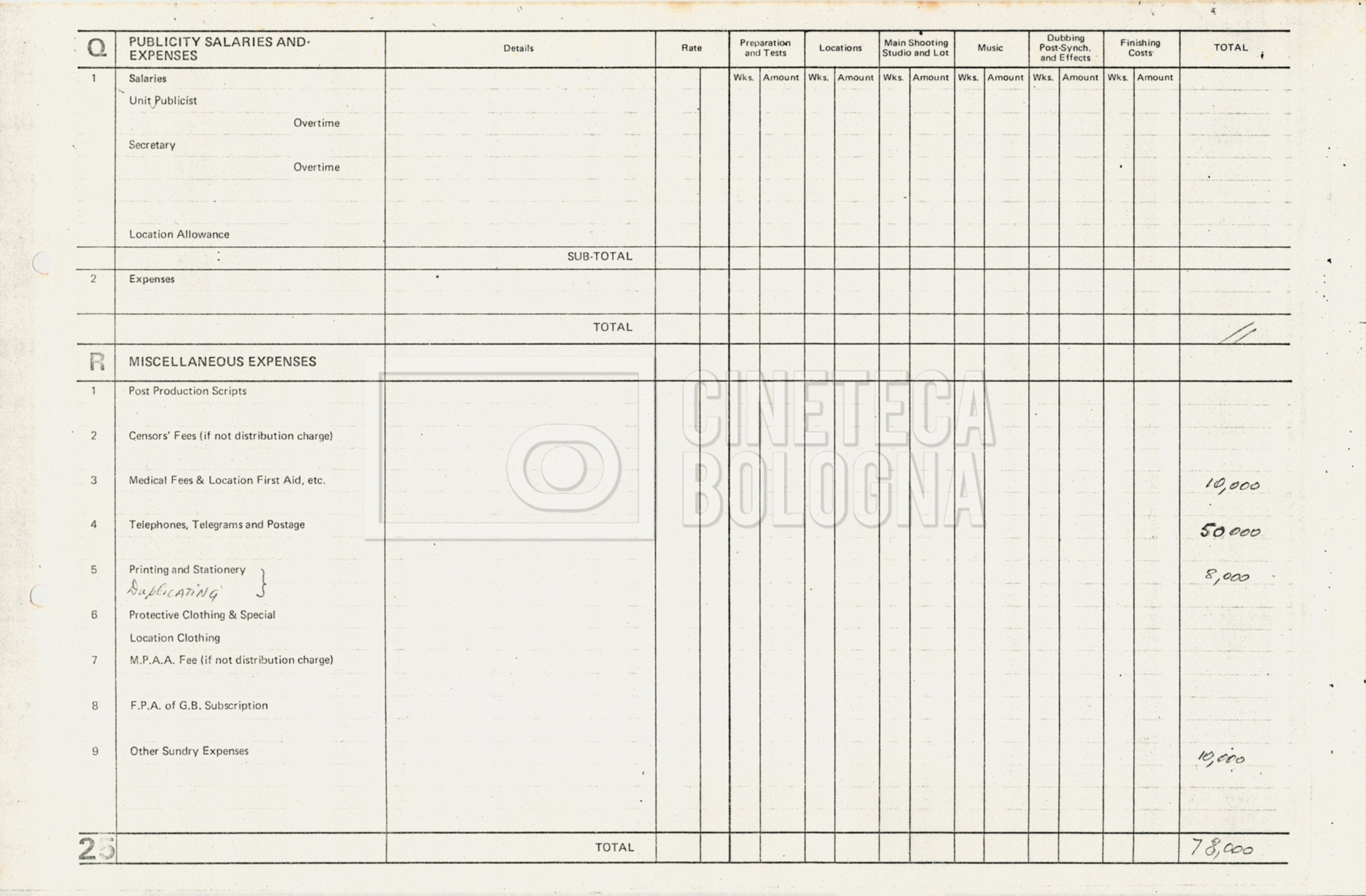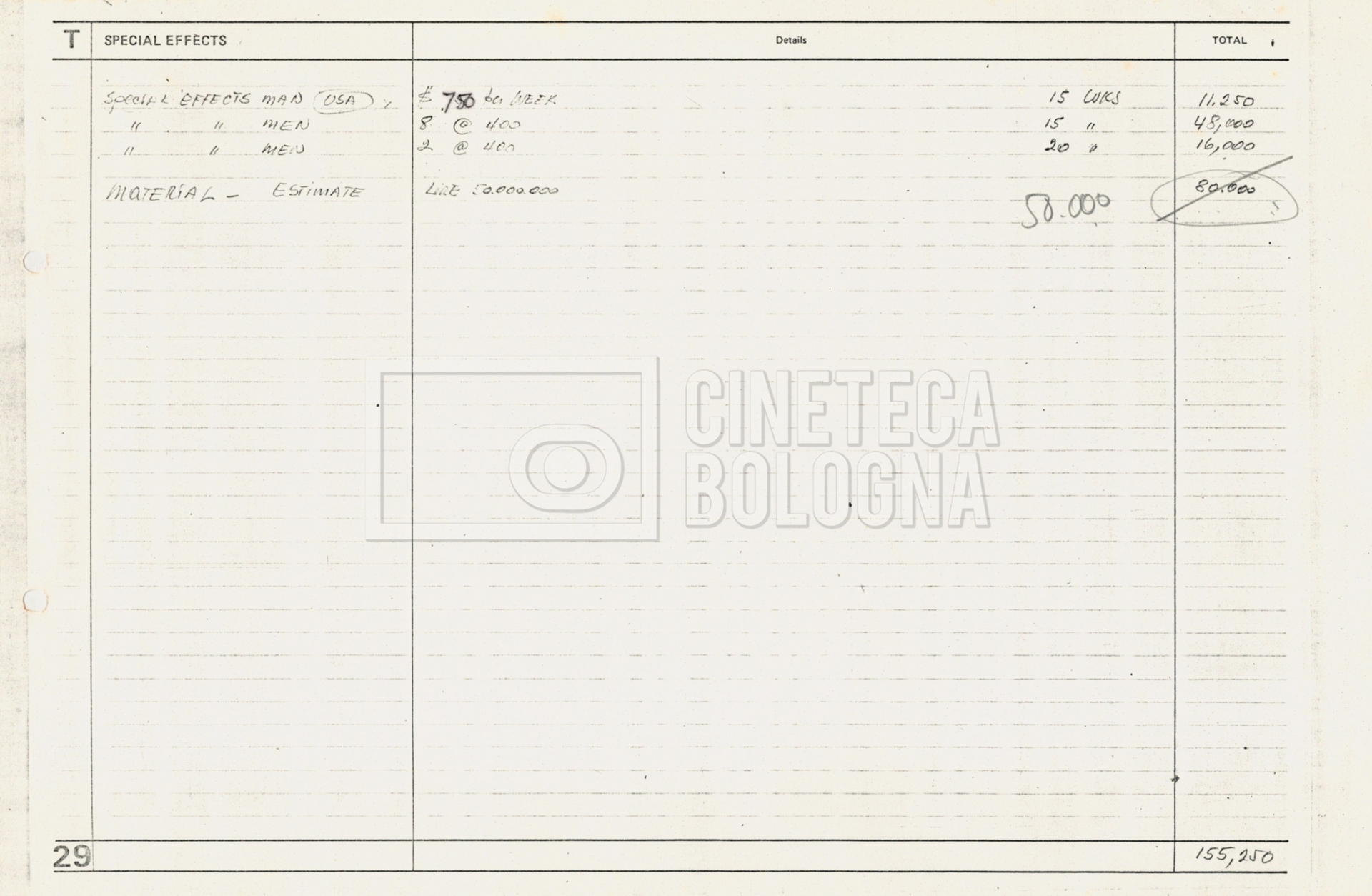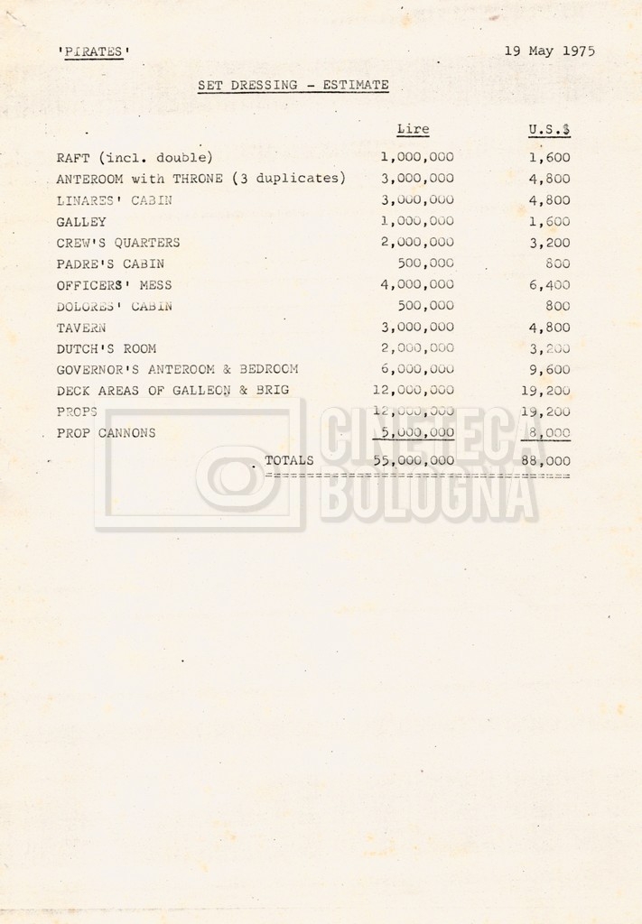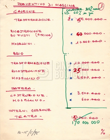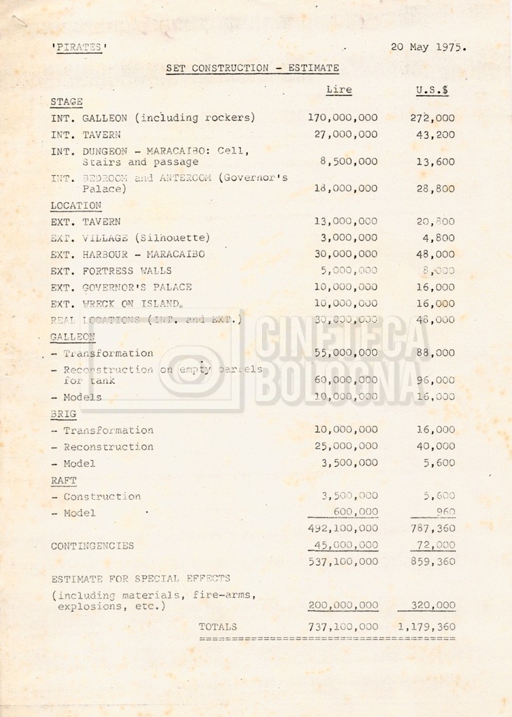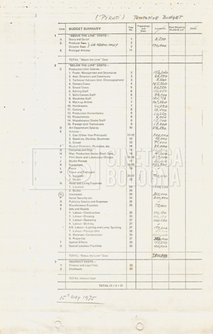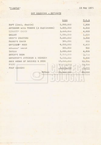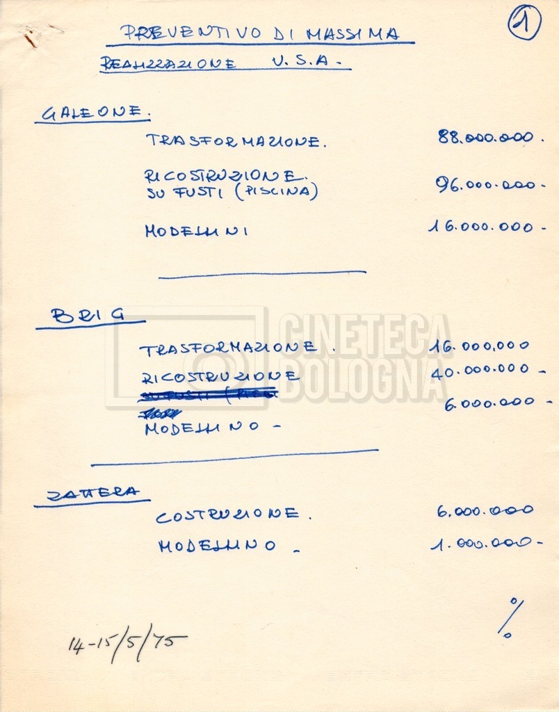 – Due “Tentative production budget” (15 e 16 maggio 1975).