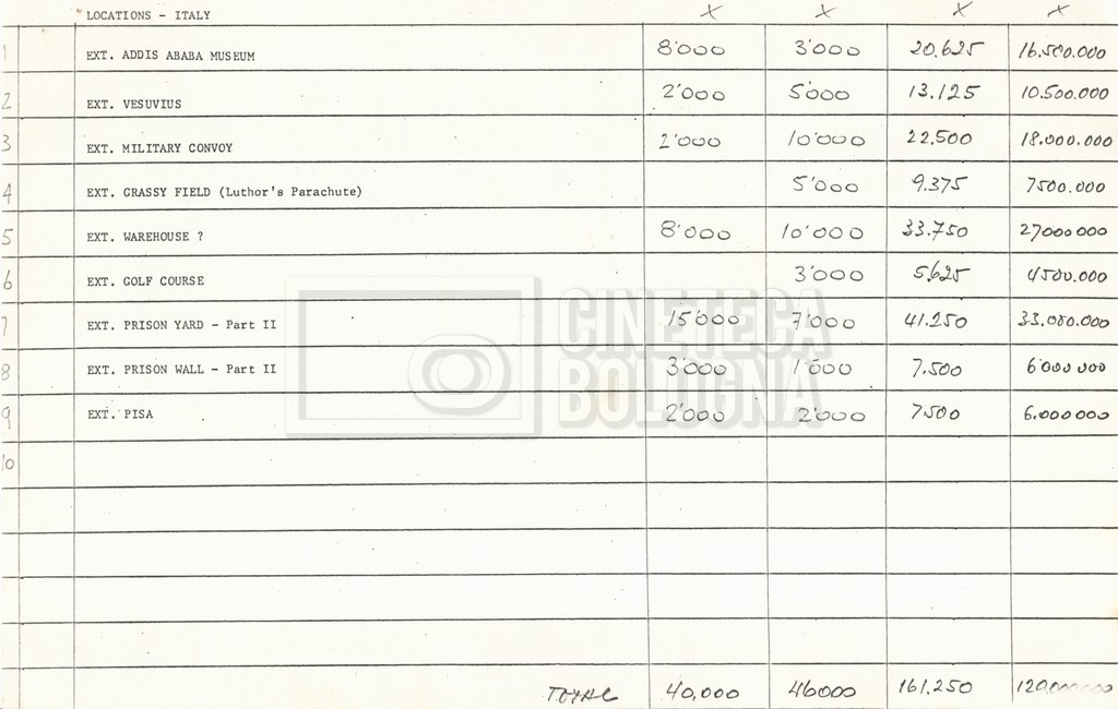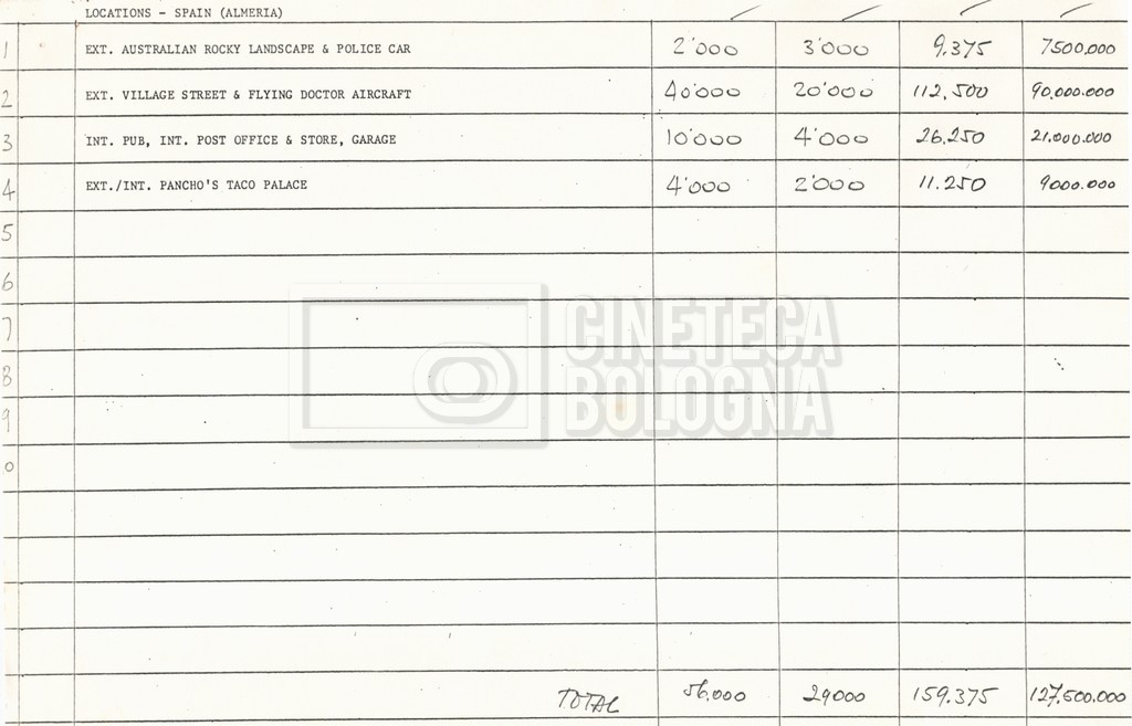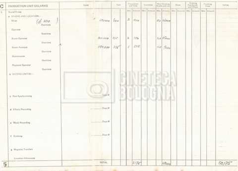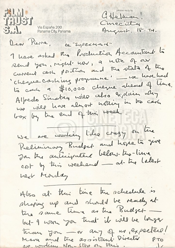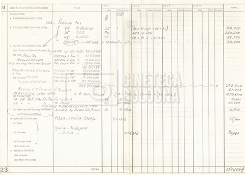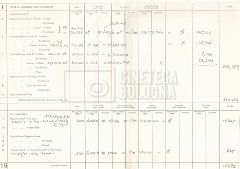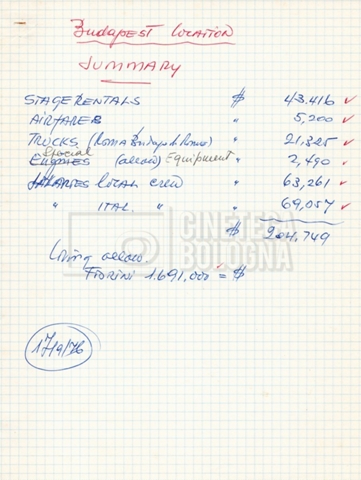 – Un sommario delle spese per le riprese in Ungheria al 17 settembre 1976;