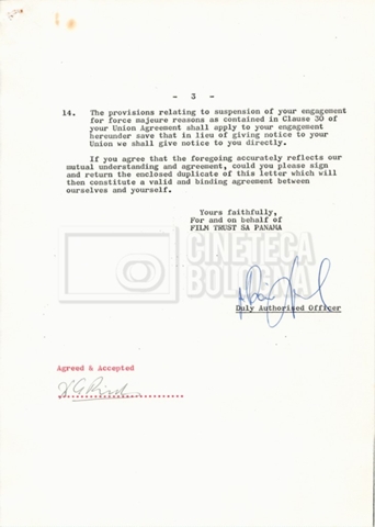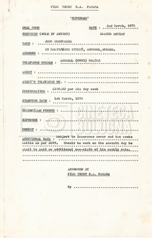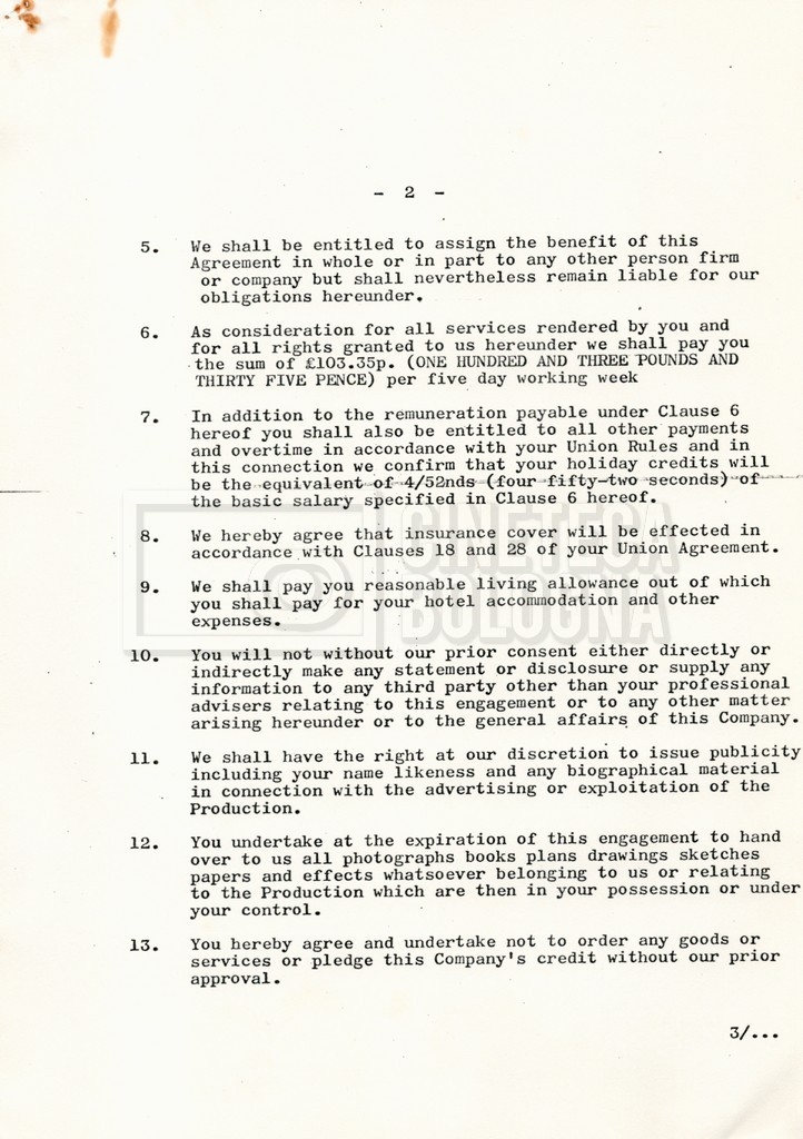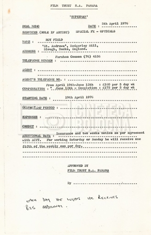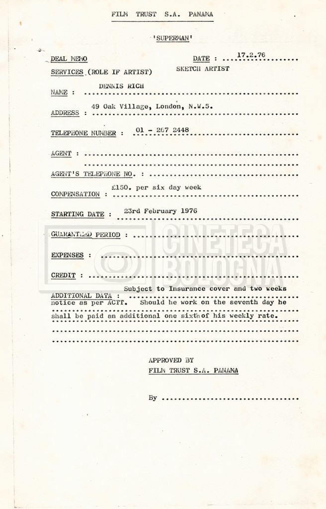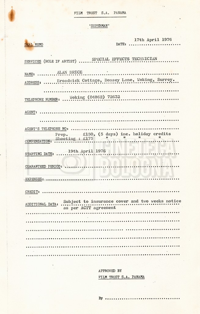 – Copie di vari contratti per la troupe, tecnici ed effetti speciali;
