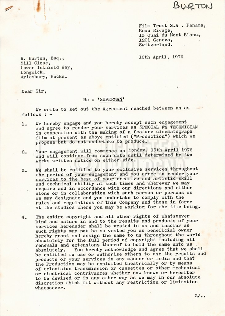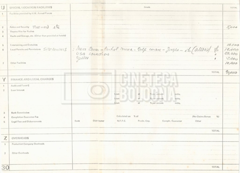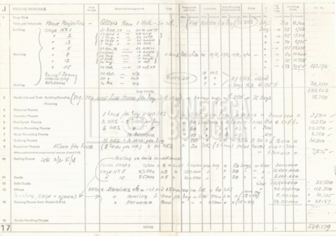 – Preventivi e stime dei costi da luglio a settembre 1976, per i ‘Bray Studios’ in Inghilterra;