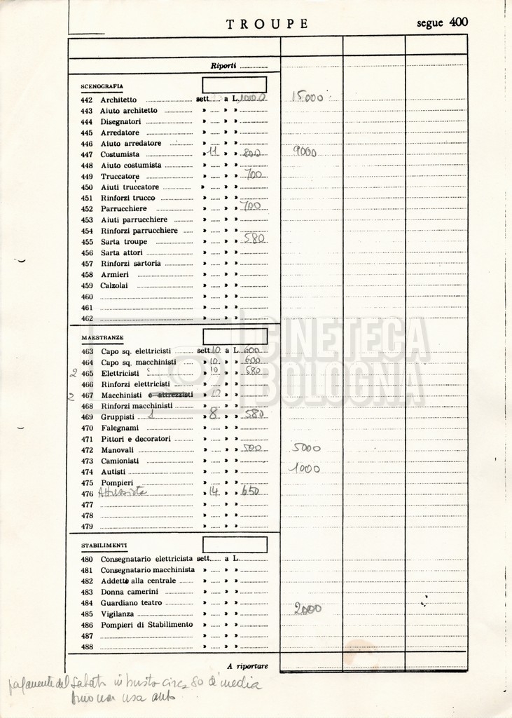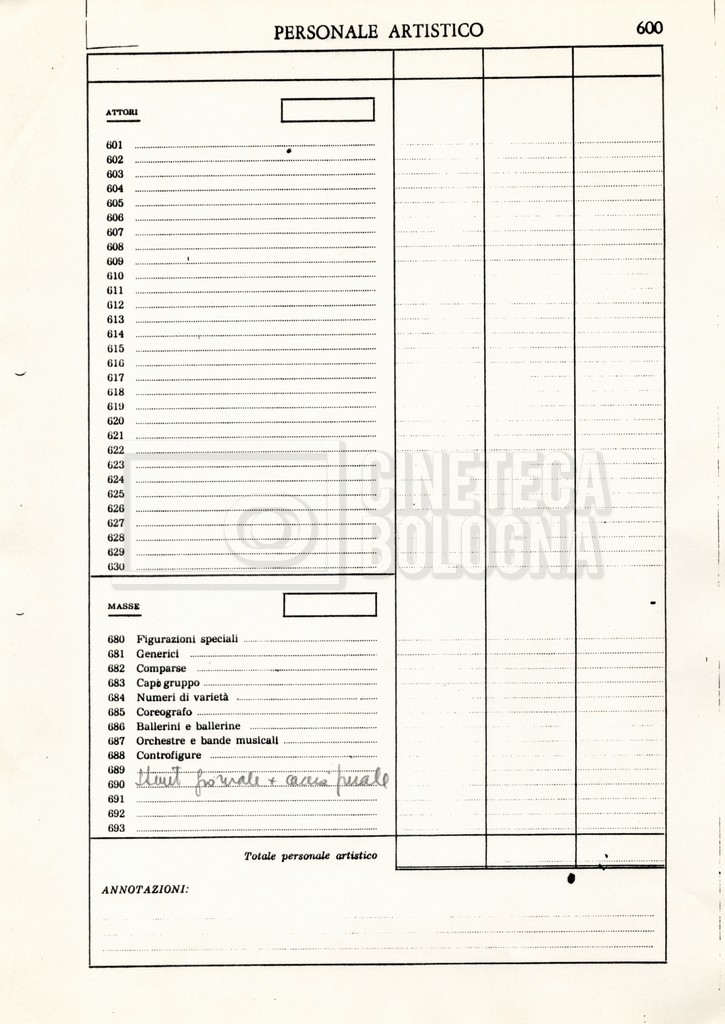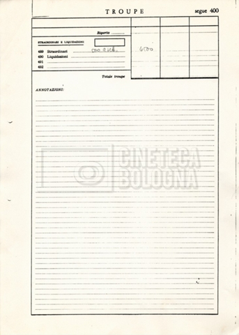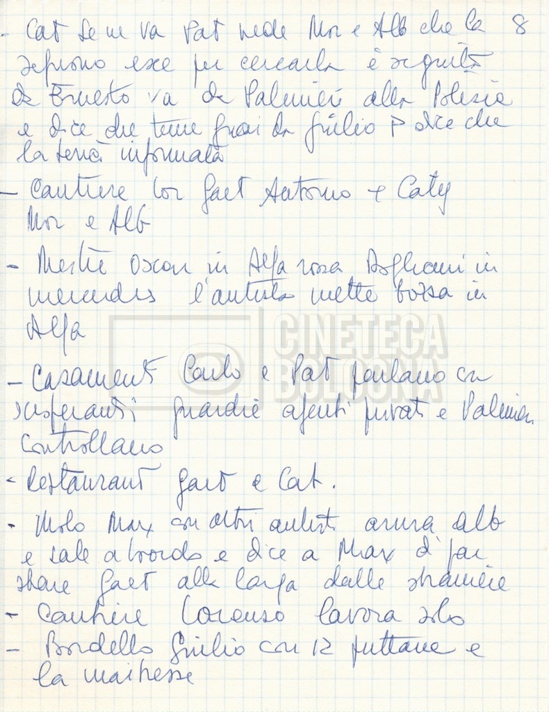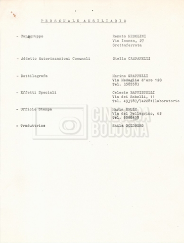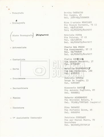 – Un elenco della troupe con, in ultima pagina, un elenco di film girati da Eriprando Visconti;