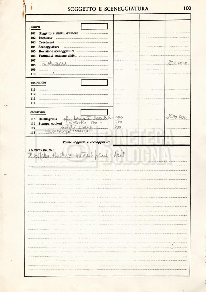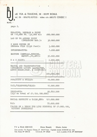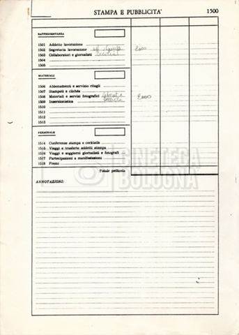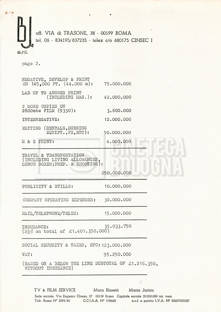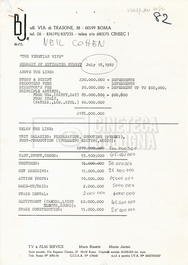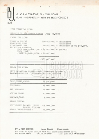 – Due budget di spesa stimati al 16 e 18 luglio 1982;