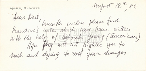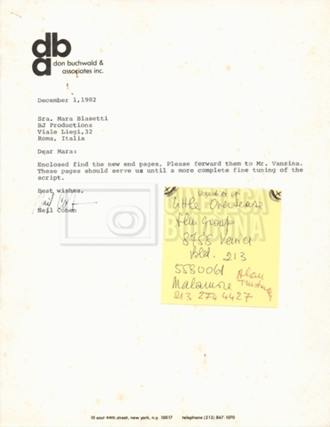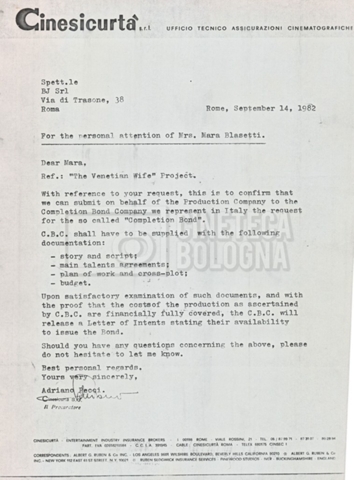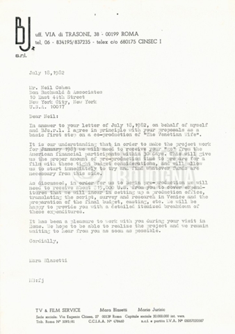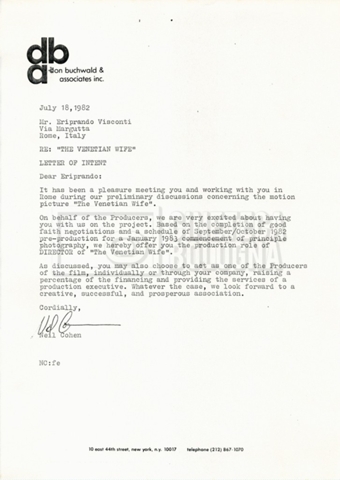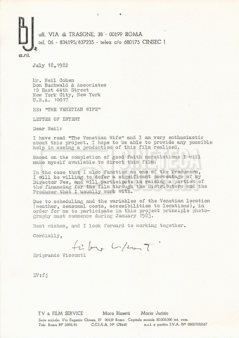 – Carteggio tra Mara Blasetti, Neil Cohen ed Eriprando Visconti (25 giugno – 1 dicembre 1982);