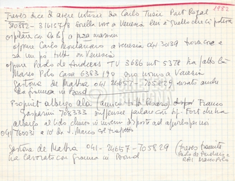– Appunti mss. e datt. sulle location;