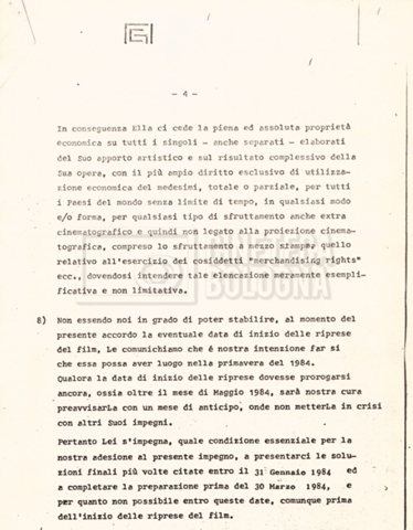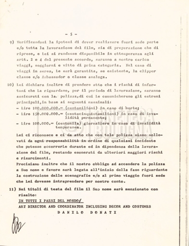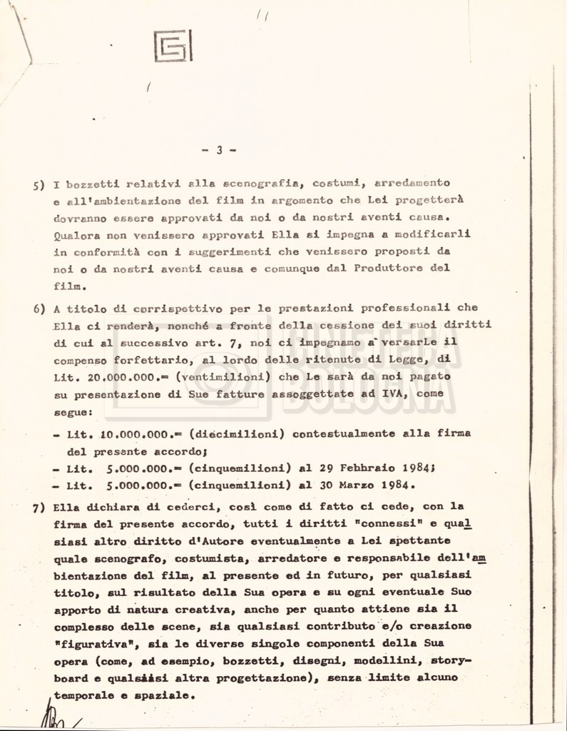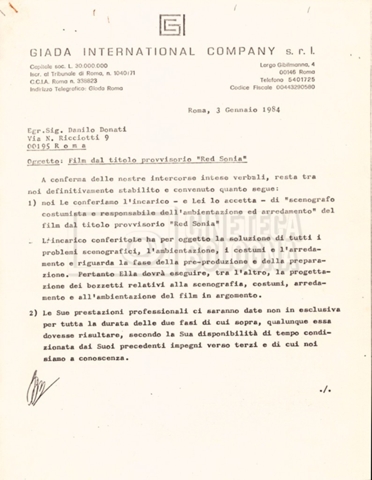 – Un contratto tra Danilo Donati e la ‘Giada international company’ per il ruolo di scenografo e costumista (03 gennaio 1984);