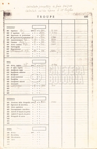 – Un preventivo di spesa per la realizzazione del film (1980);