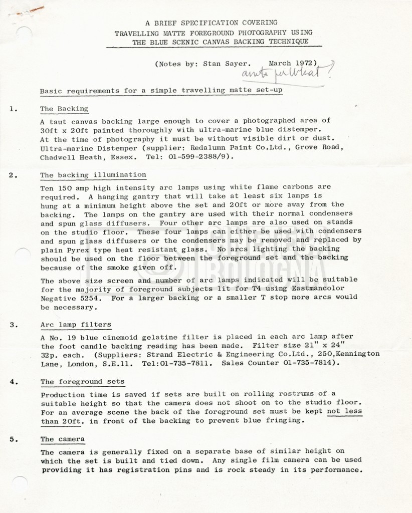 – Due copie di un testo datt. di Stan Sayer sull’utilizzo della tecnica di blue backing (marzo 1972);