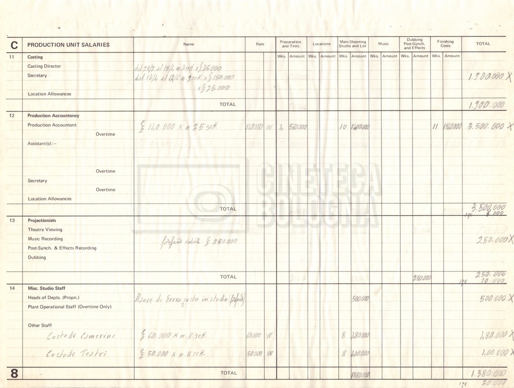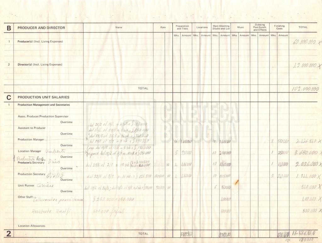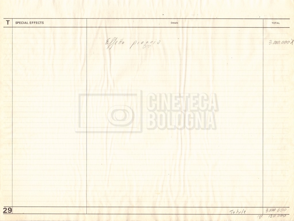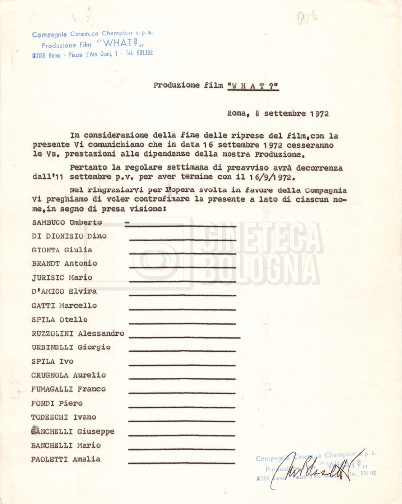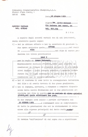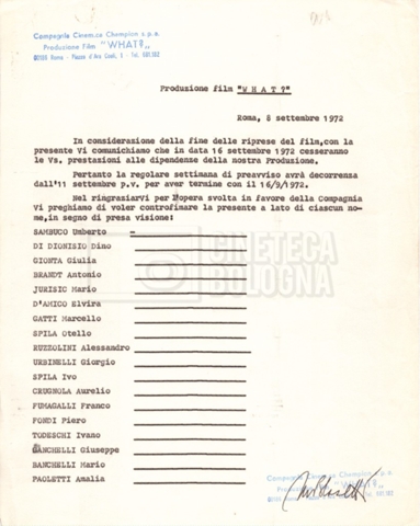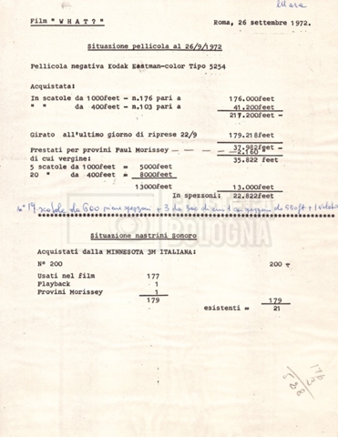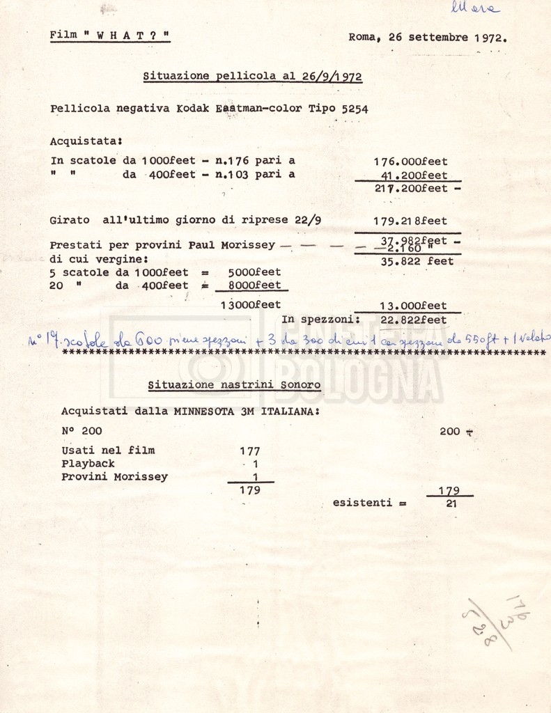– Un doc. datt. intitolato “Situazione pellicola” riguardante il metraggio della pellicola acquistato e utilizzato (26 settembre 1972);
