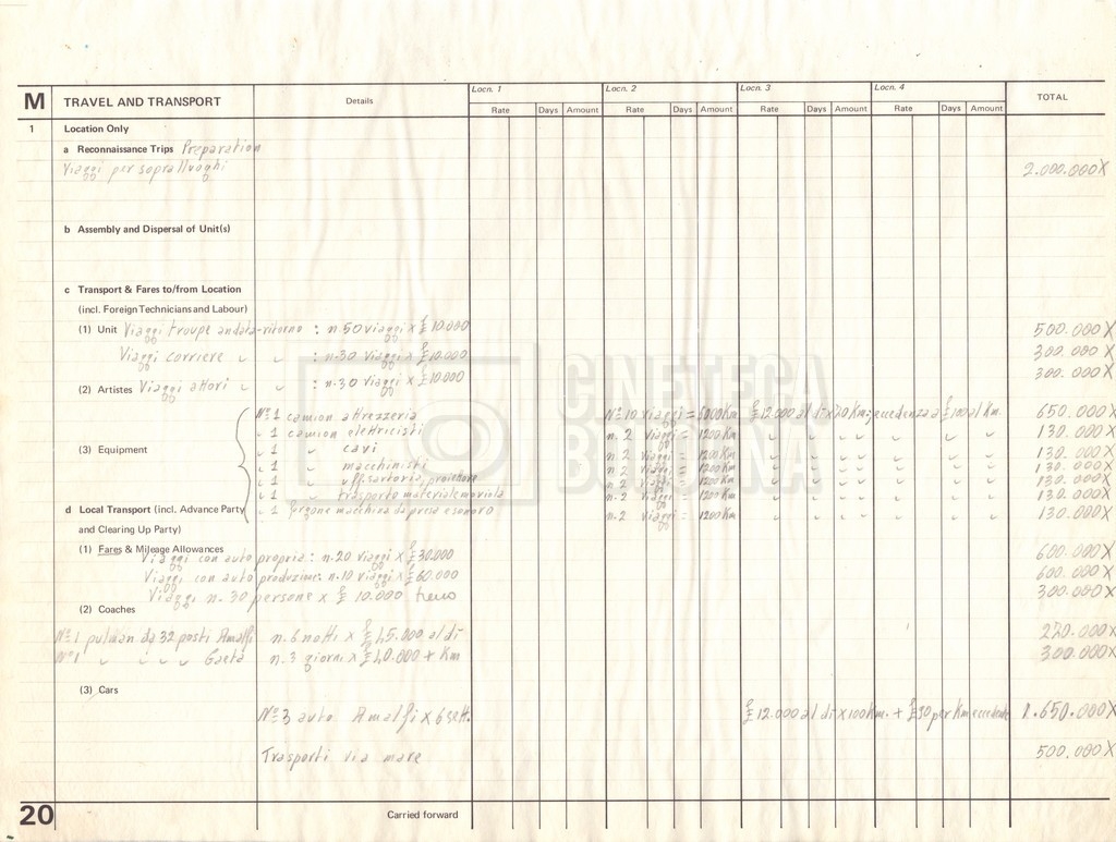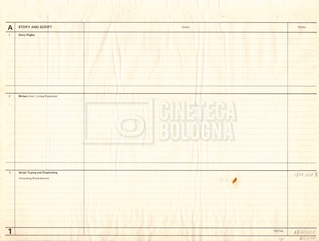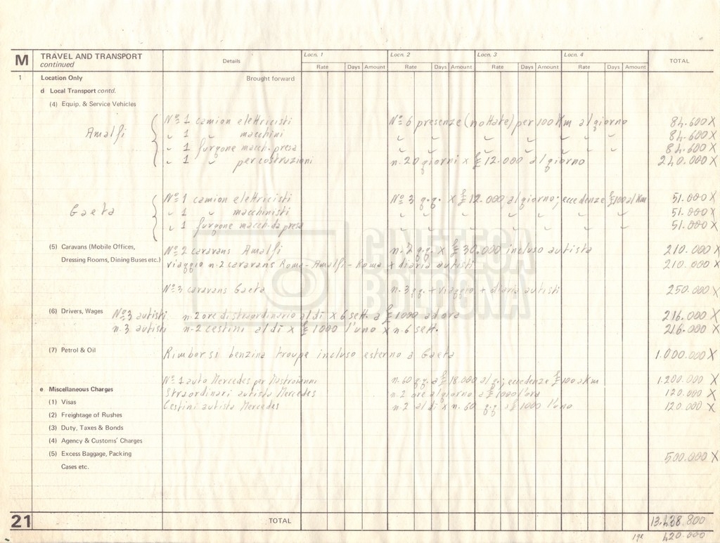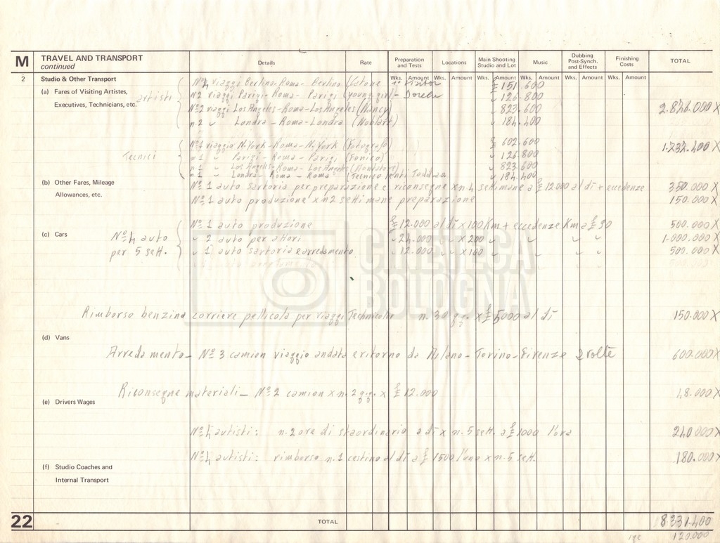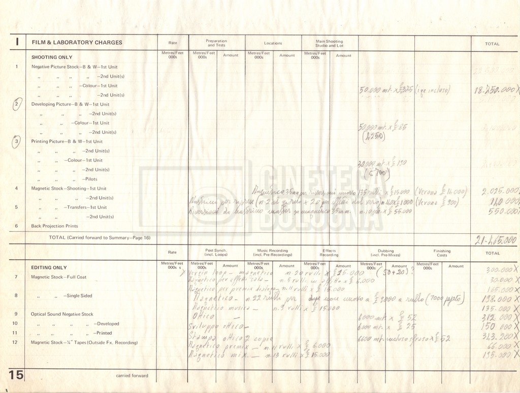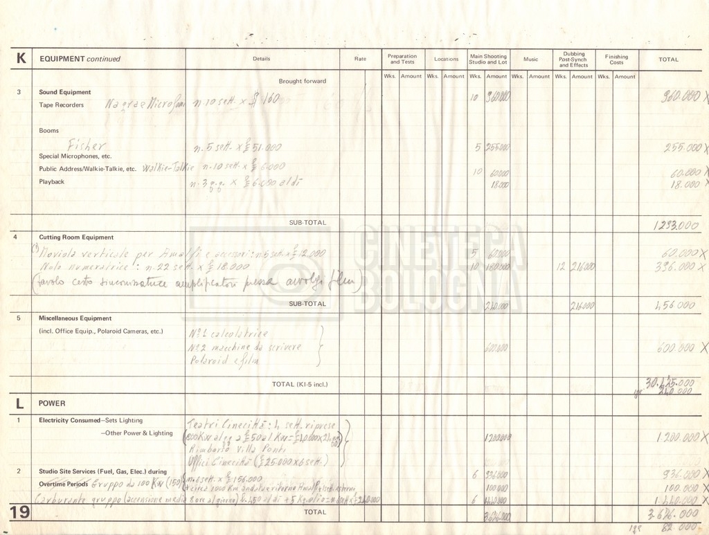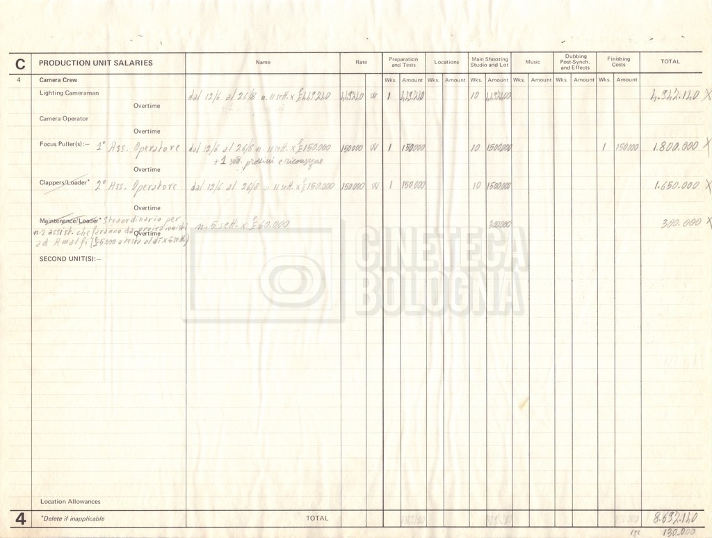 – Un doc. datt. intitolato “Situazione pellicola” riguardante il metraggio della pellicola acquistato e utilizzato (26 settembre 1972);