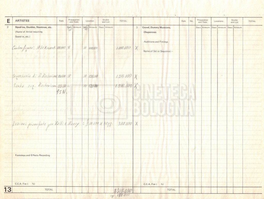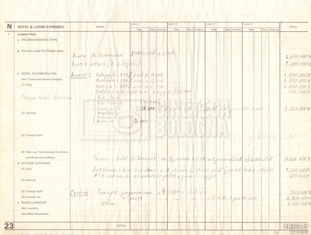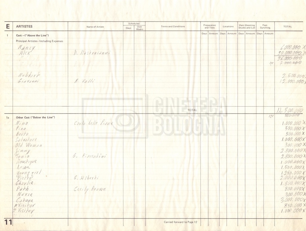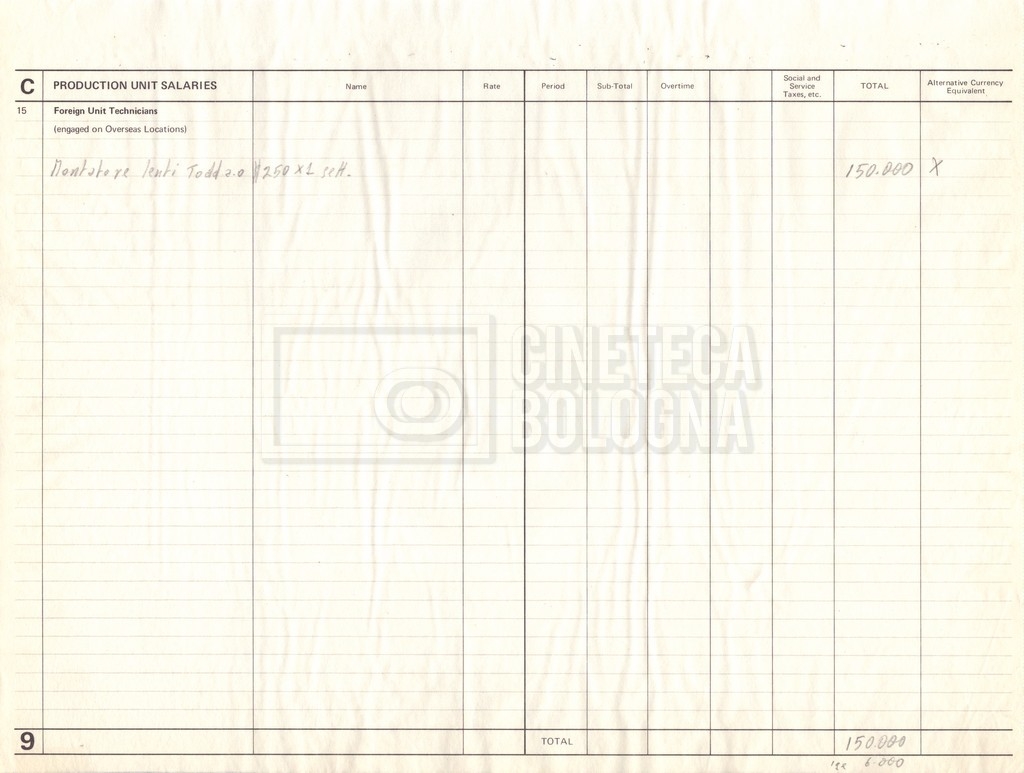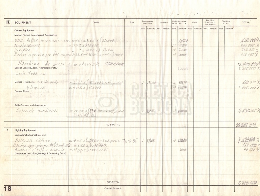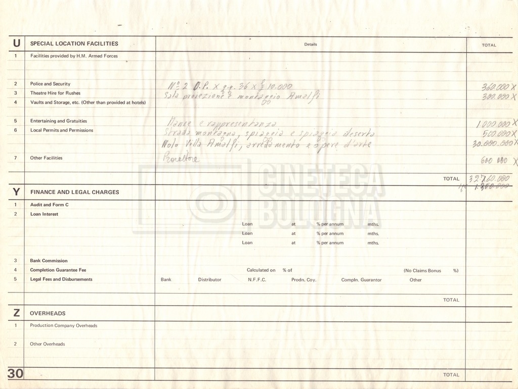 – Un doc. datt. intitolato “Situazione pellicola” riguardante il metraggio della pellicola acquistato e utilizzato (26 settembre 1972);