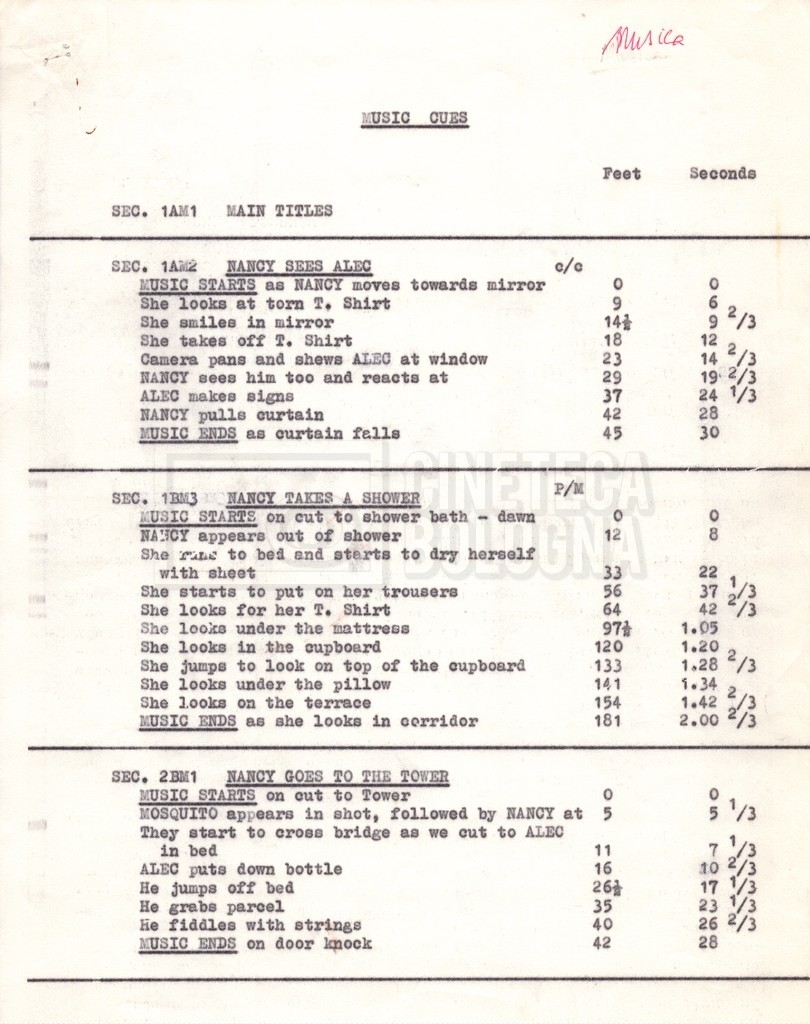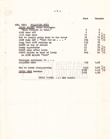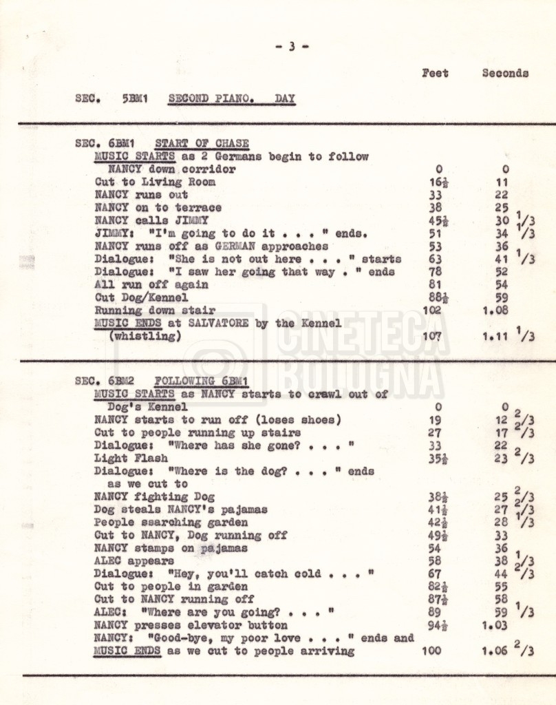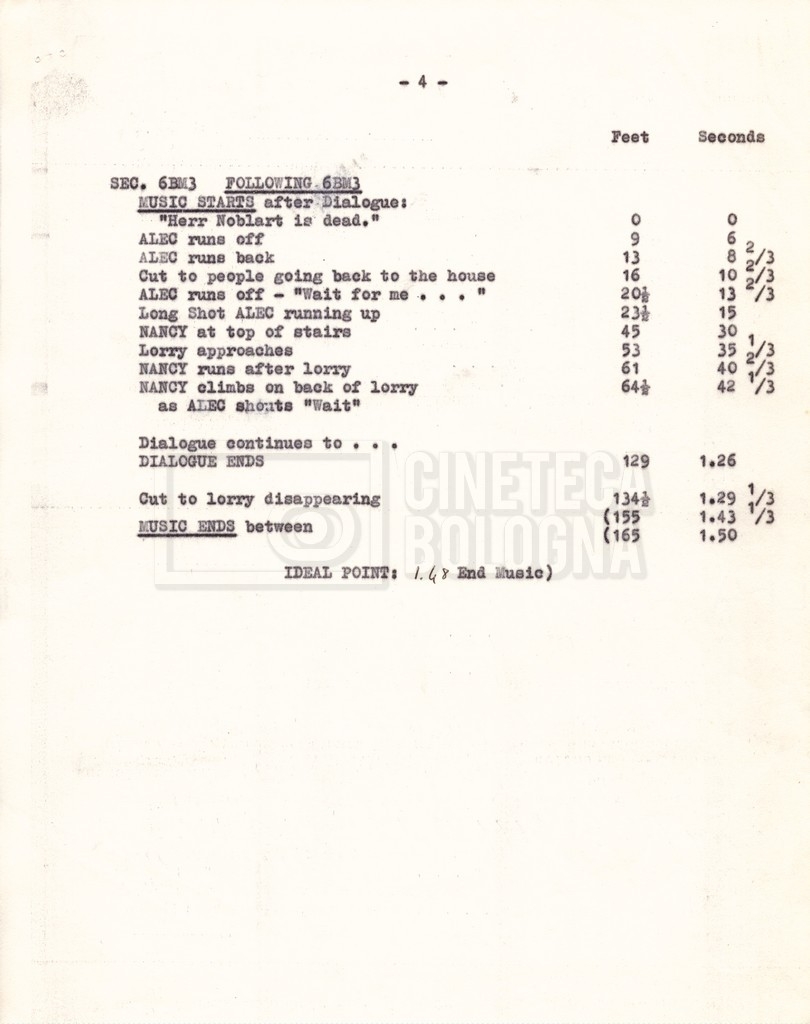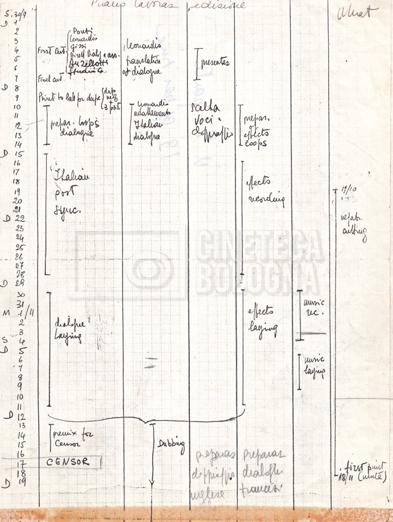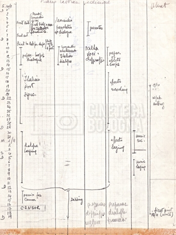 – Un doc. datt. riguardante la colonna sonora e il montaggio audio, con un appunto mss. in coda;
