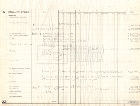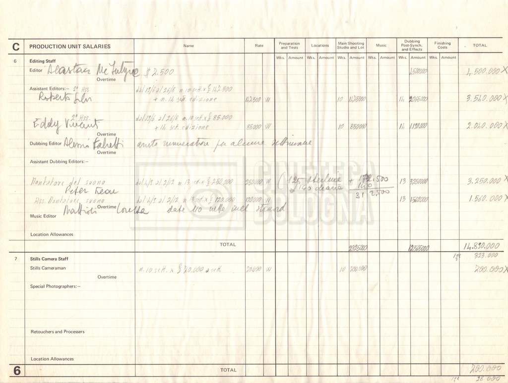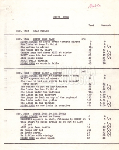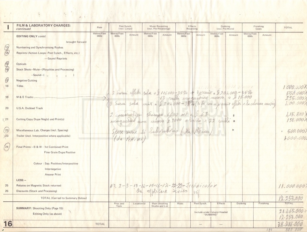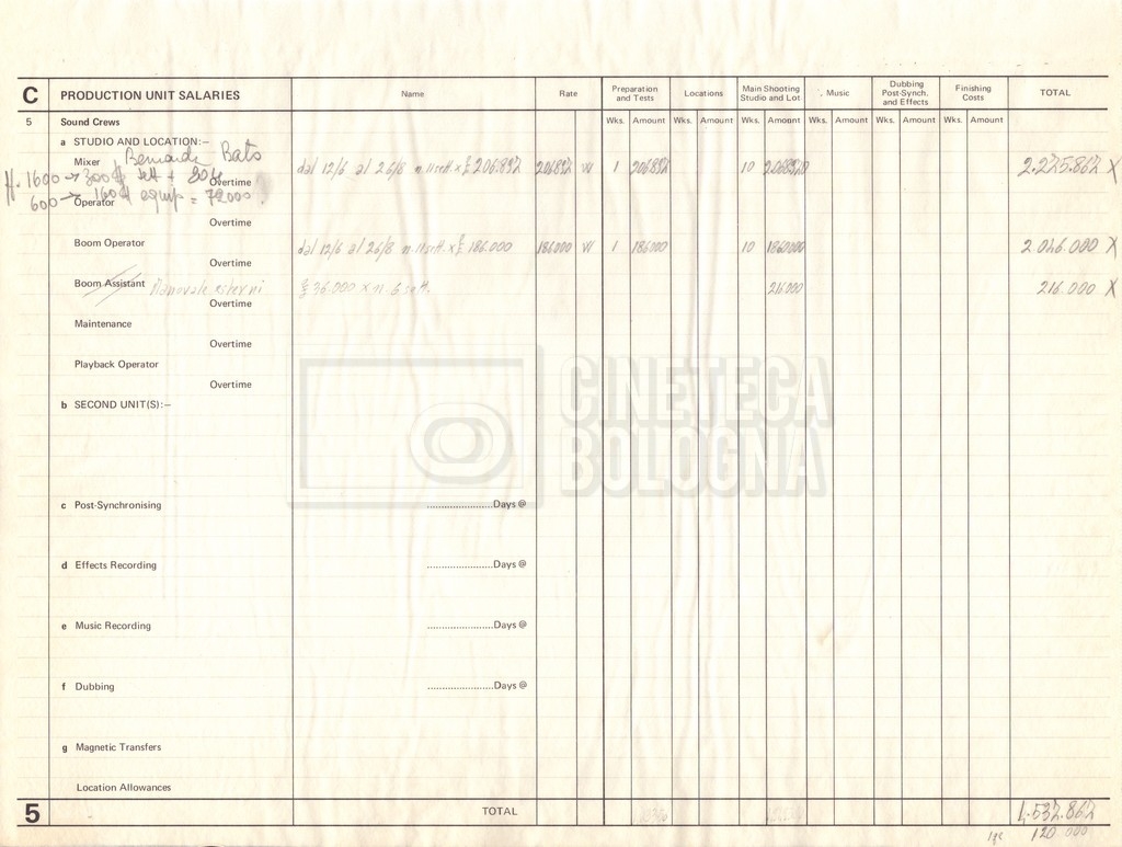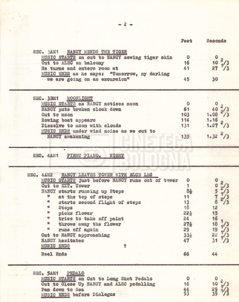 – Un doc. datt. riguardante la colonna sonora e il montaggio audio, con un appunto mss. in coda;