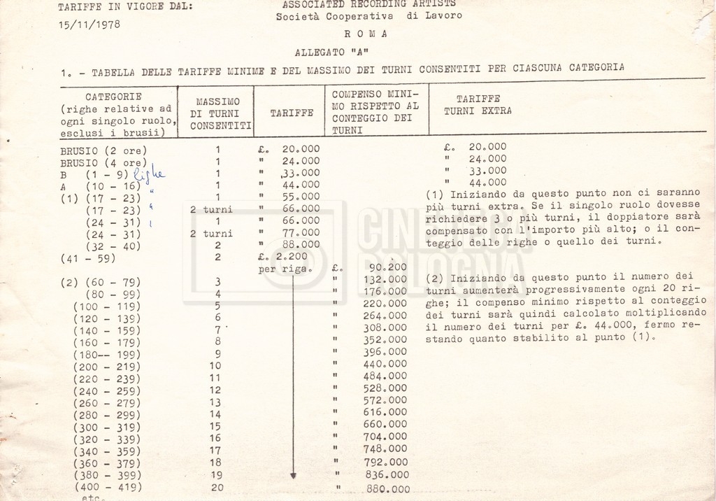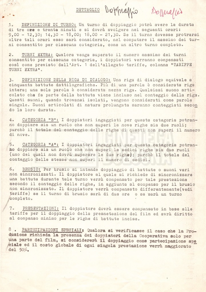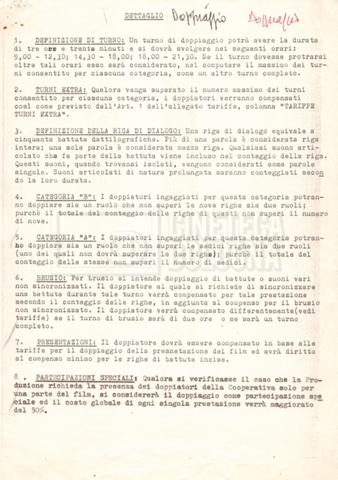 – Un doc. datt. con le con tariffe del doppiaggio e alcuni schemi;