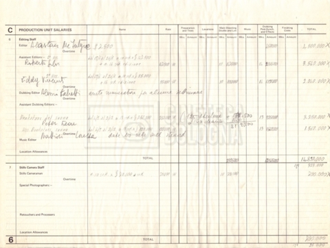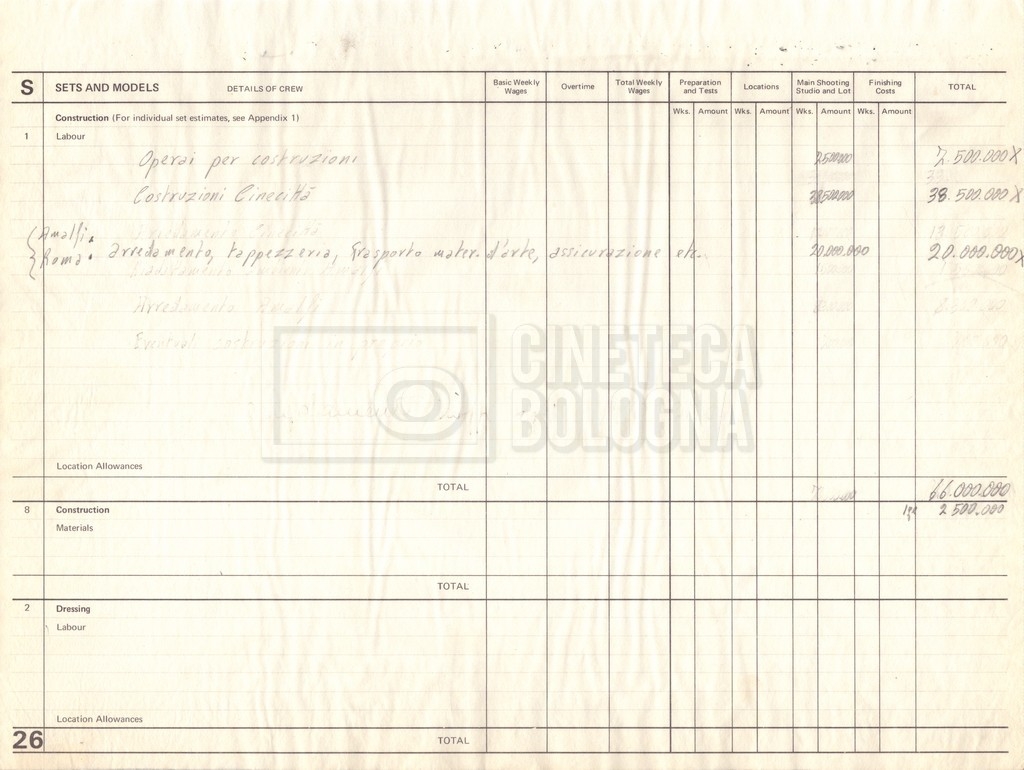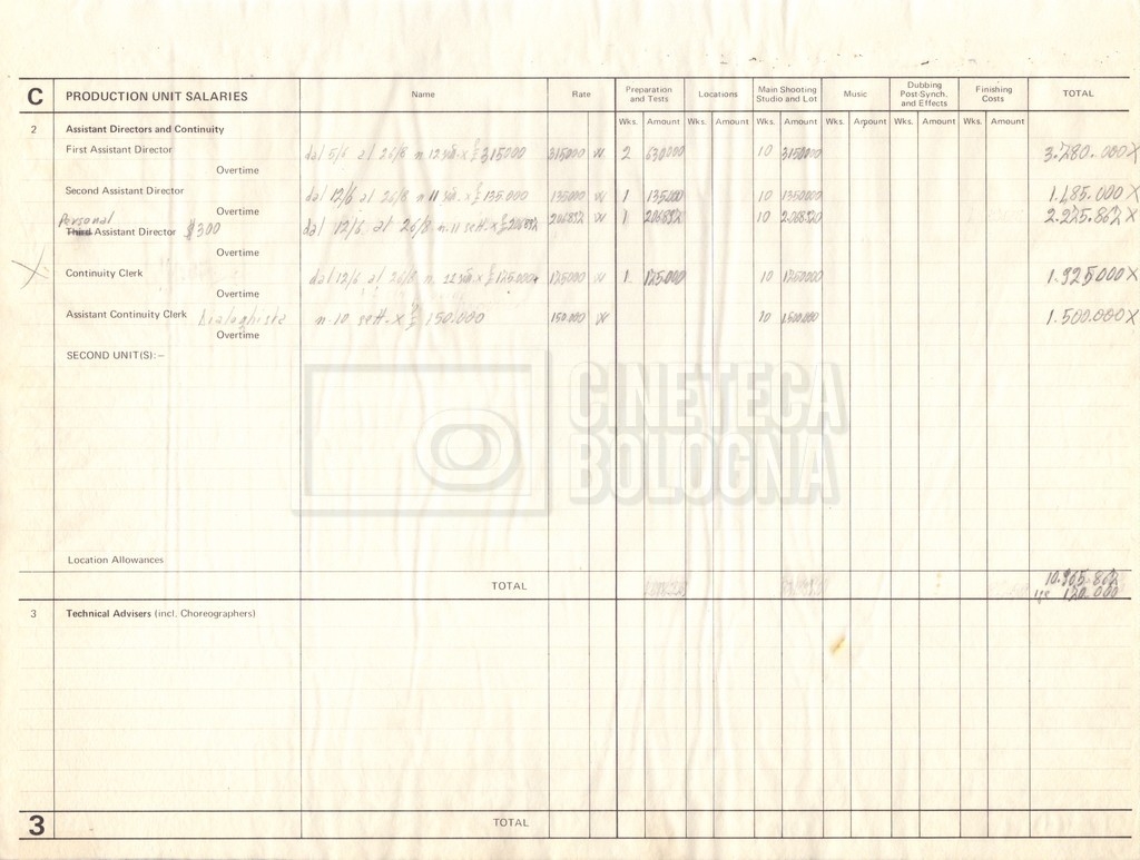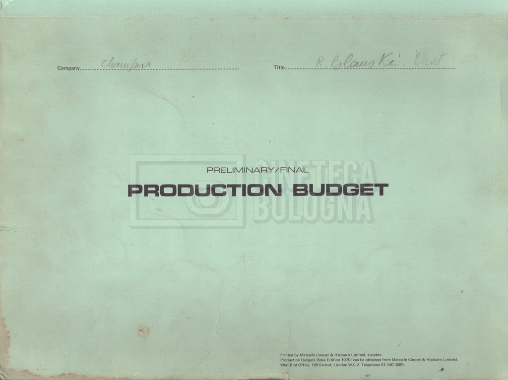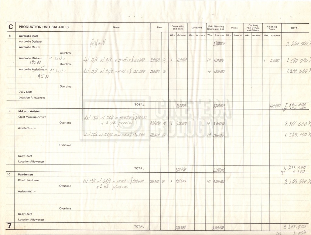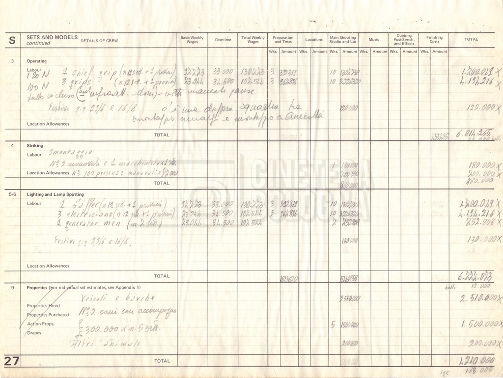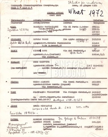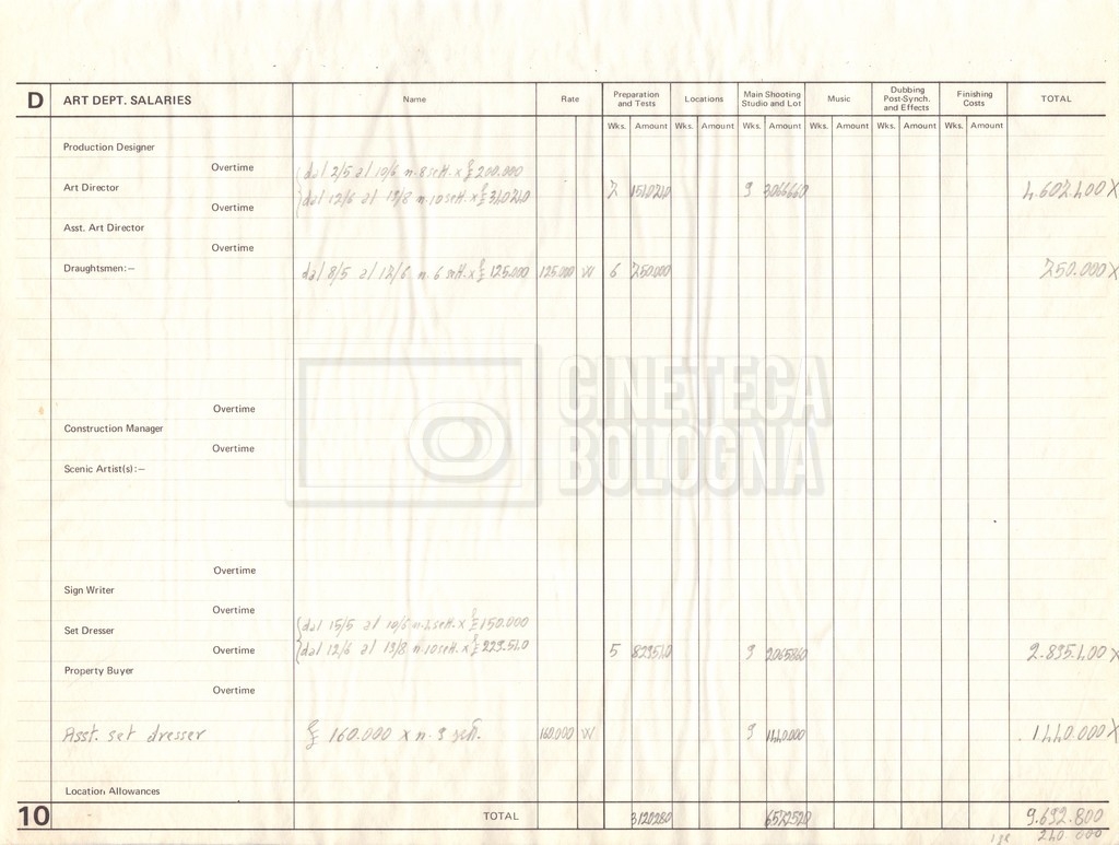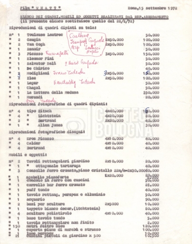– Un elenco dei quadri, mobili e oggetti realizzati per il film (15 settembre 1972);