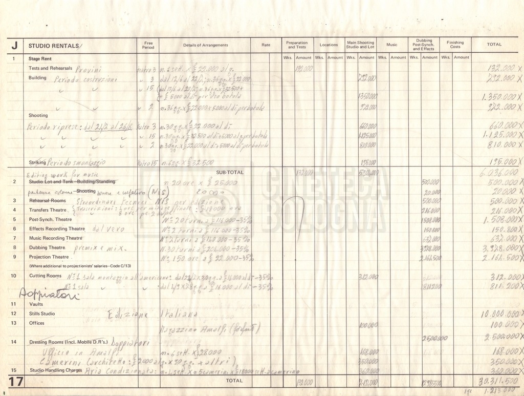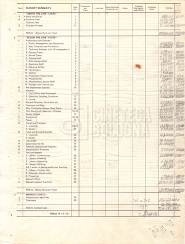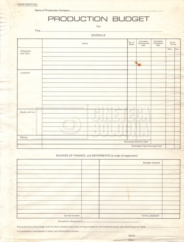 – Un preventivo dettagliato di spesa per la realizzazione del film;