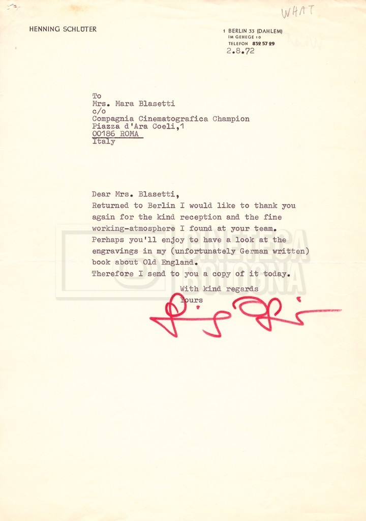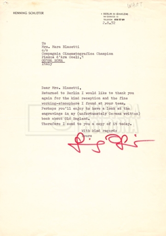 – Una lettera di Henning Schluter (02 agosto 1972);
