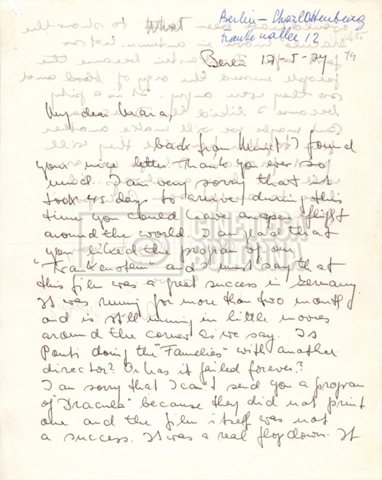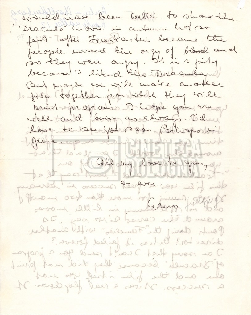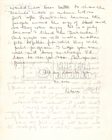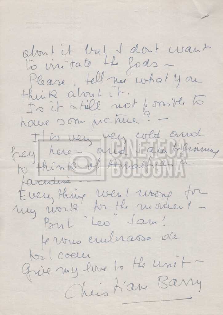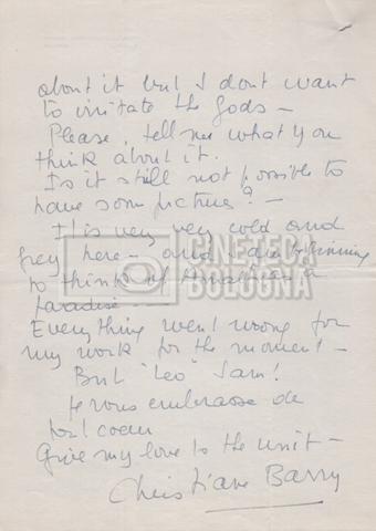 – Una lettera di Elizabeth, compagna dello sceneggiatore Gérard Brach (02 ottobre 1974);