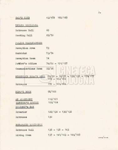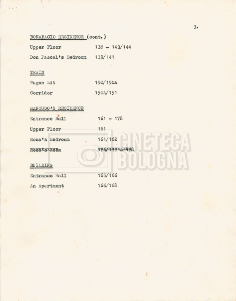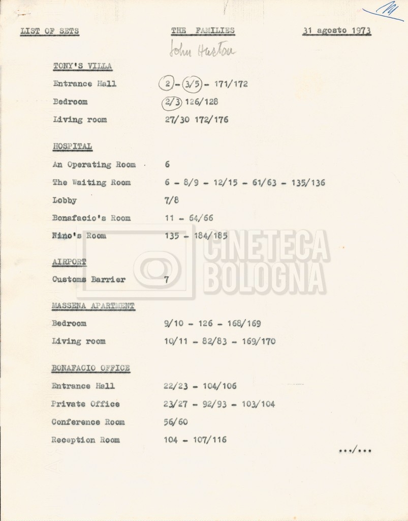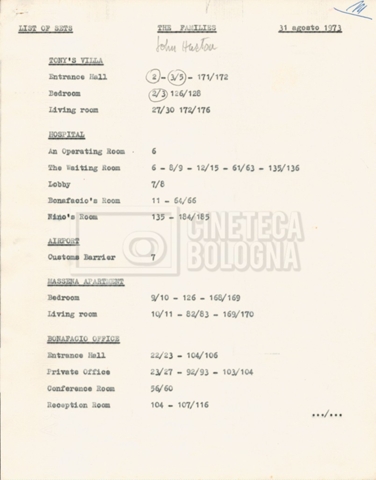 – Una “List of exteriors” datt. (31 agosto 1973);