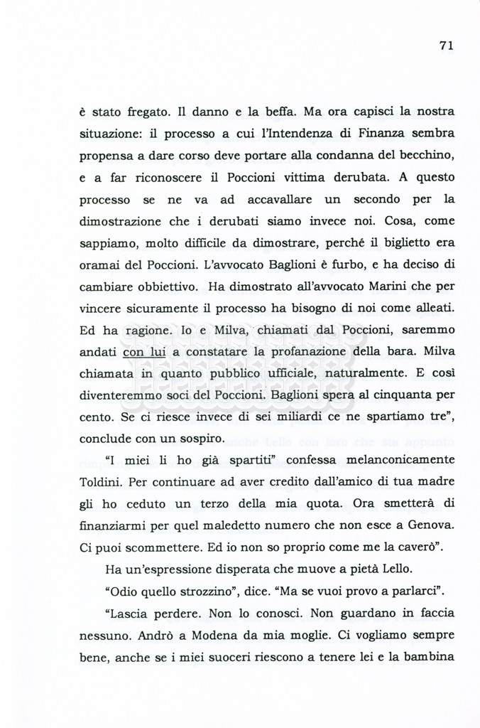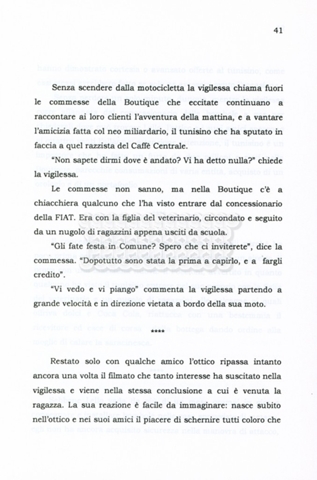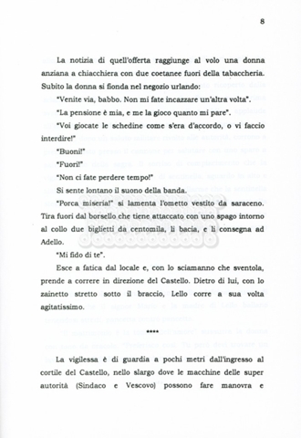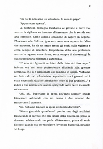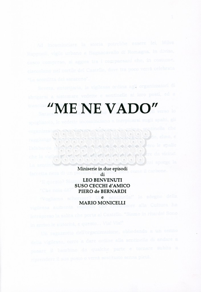 Torna alla banca dati “Me ne vado” Documento storico Archivio Suso Cecchi d’Amico / Film realizzati / Come quando fuori piove Ambiti e contenuto Trattasi della battitura in pulito e completa del volume di cui sopra, con poche correzioni a matita (rif. unità 89 "Come quando fuori piove"). Informazioni archivistiche Cronologia: [2000] Numero di ordinamento definitivo: 90 Numero di ordinamento provvisorio: 1.13 Descrizione fisica: volume pp. 73 Immagini digitalizzate Informazioni sul film titolo originale: Come quando fuori piove regia: Monicelli, Mario anno: 2000 ott. 29 - 2000 ott. 30 paese di produzione: Italia lingua principale: italiana Documenti correlati Vai alla banca dati