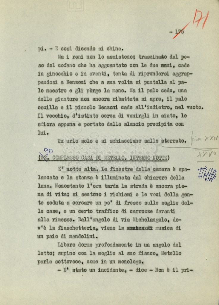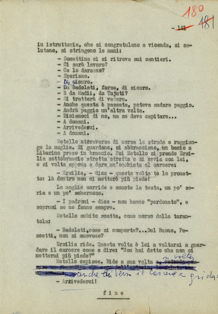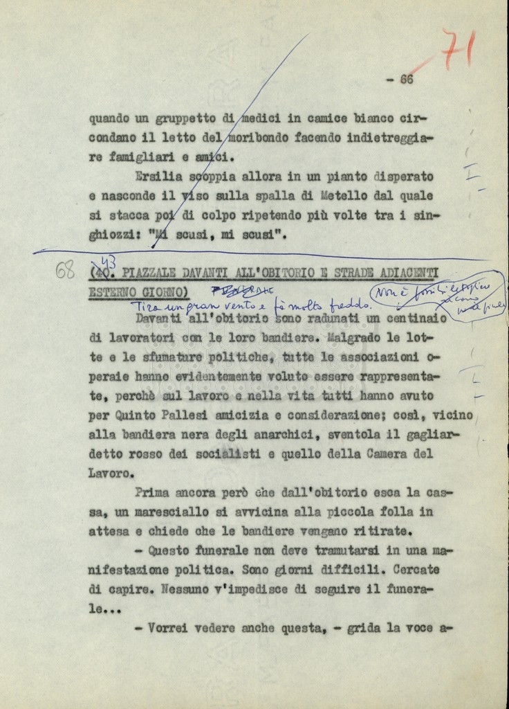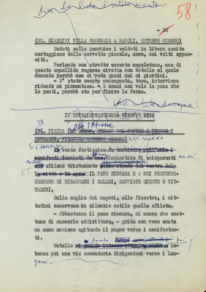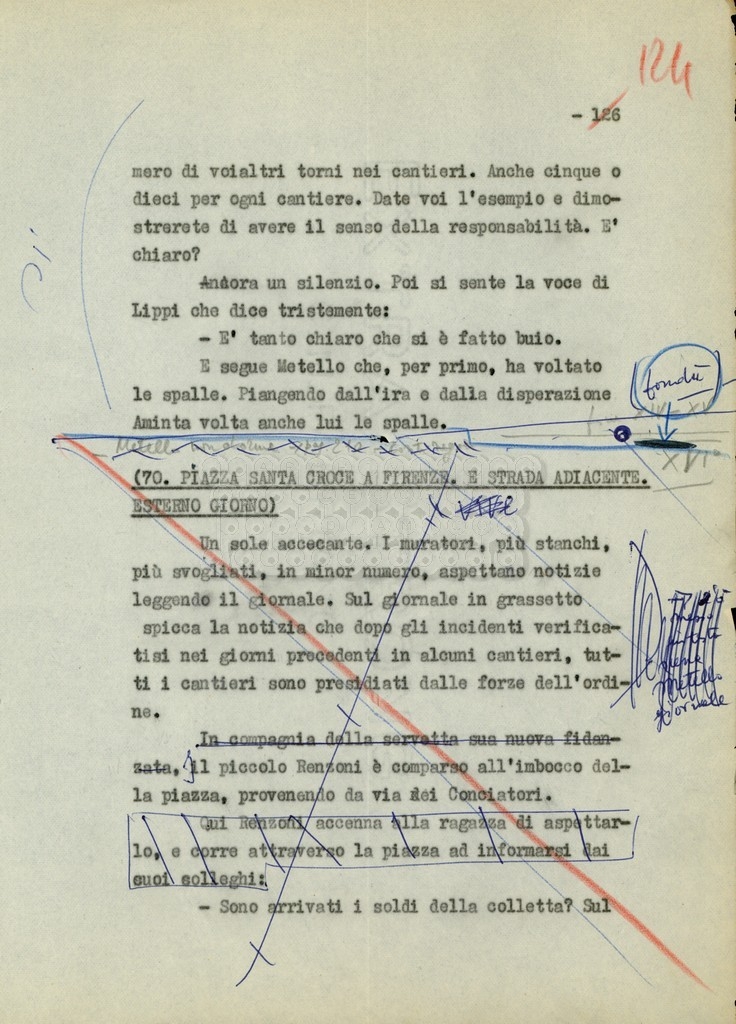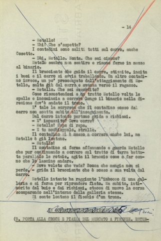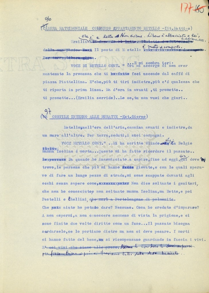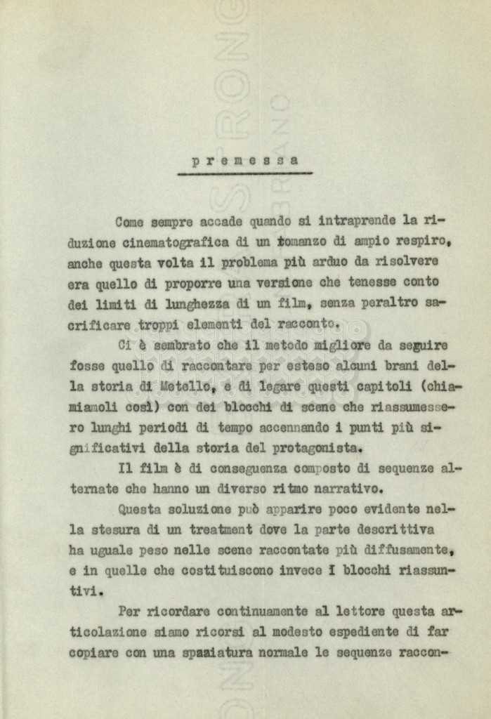 Torna alla banca dati “Metello” Documento storico Archivio Suso Cecchi d’Amico / Film realizzati / Metello Ambiti e contenuto Trattasi di una sceneggiatura non firmata. Il copione è ricco di appunti mss. di Vasco Pratolini. Sul frontespizio compare la dicitura “edizione Suso”. Informazioni archivistiche Cronologia: 28 ottobre 1961 Numero di ordinamento definitivo: 18 Numero di ordinamento provvisorio: 1.52 Descrizione fisica: volume pp. 181 Immagini digitalizzate Informazioni sul film titolo originale: Metello regia: Bolognini, Mauro anno: 1970 paese di produzione: Italia lingua principale: italiana Documenti correlati Vai alla banca dati DOCUMENTO STORICO “Metello”