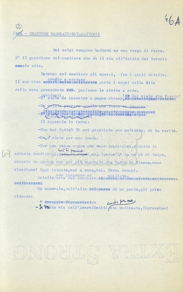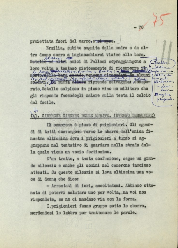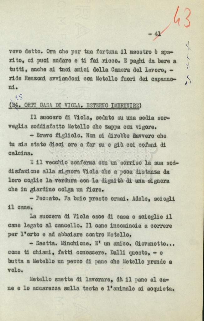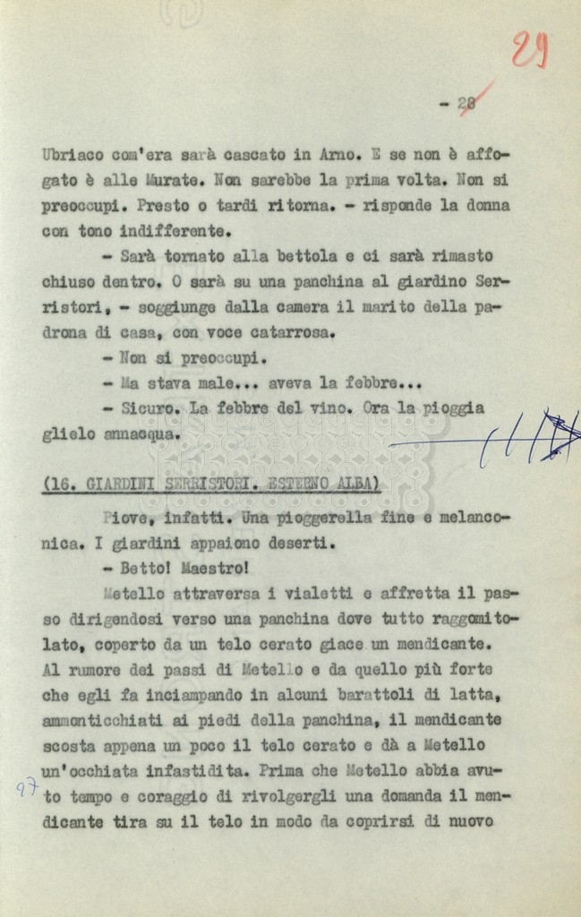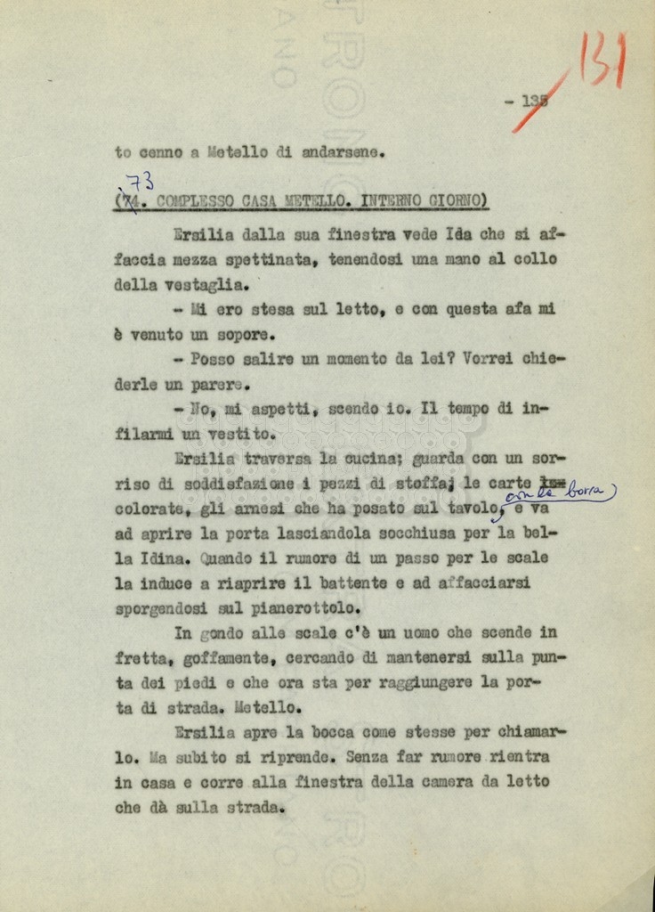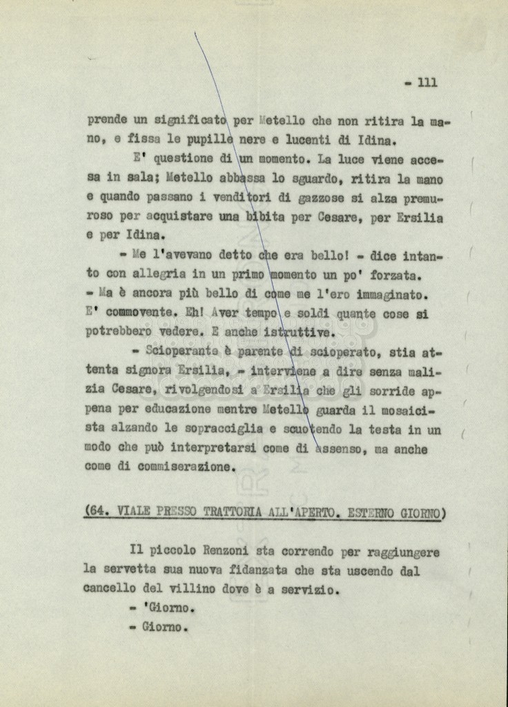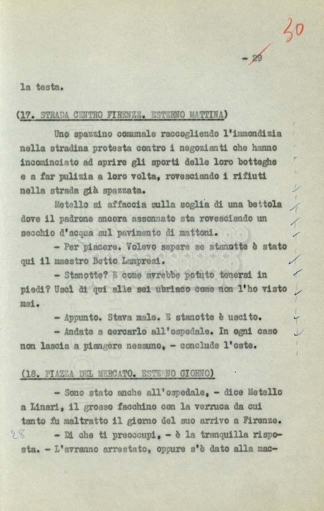 Torna alla banca dati “Metello” Documento storico Archivio Suso Cecchi d’Amico / Film realizzati / Metello Ambiti e contenuto Trattasi di una sceneggiatura non firmata. Il copione è ricco di appunti mss. di Vasco Pratolini. Sul frontespizio compare la dicitura “edizione Suso”. Informazioni archivistiche Cronologia: 28 ottobre 1961 Numero di ordinamento definitivo: 18 Numero di ordinamento provvisorio: 1.52 Descrizione fisica: volume pp. 181 Immagini digitalizzate Informazioni sul film titolo originale: Metello regia: Bolognini, Mauro anno: 1970 paese di produzione: Italia lingua principale: italiana Documenti correlati Vai alla banca dati DOCUMENTO STORICO “Metello”