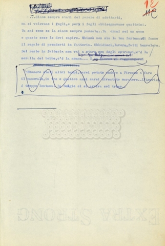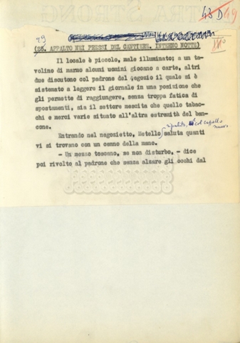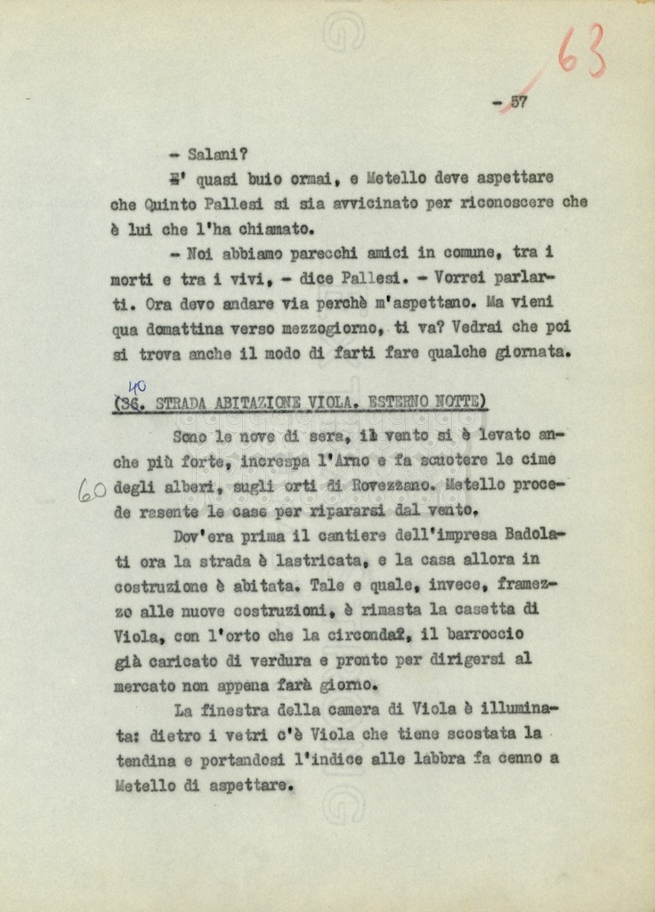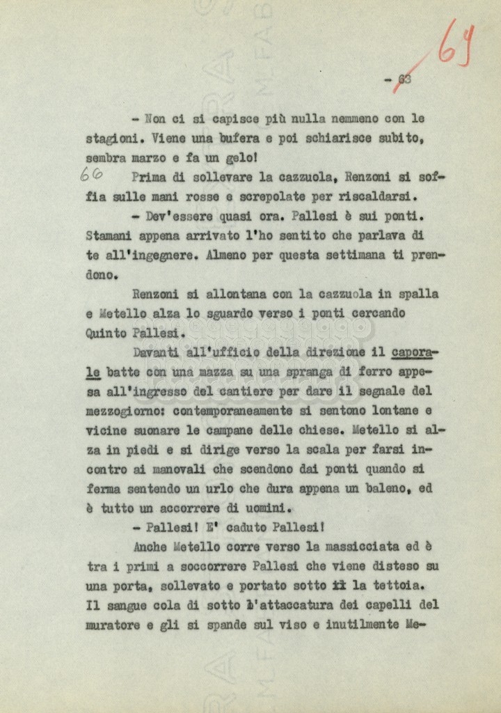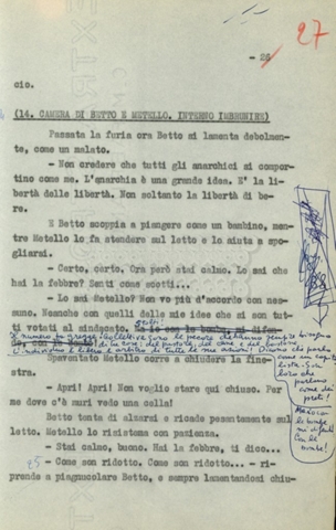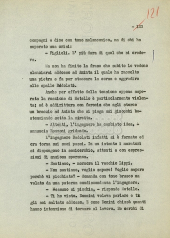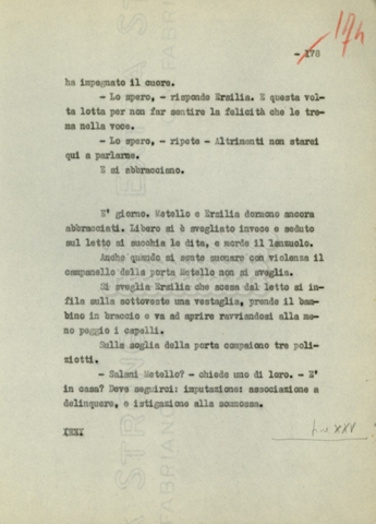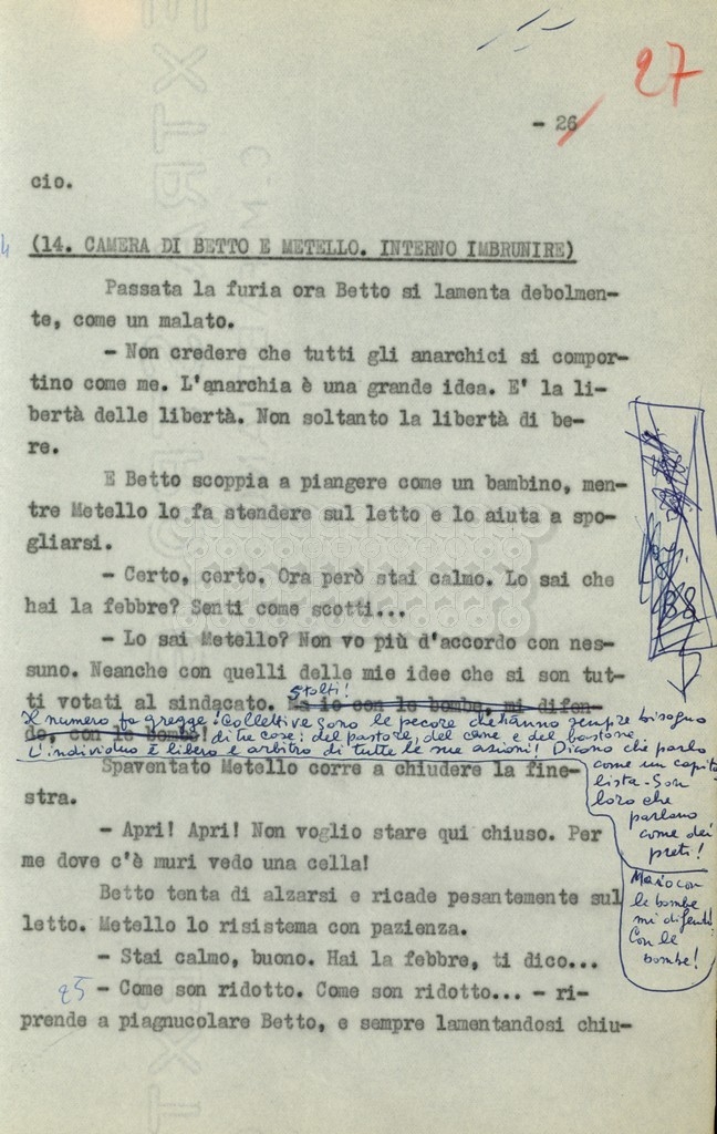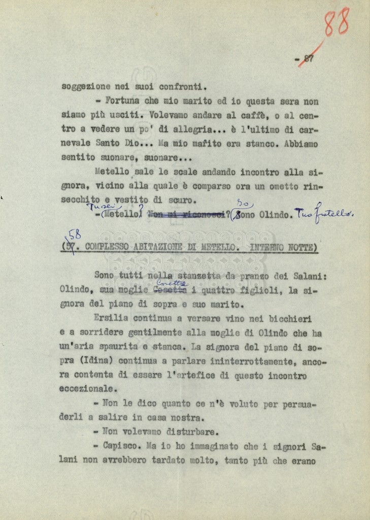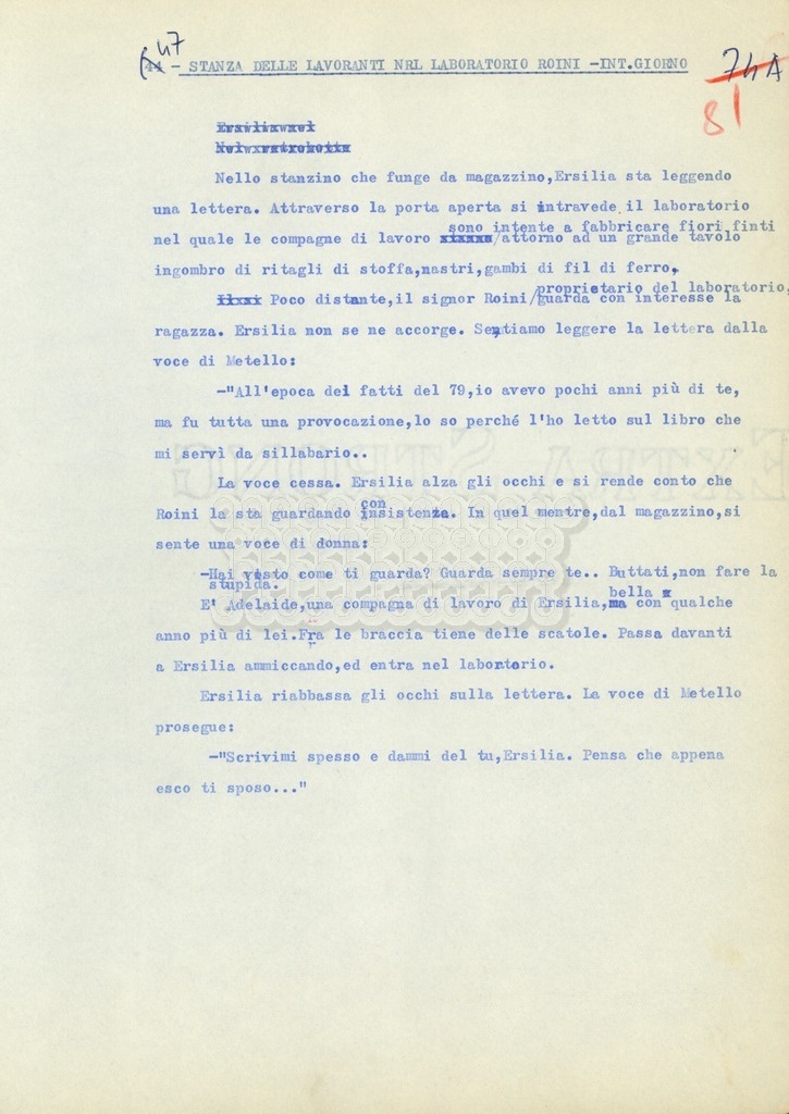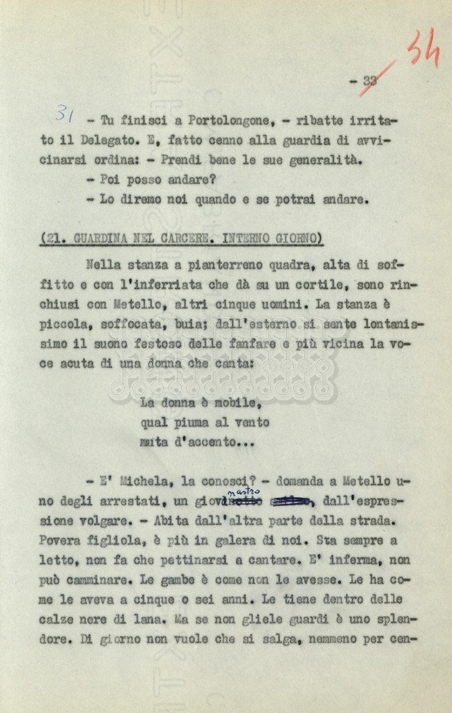 Torna alla banca dati “Metello” Documento storico Archivio Suso Cecchi d’Amico / Film realizzati / Metello Ambiti e contenuto Trattasi di una sceneggiatura non firmata. Il copione è ricco di appunti mss. di Vasco Pratolini. Sul frontespizio compare la dicitura “edizione Suso”. Informazioni archivistiche Cronologia: 28 ottobre 1961 Numero di ordinamento definitivo: 18 Numero di ordinamento provvisorio: 1.52 Descrizione fisica: volume pp. 181 Immagini digitalizzate Informazioni sul film titolo originale: Metello regia: Bolognini, Mauro anno: 1970 paese di produzione: Italia lingua principale: italiana Documenti correlati Vai alla banca dati DOCUMENTO STORICO “Metello”