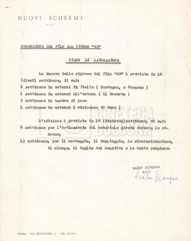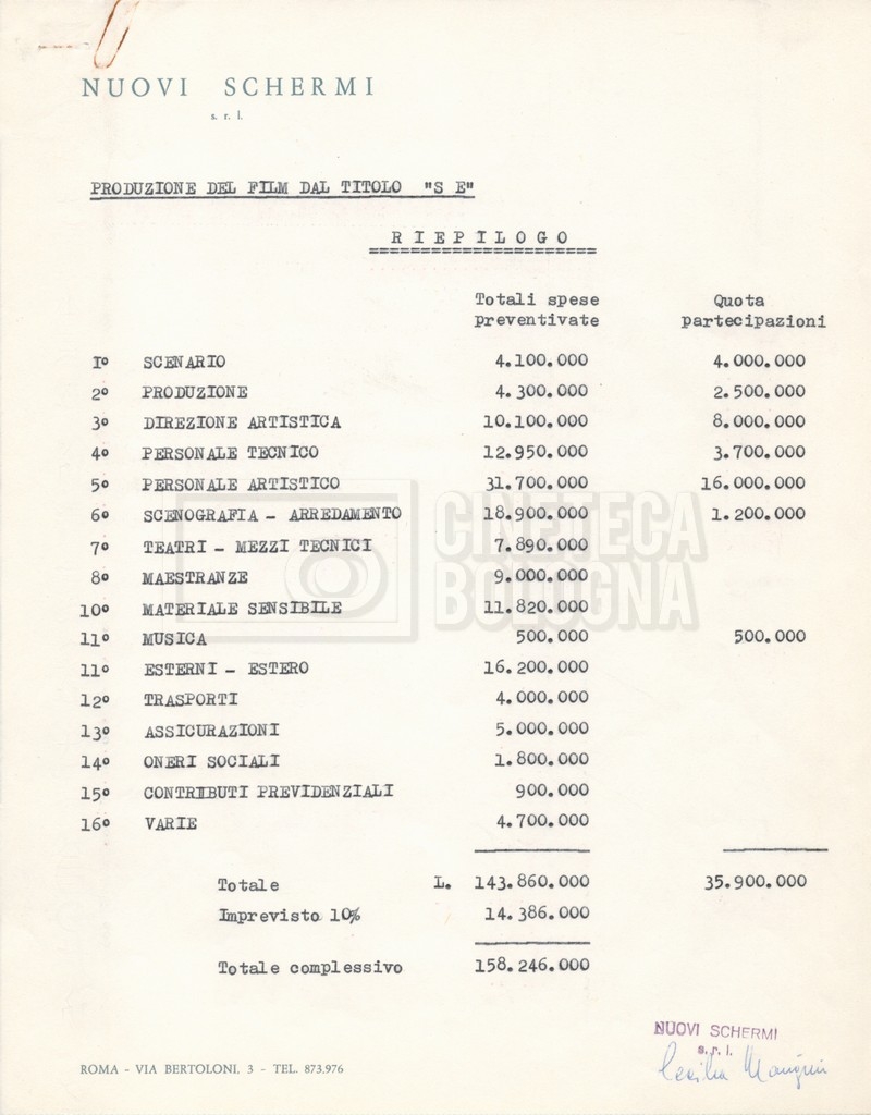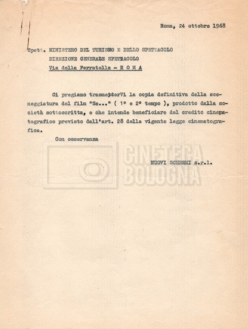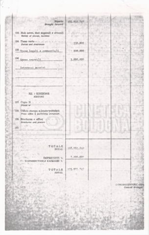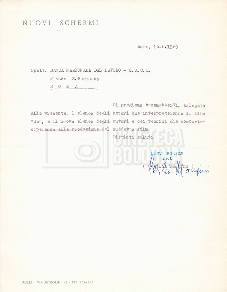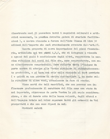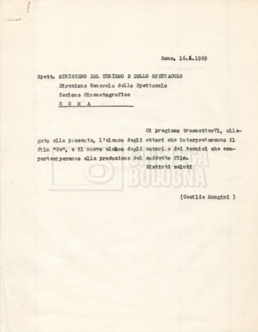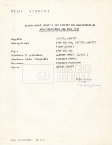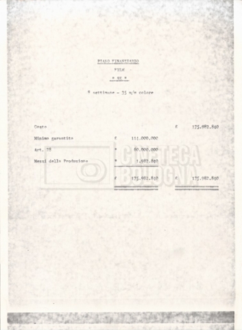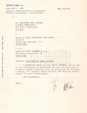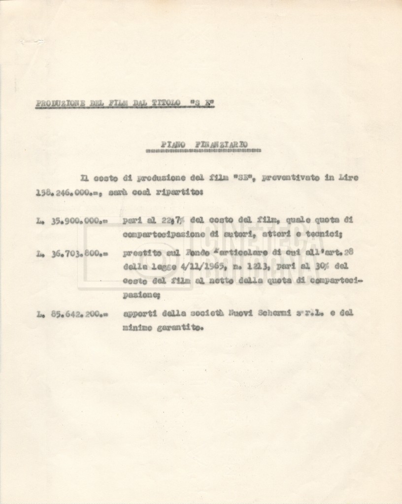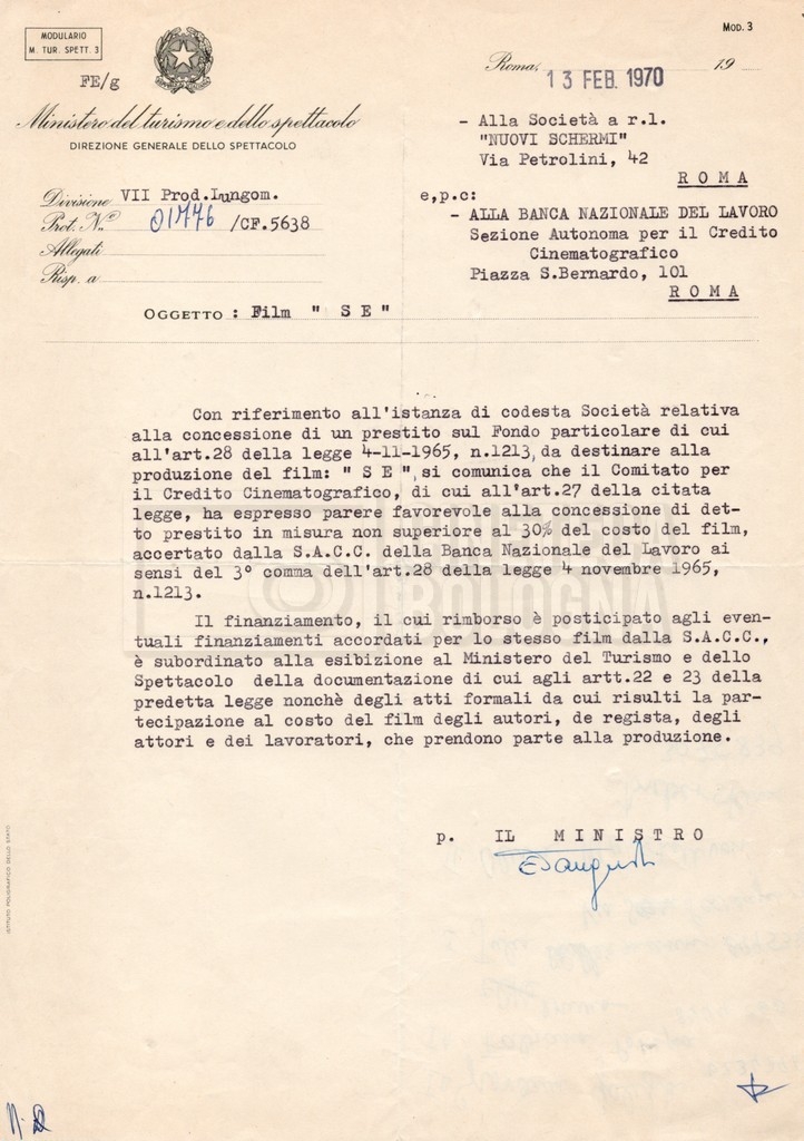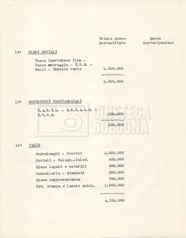 – ‘Corrispondenza’: contiene lettere di invio di documenti, una richiesta finanziamento e uno schema di contratto di cessione al ‘Ministero dello Spettacolo’ e alla ‘Banca Nazionale del Lavoro’;
