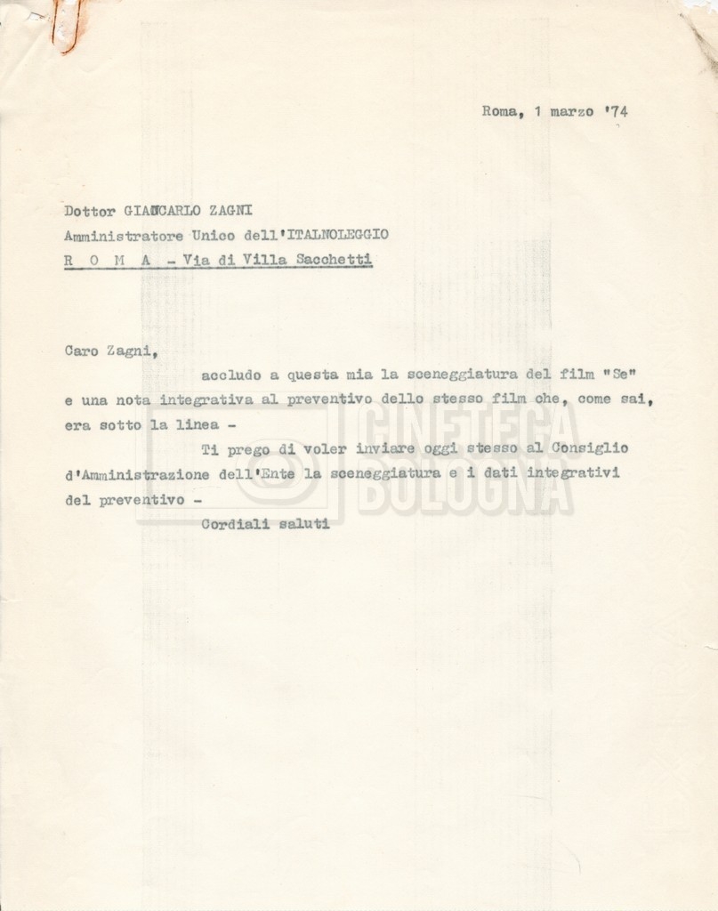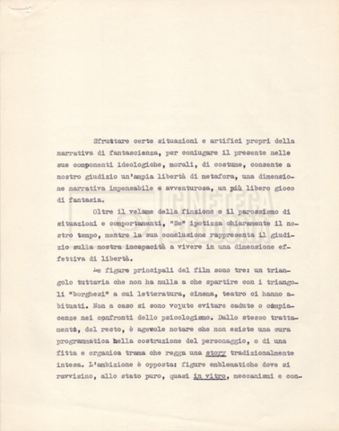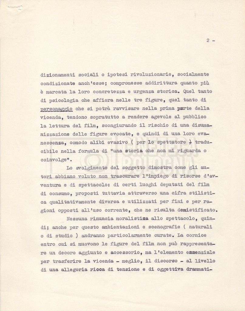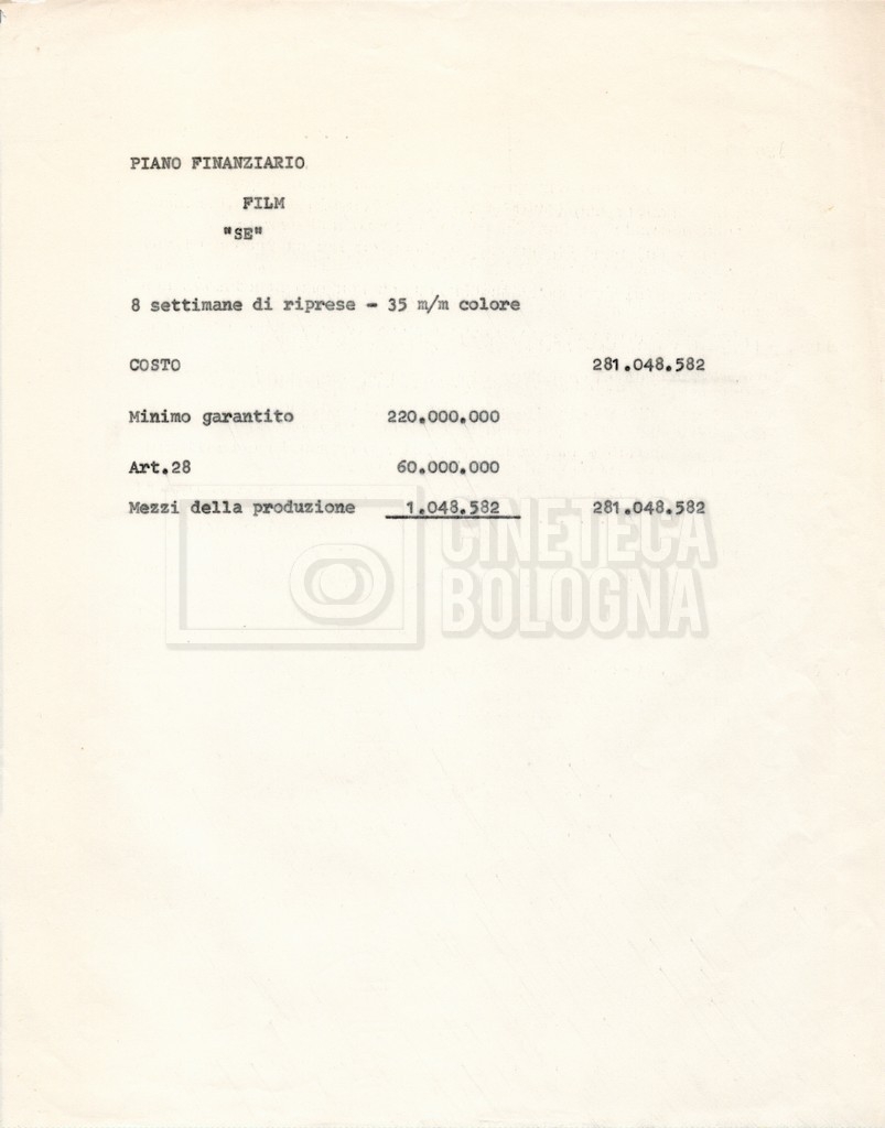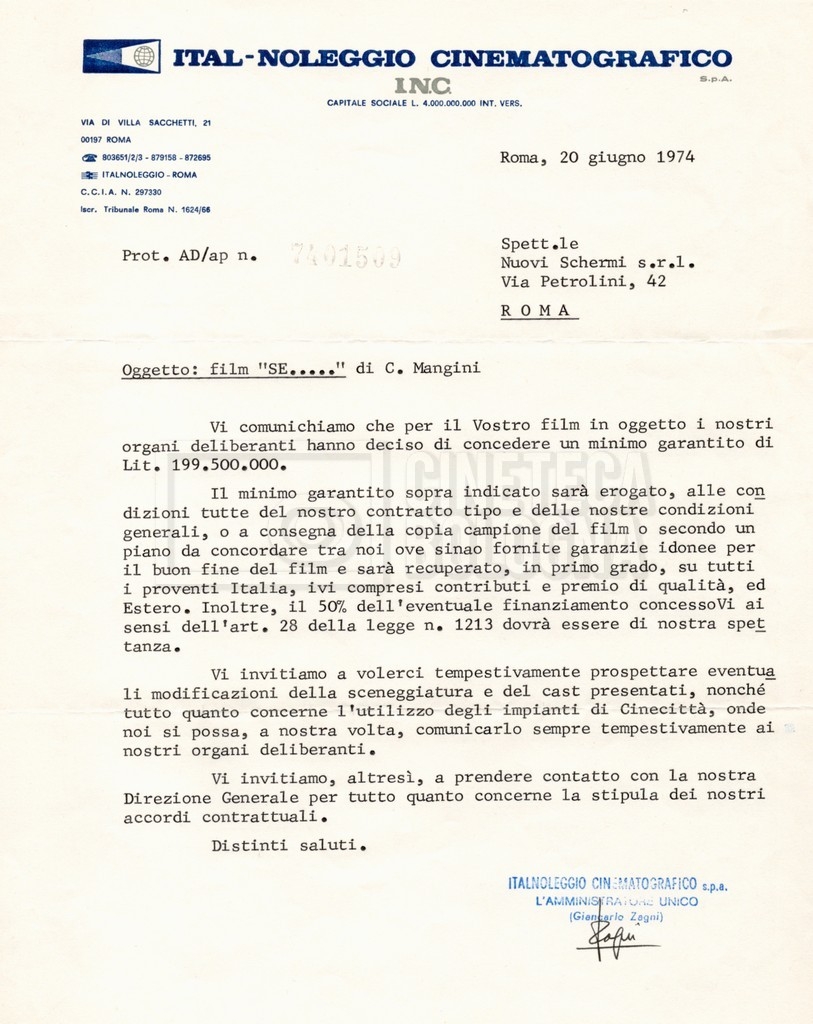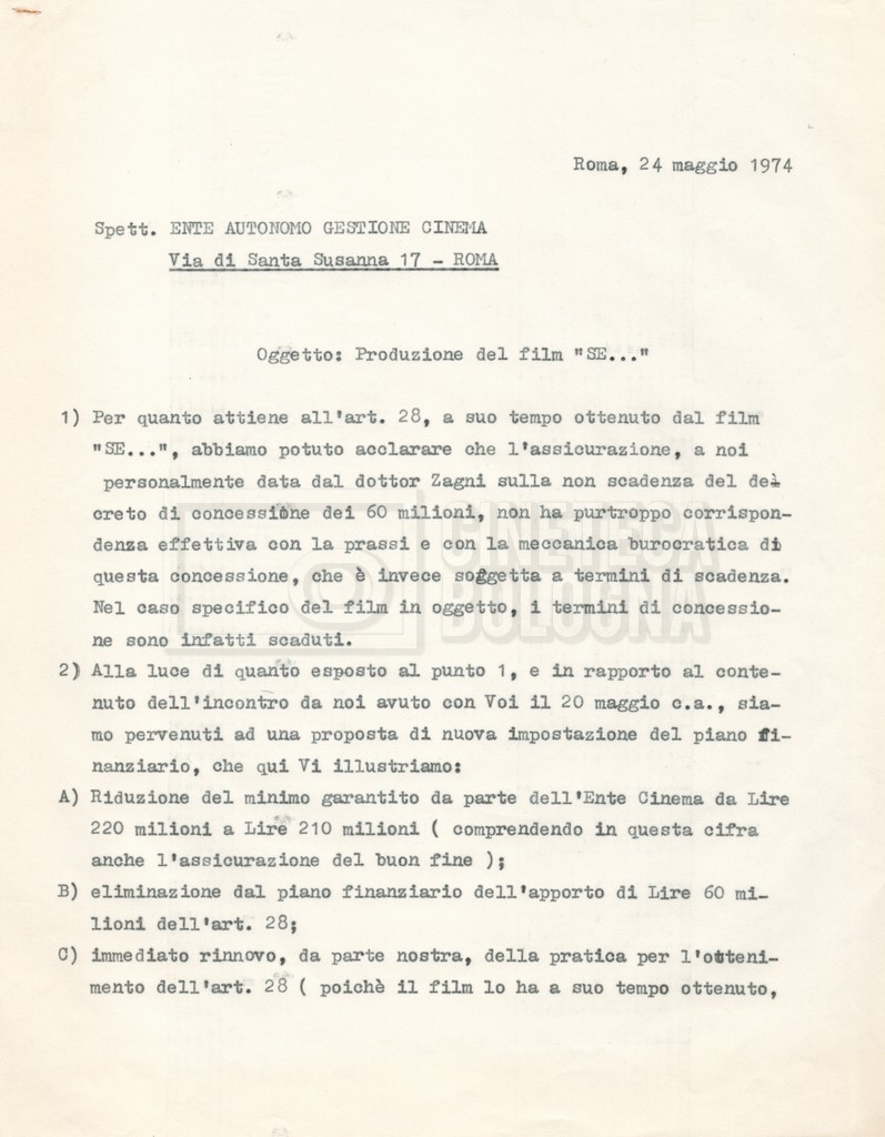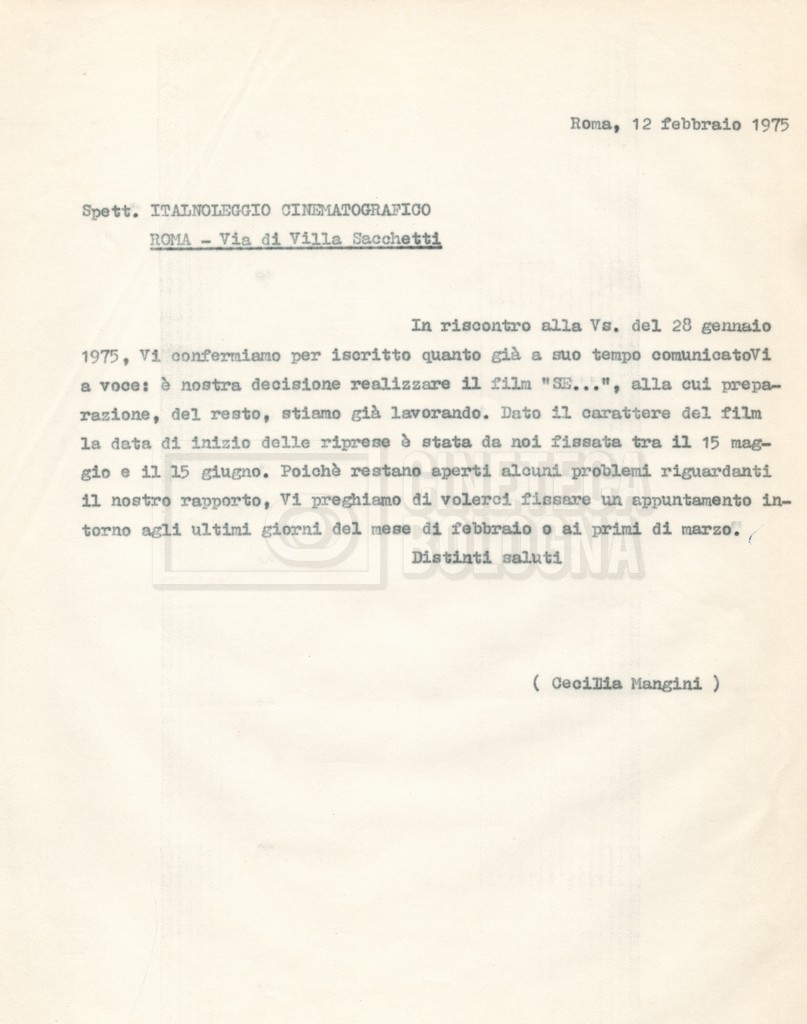 – ‘Corrispondenza’: contiene lettere di invio di documenti, una richiesta finanziamento e uno schema di contratto di cessione al ‘Ministero dello Spettacolo’ e alla ‘Banca Nazionale del Lavoro’;